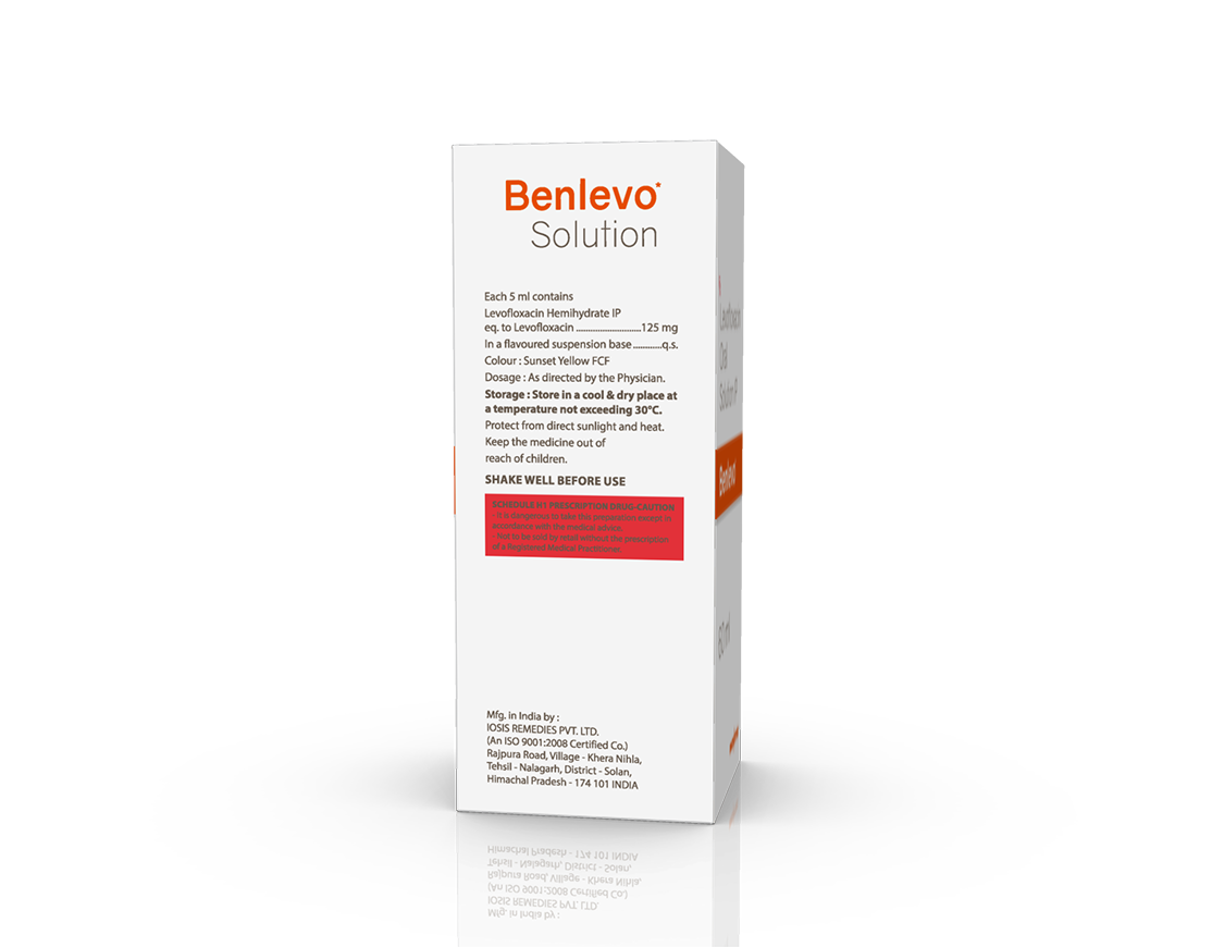 Benlevo Suspension Levofloxacin 125 mg / 5 ml Suspension Pack : 60 ml Bottle with Measuring Cap in Mono Carton Enquiry Categories: ENT Care, General Practitioner, Paediatric Care, Pharma, Specialities Tag: Pharma Description Additional information Description Benlevo Suspension Composition : Levofloxacin 125 mg / 5 ml Suspension Therapeutic Segment : Antibiotic | Anti-Infective Packing : 60 ml Bottle with Measuring Cap in Mono Carton Indications : Typhoid Fever Bronchitis Complicated UTI’s Nosocomial Pneumonia Dosage : As directed by Physician Product Information Product DescriptionBenlevo Suspension is an antibiotic, used in the treatment of bacterial infections. It is also used in treating infections of the urinary tract, nose, throat, skin and lungs (pneumonia). It cures the infection by stopping the further growth of the causative microorganisms. Benefits Community-acquired Pneumonia Skin & Soft Tissue Infections MDR-TB Direction For Use Take this medicine in the dose and duration as advised by your doctor. Check the label for directions before use. Measure it with a measuring cup and take it by mouth. Shake well before use. Mechanism of ActionBenlevo Suspension is an antibiotic. It works by stopping the action of a bacterial enzyme called DNA-gyrase. This prevents the bacterial cells from dividing and repairing, thereby killing them. Also AvailableBenlevo 250 mg Tablets | Benlevo 500 mg Tablets | Benlevo 750 mg Tablets | Benlevo Infusion | Benlevo-OZ Tablets Additional information Dosage Form Suspension Therapeutic Segment Anti-Infective, Antibiotic ENQUIRY! Related Products Clinbid 300 mg Injection Clindamycin 300 mg / 2 ml Pack : 2 ml Clear Ring Ampoule & Insert in Tray with Cover in Mono Carton ENQUIRY! Enquiry Oflotag 200 mg Tablets Ofloxacin 200 mg Pack : 1 x 10 Tablets Alu-Alu Pack ENQUIRY! Enquiry Cephazone 250 mg DT Cephalexin 250 mg Dispersible Tablets Pack : 1 x 10 Tablets Alu-Alu Pack ENQUIRY! Enquiry Megathral 200 mg Suspension 30 ml Azithromycin 200 mg / 5 ml Pack : 30 ml Bottle with Measuring Cap in Mono Carton ENQUIRY! Enquiry Related products Aclopride-PT Tablets Aceclofenac 100 mg, Paracetamol 325 mg & Thiocolchicoside 4 mg Pack : 1 x 10 Tablets Alu-Alu Pack ENQUIRY! Enquiry Aclopride-PT8 Tablets Aceclofenac 100 mg, Paracetamol 325 mg & Thiocolchicoside 8 mg Pack : 1 x 10 Tablets Alu-Alu Pack ENQUIRY! Enquiry Algra Plus Tablets Sildenafil Citrate 50 mg & Dapoxetine 30 mg Pack : 1 x 4 Blister Pack in Mono Carton ENQUIRY! Enquiry Aclopride Gel Aceclofenac, Linseed Oil, Methyl Salicylate, Menthol & Capsaicin Pack : 30 g Lami Tube In Mono Carton ENQUIRY! Enquiry