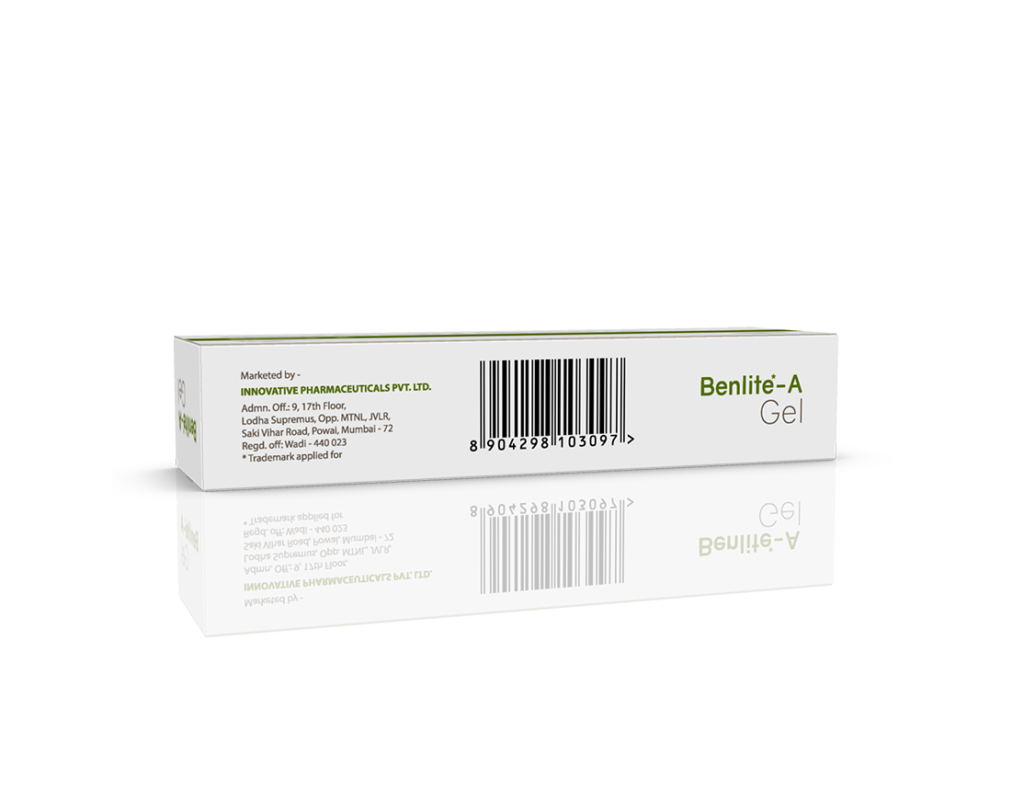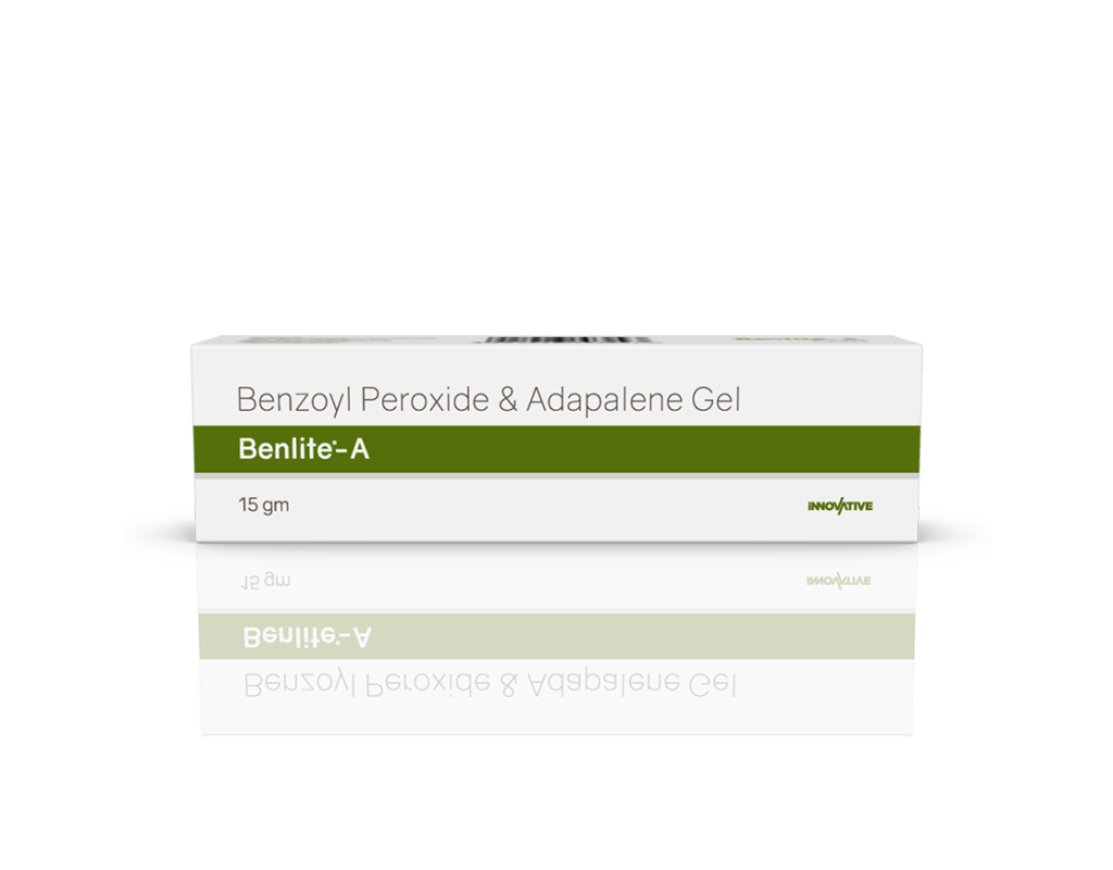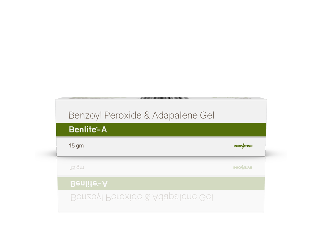 Benlite-A Gel Benzoyl Peroxide 2.5% w/w & Adapalene 0.1% w/w Pack : 15 g Lami Tube in Mono Carton Enquiry Categories: Derma Care, General Practitioner, Pharma, Specialities Tag: Pharma Description Additional information Description Benlite-A Gel Composition : Benzoyl Peroxide 2.5% w/w & Adapalene 0.1% w/w Therapeutic Segment : Anti-Acne Packing : 15 g Lami Tube in Mono Carton Indications : Treatment of acne Acne vulgaris Dosage : Apply a thin film twice daily on acne lesions or as directed by Physician Product Enquiry Product Information Product DescriptionBenlite-A Gel is a prescription medicine having combination of medicines that are used to treat acne. It removes the dead layer of the skin which is present on the top. It stops the growth of bacteria. Benefits Excoriated acne Papules & pustules Direction For Use This medicine is for external use only. Use it in the dose and duration as advised by your doctor. Check the label for directions before use. Clean and dry the affected area and apply the gel. Wash your hands after applying, unless hands are the affected area. Mechanism of ActionBenzoyl Peroxide and Adapalene, which treats acne (pimples). Adapalene is a form of vitamin A and Benzoyl Peroxide is a keratolytic medicine. Together, they prevent accumulation of the sebum (skin’s natural oil), unblock the pores and allow natural exfoliation of the outer layers of skin. Benzoyl Peroxide additionally penetrates into the skin and kills acne-causing bacteria. Also AvailableBenlite 2.5% Gel | Benlite 5% Gel Additional information Dosage Form Gel Therapeutic Segment Anti-Acne ENQUIRY! Related Products Adac Cream Azelaic 15% Cream Pack : 15 g Lami Tube in Mono Carton ENQUIRY! Enquiry Clinbid-B Gel Clindamycin Phosphate 1% w/w & Benzoyl Peroxide 2.5% w/w Pack : 15 g Lami Tube in Mono Carton ENQUIRY! Enquiry Clinbid-N Gel Clindamycin Phosphate 1% w/w & Nicotinamide 4% w/w Pack : 15 g Lami Tube in Mono Carton ENQUIRY! Enquiry Geonoin 20 mg Softgels Isotretinoin 20 mg (Micronized) Pack : 1 x 10 Softgel Blister Pack in Mono Carton ENQUIRY! Enquiry Related products Altum Suspension Albendazole 200 mg / 5 ml Pack : 10 ml Bottle in Mono Carton ENQUIRY! Enquiry Aclopride-TH Tablets Aceclofenac 100 mg & Thiocolchicoside 4 mg Pack : 1 x 10 Alu-Alu Pack ENQUIRY! Enquiry Algra Plus Tablets Sildenafil Citrate 50 mg & Dapoxetine 30 mg Pack : 1 x 4 Blister Pack in Mono Carton ENQUIRY! Enquiry Aclopride Gel Aceclofenac, Linseed Oil, Methyl Salicylate, Menthol & Capsaicin Pack : 30 g Lami Tube In Mono Carton ENQUIRY! Enquiry