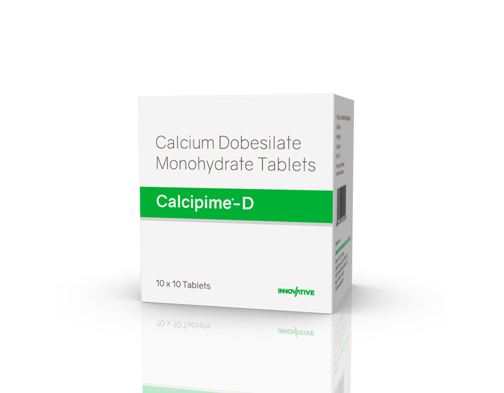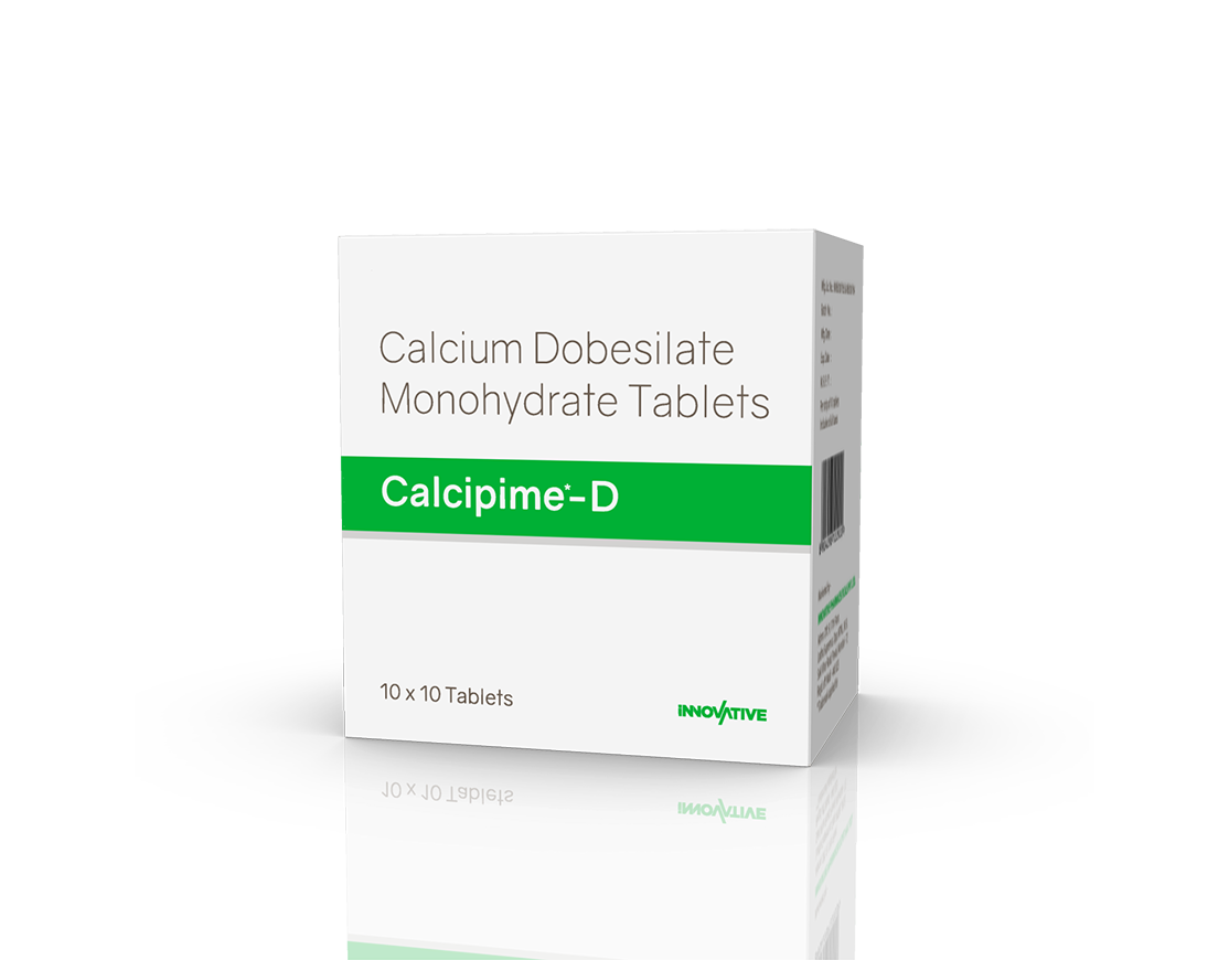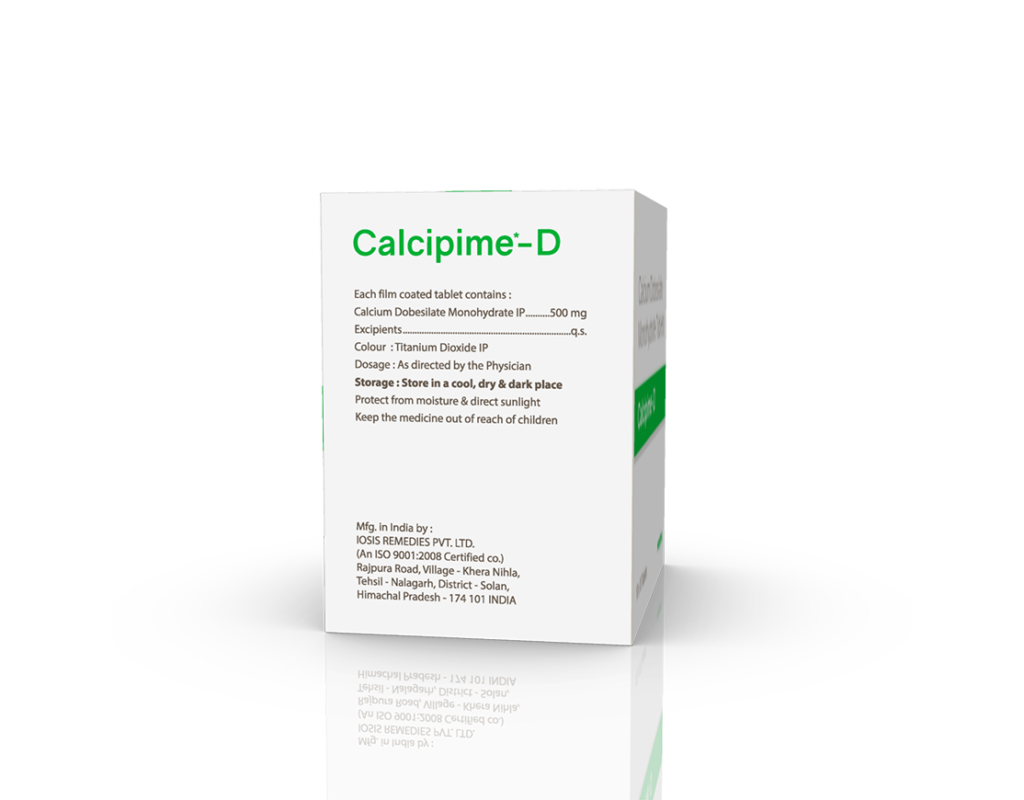 Calcipime-D Tablets Calcium Dobesilate 500 mg Pack : 1 x 10 Tablets Blister Pack Enquiry Categories: Nephrologist, Orthopaedic Care, Pharma, Physician, Specialities, Surgical Care Tag: Pharma Description Additional information Description Calcipime-D Tablets Composition : Calcium Dobesilate 500 mg Therapeutic Segment : Vasoprotective Packing : 1 x 10 Tablets (Blister Pack) Indications : Peripheral Circulatory Disorders Chronic Venous Disease Haemorrhoids Diabetic Retinopathy Dosage : 1-2 Tablets twice daily for 3 weeks or as directed by Physician Product Description : Calcium Dobesilate is used in the treatment of piles and varicose veins. Work Mechanism : Calcium Dobesilate works on the walls of the small vessel and decreases their leakage and fragility. It also improves blood flow by decreasing viscosity/thickness of blood. Also Available Calcipime 500 mg Tablets | Calcipime Forte Softgels | Calcipime Max Softgels | Calcipime Plus Softgels | Calcipime Plus Tablets | Calcipime Softgels | Calcipime Suspension | Calcipime-C Softgels | Calcipime-C Tablets | Calcipime-CC Tablets | Calcipime-CCM Chewable Tablets | Calcipime-CK Tablets | Calcipime-Fem Softgels | Calcipime-K2 Softgels | Calcipime-O Tablets | Calcipime-P Suspension 100 ml | Calcipime-P Suspension 200 ml Additional information Dosage Form Tablets Therapeutic Segment Vasoprotective ENQUIRY! Related Products Nebimet 5 mg Tablets Nebivolol 5 mg Pack : 1 x 10 Tablets Alu-Alu Pack ENQUIRY! Enquiry Fenolet 160 mg Tablets Fenofibrate 160 mg Pack : 1 x 10 Tablets Alu-Alu Pack ENQUIRY! Enquiry Silotag 8 mg Capsules Silodosin 8 mg Pack : 1 x 10 Capsules Alu-Alu Pack ENQUIRY! Enquiry Acilet 1000 mg Tablets Sodium Bicarbonate 1000 mg Pack : 1 x 10 Blister Pack ENQUIRY! Enquiry Related products Alconix 500 mg Tablets Disulfiram 500 mg Pack : 1 x 4 Blister in Mono Carton ENQUIRY! Enquiry Altum Suspension Albendazole 200 mg / 5 ml Pack : 10 ml Bottle in Mono Carton ENQUIRY! Enquiry Aclopride-TA Tablets Aceclofenac 100 mg, Tramadol 37.5 mg & Paracetamol 325 mg Pack : 1 x 10 Tablets Blister Pack ENQUIRY! Enquiry Aclopride-D Tablets Aceclofenac 100 mg & Drotaverine 80 mg Pack : 1 x 10 Tablets Blister Pack ENQUIRY! Enquiry