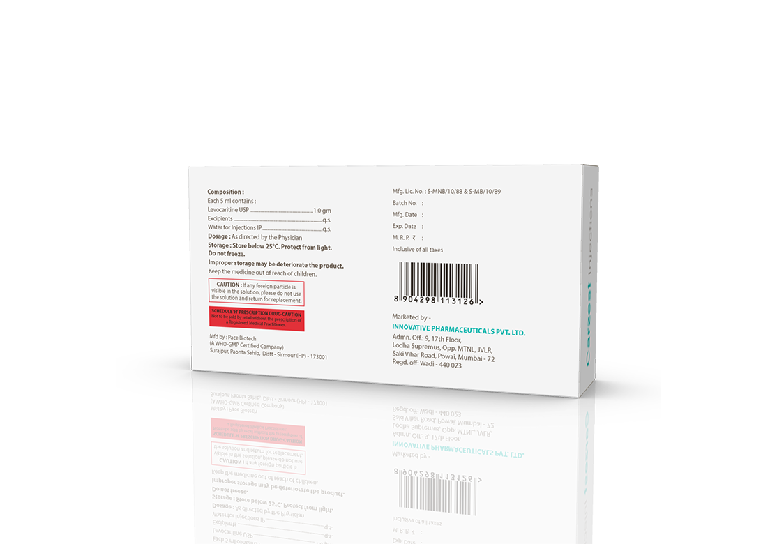 Carzest Injection Levocarnitine 1 gm / 5 ml Pack : 5 ml Amber Ring Ampoule & Insert in Tray with Cover in Mono Carton Enquiry Categories: Injectable Care, Nephrologist, Neuro Care, Pharma, Physician, Psychiatric Care, Specialities Tag: Pharma Description Additional information Description Carzest Injection Composition: Levocarnitine 1 gm / 5 ml Therapeutic Segment: Carnitine (Protein) Deficiency Packing: 5 ml Amber Ring Ampoule & Insert in Tray with Cover in Mono Carton Indications: Carnitine deficiency Dosage: As directed by the Physician Product Enquiry Product Information Product DescriptionCarzest Injection belongs to a class of medications called amino acids. It is used in the treatment of carnitine deficiency. It helps the body produce energy and improves the efficiency of body function. BenefitsCarnitine deficiency Direction For Use Your doctor or nurse will give you this medicine Kindly do not self-administer. Mechanism of ActionLevocarnitine belongs to the class of medications called as amino acid derivative. It works by improving the low levels of carnitine in the body. Also AvailableCarzest 500 mg Tablets | Carzest Syrup | Carzest-LC Tablets Additional information Dosage Form Injectable Therapeutic Segment Carnitine (Protein) Deficiency ENQUIRY! Related Products Carzest 500 mg Tablets Levocarnitine 500 mg Pack : 1 x 10 Tablets Alu-Alu Pack ENQUIRY! Enquiry Related products Aclopride-D Tablets Aceclofenac 100 mg & Drotaverine 80 mg Pack : 1 x 10 Tablets Blister Pack ENQUIRY! Enquiry Algra 100 mg Tablets Sildenafil Citrate 100 mg Pack : 1 x 4 Blister Pack in Mono Carton ENQUIRY! Enquiry Altum Tablet Albendazole 400 mg Pack : 1 Tab Blister Pack ENQUIRY! Enquiry Alfumac-ER 10 mg Tablets Alfuzosin 10 mg Extended Release Tablets Pack : 1 x 10 Alu-Alu Pack ENQUIRY! Enquiry