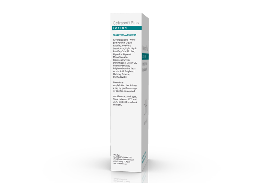 Cetrasoft Plus Lotion White Soft Paraffin, Liquid Paraffin, Aloe Vera, Stearic Acid, Light Liquid Paraffin, Cetyl Alcohol, Glycerine Pack : 100 ml Bottle in mono carton Enquiry Categories: Cosmetic, Derma Care, Pharma, Specialities Tag: Pharma Description Additional information Description Cetrasoft Plus Lotion Composition : White Soft Paraffin, Liquid Paraffin, Aloe Vera, Stearic Acid, Light Liquid Paraffin, Cetyl Alcohol, Glycerine, Glycerol Mono Stearate, Propylene Glycol, Dimethicone, Silicon Oil, Phenoxy Ethanol, Ethylene Diamine Tetra Acetic Acid, Butylated Hydroxy Toluene, Purified Water Therapeutic Segment : Moisturizer Packing : 100 ml Opaque Bottle with Fliptop Cap Indications : Eczema & Dry skin conditions Dosage : As directed by physician Also Available Cetrasoft Cream Additional information Dosage Form Lotion Therapeutic Segment Moisturizer ENQUIRY! Related Products Cetrasoft Lotion Cetyl Alcohol 2.65% w/v & Stearyl Alcohol 0.26% w/v Pack : 100 ml Opaque Bottle with Fliptop Cap ENQUIRY! Enquiry Cetrasoft Cream White Soft Paraffin 13.2% w/w & Liquid Paraffin 10.2% w/w Pack : 75 g Jar ENQUIRY! Enquiry Related products Aclopride-PT8 Tablets Aceclofenac 100 mg, Paracetamol 325 mg & Thiocolchicoside 8 mg Pack : 1 x 10 Tablets Alu-Alu Pack ENQUIRY! Enquiry Aclopride-TH Tablets Aceclofenac 100 mg & Thiocolchicoside 4 mg Pack : 1 x 10 Alu-Alu Pack ENQUIRY! Enquiry Alfumac-ER 10 mg Tablets Alfuzosin 10 mg Extended Release Tablets Pack : 1 x 10 Alu-Alu Pack ENQUIRY! Enquiry Altum Plus Tablet Albendazole 400 mg & Ivermectin 6 mg Tablet Pack : 1 x 10 Blister Pack in Mono Carton ENQUIRY! Enquiry