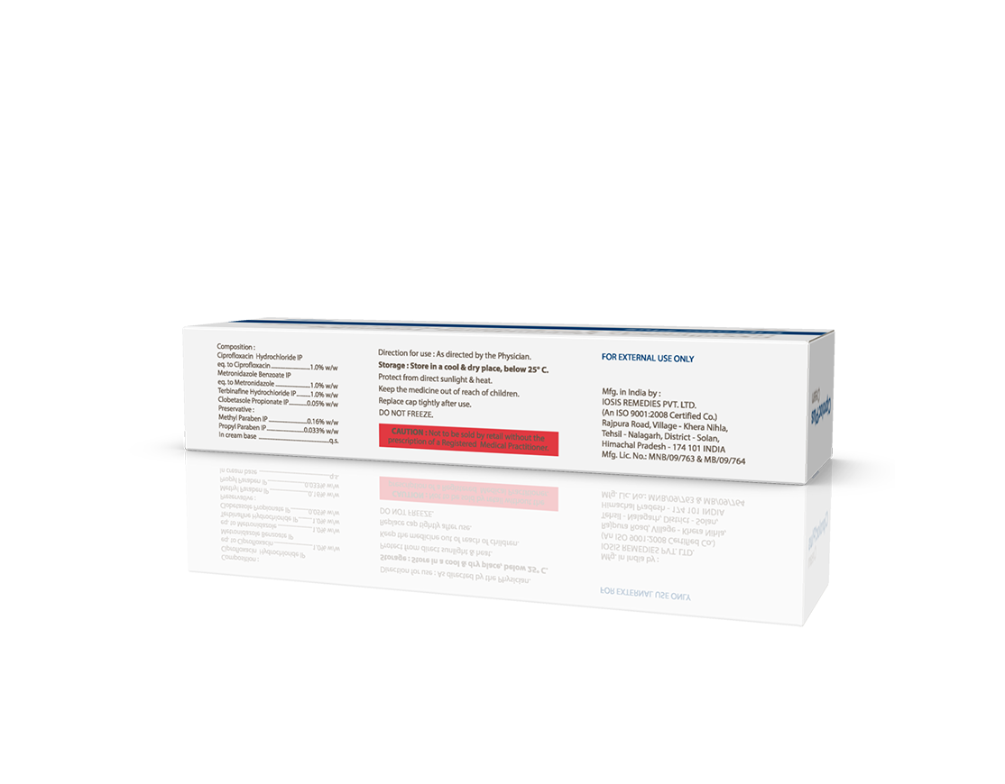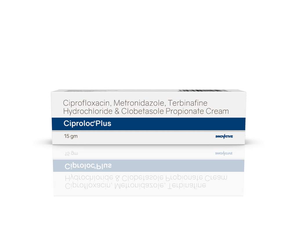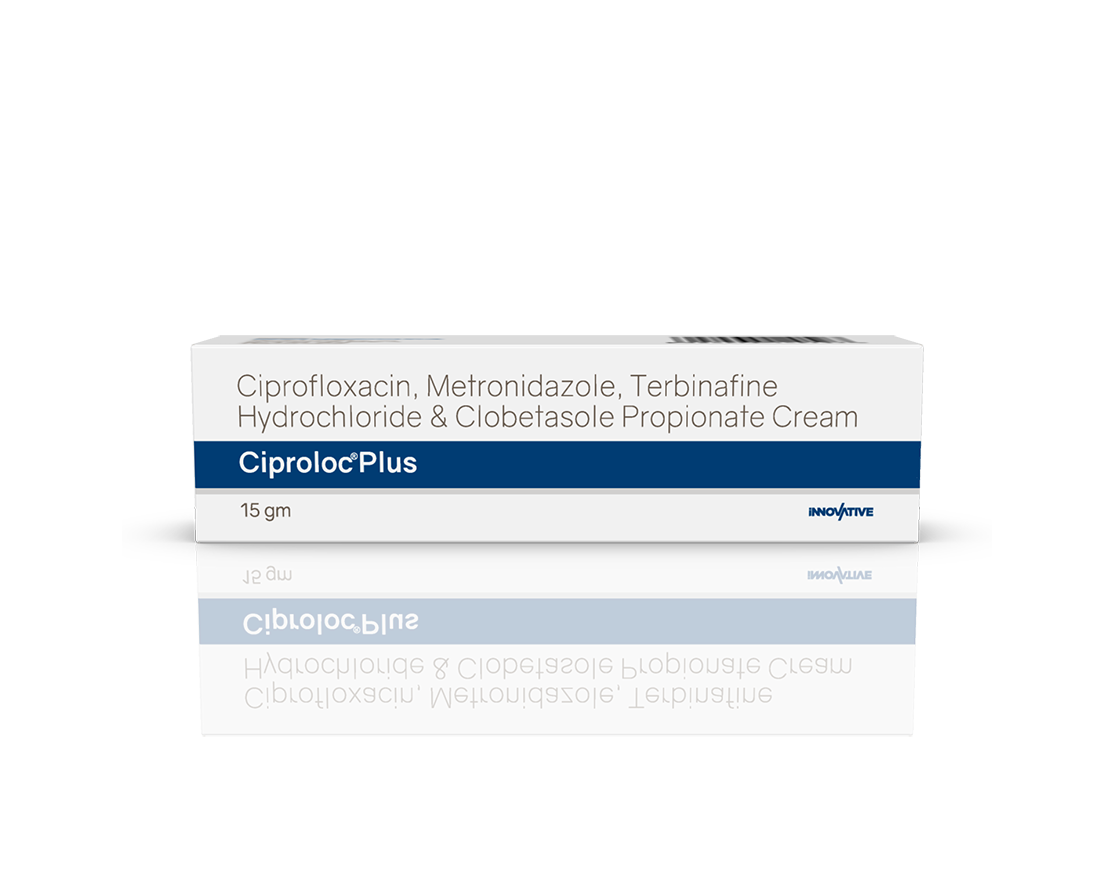 Ciproloc Plus Cream Ciprofloxacin 1%, Metronidazole 1%, Terbinafine 1% & Clobetasole Propionate 0.05% Pack : 15 g Lami Tube in Mono Carton Enquiry Categories: Derma Care, Pharma, Physician, Specialities Tag: Pharma Description Additional information Description Ciproloc Plus Cream Composition : Ciprofloxacin 1%, Metronidazole 1%, Terbinafine 1% & Clobetasole Propionate 0.05% Therapeutic Segment : Antibiotics | Antifungal Packing : 15 g Lami Tube in Mono Carton Indications : Dermatophytosis Bacterial Infections Inflammatory Dermatomes Fungal Infections Dosage : Apply to the affected area & rub evenly twice daily or as directed by Physician Also Available Ciproloc 250 mg Tablets | Ciproloc 500 mg Tablets | Ciproloc-TZ Tablets Additional information Dosage Form Cream Therapeutic Segment Antibiotic, Antifungal ENQUIRY! Related Products Unimox 500 mg Capsules Amoxycillin 500 mg & Lactic Acid Bacillus 2.5 Billions Spores Pack : 1 x 15 Capsules Blister Pack ENQUIRY! Enquiry Omisafe-TZ 1.125 gm Injection Ceftriaxone 1000 mg & Tazobactam 125 mg Pack : 20 ml Vial with 10 ml WFI & Insert in Mono Carton ENQUIRY! Enquiry Boxtag 4.5 gm Injection Piperacillin 4 gm & Tazobactam 500 mg Pack : 30 ml Vial with 20 ml WFI & Insert in Tray with Mono Carton ENQUIRY! Enquiry Bencef Plus 1.125 gm Injection Cefuroxime Sodium 750 mg & Sulbactum 375 mg Pack : 10 ml Vial with 10 ml WFI & Insert in Mono Carton ENQUIRY! Enquiry Related products Altum Plus Tablet Albendazole 400 mg & Ivermectin 6 mg Tablet Pack : 1 x 10 Blister Pack in Mono Carton ENQUIRY! Enquiry Aclopride-SP Tablets Aceclofenac 100 mg, Paracetamol 325 mg & Serratiopeptidase 15 mg Pack : 1 x 10 Blister Pack ENQUIRY! Enquiry Aclopride-D Tablets Aceclofenac 100 mg & Drotaverine 80 mg Pack : 1 x 10 Tablets Blister Pack ENQUIRY! Enquiry Aclopride Gel Aceclofenac, Linseed Oil, Methyl Salicylate, Menthol & Capsaicin Pack : 30 g Lami Tube In Mono Carton ENQUIRY! Enquiry
