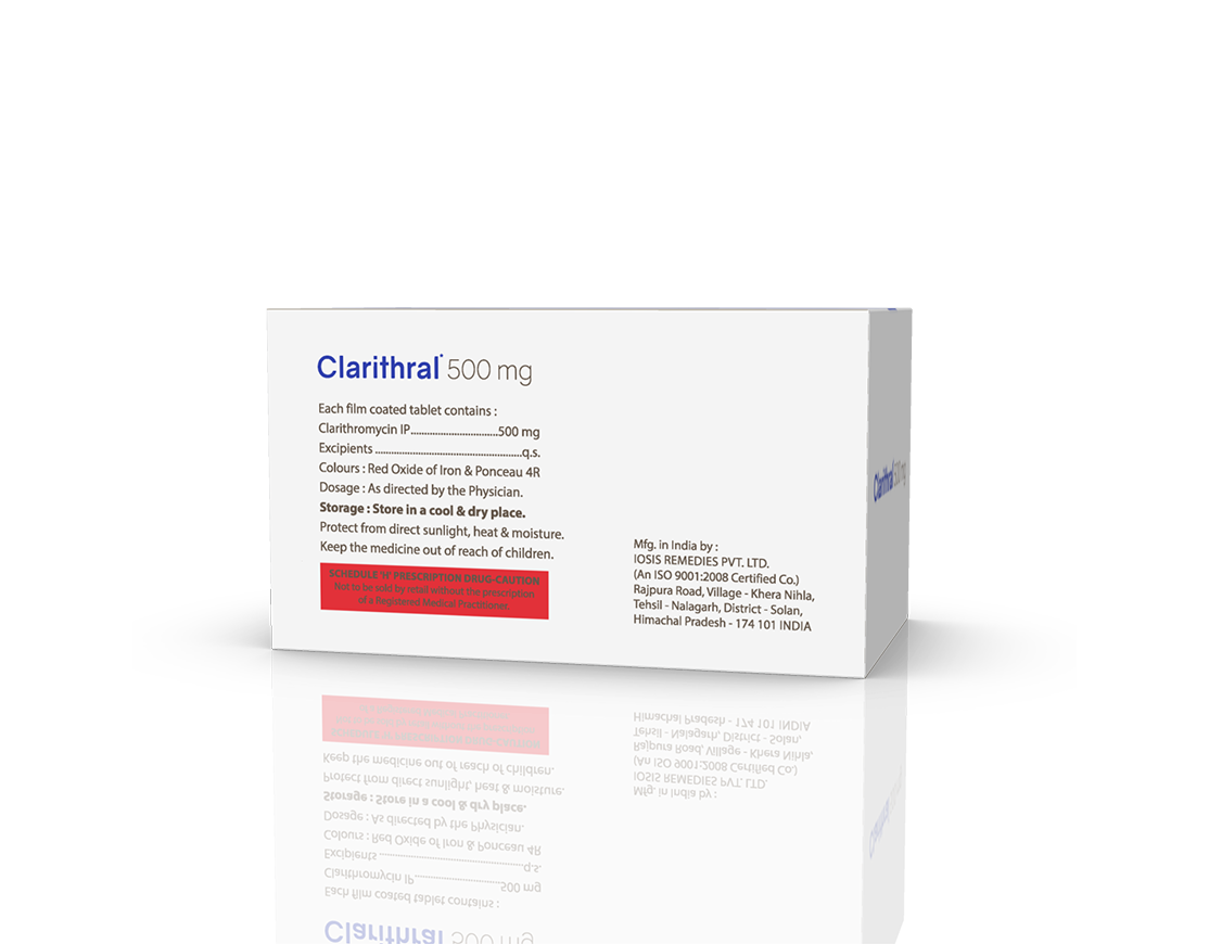 Clarithral 500 mg Tablets Clarithromycin 500 mg Pack : 1 x 10 Tablets Blister Pack in Mono Carton Enquiry Categories: ENT Care, General Practitioner, Paediatric Care, Pharma, Physician, Specialities Tag: Pharma Description Additional information Description Clarithral 500 mg Tablets Composition : Clarithromycin 500 mg Therapeutic Segment : Antibiotic | Anti-Infective Packing : 1 x 10 Tablets (Blister Pack) in Mono Carton Indications : Alzheimer’s disease Stroke Dementia in Parkinson’s disease Dosage : 1-2 Tablets twice daily for 7-14 days or as directed by Physician Product Enquiry Product Information Product DescriptionClarithral 500 mg Tablets helps in the treatment of stroke, head injury, Alzheimer’s disease, and memory loss (dementia) in Parkinson’s disease. It protects the nerve cells in the brain from damage and also helps to repair the damaged nerve cells. Benefits Age related memory loss Head injury Direction For Use Take this medicine in the dose and duration as advised by your doctor Swallow it as a whole. Do not chew, crush or break it. Mechanism of ActionClarithral 250 mg Tablets is a nerve protecting medicine. It nourishes the nerve cells, protects them from damage and improves their survival by producing certain brain chemicals including phosphatidylcholine and acetylcholine. It also reduces free fatty acid buildup at the site of nerve damage. Also AvailableClarithral 250 mg Tablets | Clarithral Dry Syrup | Clarithral Injection Additional information Dosage Form Tablets Therapeutic Segment Anti-Infective, Antibiotic ENQUIRY! Related Products Omnazide-TZ 281.25 mg Injection Ceftazidime 250 mg & Tazobactam 31.25 mg Pack : 7.5 ml Vial with 5 ml WFI & Insert in Mono Carton ENQUIRY! Enquiry Netrobact 50 mg Injection Netilmicin 50 mg / ml Pack : 1 ml Clear Ring Ampoule & Insert in Tray with Mono Carton ENQUIRY! Enquiry CPDOX Drops Cefpodoxime Proxetil 25 mg / ml Pack : 10 ml Bottle with 10 ml WFI & Dropper in Mono Carton ENQUIRY! Enquiry Unimox 500 mg Capsules Amoxycillin 500 mg & Lactic Acid Bacillus 2.5 Billions Spores Pack : 1 x 15 Capsules Blister Pack ENQUIRY! Enquiry Related products Altum Plus Tablet Albendazole 400 mg & Ivermectin 6 mg Tablet Pack : 1 x 10 Blister Pack in Mono Carton ENQUIRY! Enquiry Aclopride-MR Tablets (Blister) Aceclofenac 100 mg, Paracetamol 325 mg & Chlorzoxazone 250 mg Pack : 1 x 10 Tablets Blister Pack ENQUIRY! Enquiry Altum Tablet Albendazole 400 mg Pack : 1 Tab Blister Pack ENQUIRY! Enquiry Alconix 500 mg Tablets Disulfiram 500 mg Pack : 1 x 4 Blister in Mono Carton ENQUIRY! Enquiry