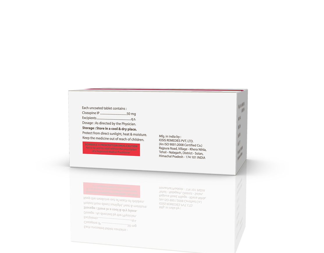 Clovac 50 mg Tablets Clozapine 50 mg Pack : 1 x 10 Tablets Blister Pack Enquiry Categories: Neuro Care, Pharma, Physician, Psychiatric Care, Specialities Tag: Pharma Description Additional information Description Clovac 50 mg Tablets Composition : Clozapine 50 mg Therapeutic Segment : Antidepressant | Anti Anxiety | Antipsychotic Packing : 1 x 10 Tablets Blister Pack Indications : Schizophrenia Dosage : As direcetd by Physician Product Description : Clozapine is used in the treatment of schizophrenia. Work Mechanism : Clozapine is an atypical antipsychotics. It works by modulating the action of certain chemical messengers in the brain that affects thoughts. Also Available Clovac 100 mg Tablets | Clovac 200 mg Tablets Additional information Dosage Form Tablets Therapeutic Segment Anti-Anxiety, Antidepressant, Antipsychotic ENQUIRY! Related Products Clovac 100 mg Tablets Clozapine 100 mg Pack : 1 x 10 Tablets Blister Pack ENQUIRY! Enquiry Gericalm 20 mg Tablets Escitalopram Oxalate 20 mg Pack : 1 x 10 Tablets Blister Pack ENQUIRY! Enquiry Gericalm Plus 0.25 | 10 Tablets Escitalopram Oxalate 10 mg & Clonazepam 0.25 mg Pack : 1 x 10 Tablets Blister Pack ENQUIRY! Enquiry Dulocalm 20 mg Tablets Duloxetine 20 mg Pack : 1 x 10 Tablets Alu-Alu Pack ENQUIRY! Enquiry Related products Aclopride-PT Tablets Aceclofenac 100 mg, Paracetamol 325 mg & Thiocolchicoside 4 mg Pack : 1 x 10 Tablets Alu-Alu Pack ENQUIRY! Enquiry Algra 100 mg Tablets Sildenafil Citrate 100 mg Pack : 1 x 4 Blister Pack in Mono Carton ENQUIRY! Enquiry Aclopride Gel Aceclofenac, Linseed Oil, Methyl Salicylate, Menthol & Capsaicin Pack : 30 g Lami Tube In Mono Carton ENQUIRY! Enquiry Altum Tablet Albendazole 400 mg Pack : 1 Tab Blister Pack ENQUIRY! Enquiry