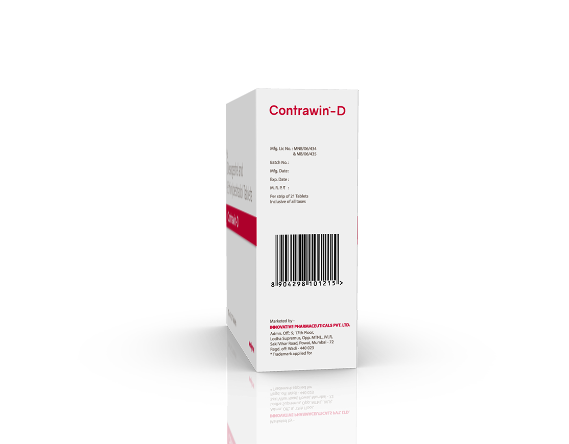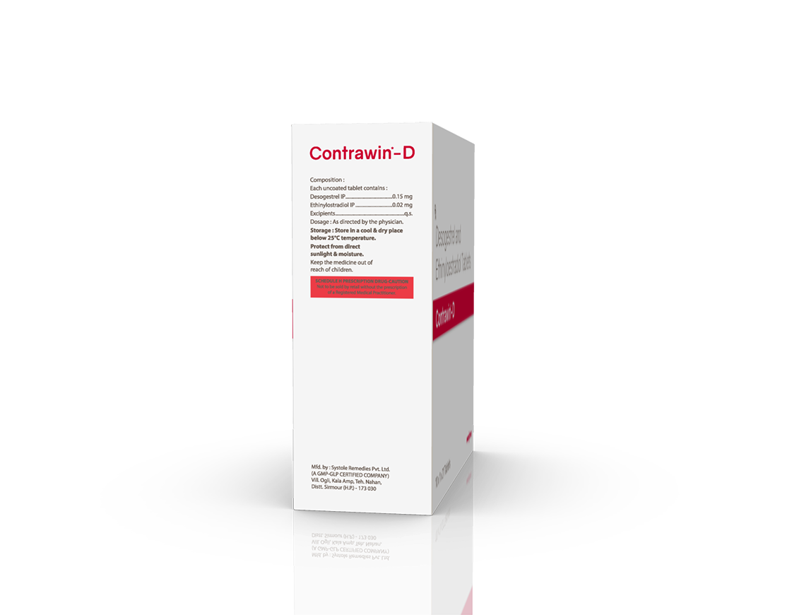 Contrawin-D Tablets Desogestrel 0.15 mg & Ethinylestradiol 0.3 mg Tablets Pack : 1 x 21 Tablets Blister Pack in Mono Carton Enquiry Categories: Gynaec Care, Pharma, Specialities Tag: Pharma Description Additional information Description Contrawin-D Tablets Composition : Desogestrel 0.15 mg & Ethinylestradiol 0.3 mg Tablets Therapeutic Segment : Oral Contraceptive Packing : 1 x 21 Tablets (Blister Pack) in Mono Carton Indications : Contraceptive to Prevent Pregnancy Endometriosis Mentruation Disturbance Hot Flashes Menopause Menorrhagia Dosage : 1 Tablet once daily or as directed by Physician Also Available Contrawin Tablets Additional information Dosage Form Tablets Therapeutic Segment Oral Contraceptive ENQUIRY! Related Products Contrawin Tablets Levonorgestrel 0.15 mg & Ethinyloestradiol 0.03 mg Tablets Pack : 1 x 21 Tablets Blister Pack in Mono Carton ENQUIRY! Enquiry Contrawin 72 Levonorgestrel 1.5 mg Pack : 1 x 1 Tablets (Blister Pack) in Mono Carton ENQUIRY! Enquiry Related products Altum Plus Tablet Albendazole 400 mg & Ivermectin 6 mg Tablet Pack : 1 x 10 Blister Pack in Mono Carton ENQUIRY! Enquiry Altum Plus Suspension Albendazole 200 mg & Ivermectin 1.5 mg / 5 ml Pack : 10 ml Bottle in Mono Carton ENQUIRY! Enquiry Aclopride-SP Tablets Aceclofenac 100 mg, Paracetamol 325 mg & Serratiopeptidase 15 mg Pack : 1 x 10 Blister Pack ENQUIRY! Enquiry Aclopride Gel Aceclofenac, Linseed Oil, Methyl Salicylate, Menthol & Capsaicin Pack : 30 g Lami Tube In Mono Carton ENQUIRY! Enquiry