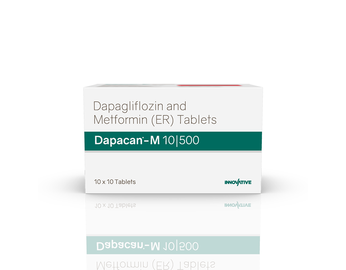 Dapacan-M 10 | 500 Tablets Dapagliflozin 10 mg & Metformin 500 mg Pack : 10 x 10 Tablets Alu-Alu Pack Enquiry Categories: Cardio Diabetic Care, Pharma, Physician, Specialities Tag: Nutraceutical Description Additional information Description Dapacan-M 10 | 500 Tablets Composition: Dapagliflozin 10 mg & Metformin 500 mg Therapeutic Segment: Anti-Diabetic Packing: 10 x 10 Tablets (Alu-Alu Pack) Indications : Controls Type-II Diabetes Kidney Disease Dosage: As directed by the Physician Product Description : Dapagliflozin and Metformin is used to treat type-2 diabetes mellitus along with diet and exercise when diabetes cannot be controlled with other medicines. Work Mechanism : Dapagliflozin + Metformin is a combination of two antidiabetic medicines: Dapagliflozin and Metformin. Dapagliflozin works by removing excess sugar (glucose) from your body through urine. Metformin works by lowering sugar production in the liver, delaying glucose absorption from intestines and increasing the body’s sensitivity to insulin. Together, they provide better control of blood sugar. Also Available Dapacan 10 mg Tablets | Dapacan 5 mg Tablets | Dapacan-M 10 | 1000 Tablets | Dapacan-M 5 | 1000 Tablets | Dapacan-M 5 | 500 Tablets | Dapacan-S 10 | 100 Tablets | Dapacan-S 10 | 50 Tablets | Dapacan-S 5 | 100 Tablets | Dapacan-S 5 | 50 Tablets | Dapacan-V 10 | 100 Tablets | Dapacan-V 5 | 100 Tablets Additional information Dosage Form Tablets Therapeutic Segment Anti-Diabetic ENQUIRY! Related Products Flucozest Gel Fluconazole 0.5% w/w Pack : 15 g Lami Tube in Mono Carton ENQUIRY! Enquiry Glycirest-M 80 Tablets Gliclazide 80 mg & Metformin 500 mg Tablets Pack : 1 x 10 Tablets Blister Pack ENQUIRY! Enquiry Baclosure 20 mg Tablets Baclofen 20 mg Pack : 1 x 10 (Alu-Alu) ENQUIRY! Enquiry Cetrasoft Plus Lotion White Soft Paraffin, Liquid Paraffin, Aloe Vera, Stearic Acid, Light Liquid Paraffin, Cetyl Alcohol, Glycerine Pack : 100 ml Bottle in mono carton ENQUIRY! Enquiry Related products Acetazone 250 mg Tablets Acetazolamide 250 mg Pack : 1 x 10 Blister Pack ENQUIRY! Enquiry Alfumac-D Tablets Alfuzosin 10 mg & Dutasteride 0.5 mg Pack : 1 x 10 Alu-Alu Pack ENQUIRY! Enquiry Aclopride-TH Tablets Aceclofenac 100 mg & Thiocolchicoside 4 mg Pack : 1 x 10 Alu-Alu Pack ENQUIRY! Enquiry Aclopride-MR Tablets (Blister) Aceclofenac 100 mg, Paracetamol 325 mg & Chlorzoxazone 250 mg Pack : 1 x 10 Tablets Blister Pack ENQUIRY! Enquiry