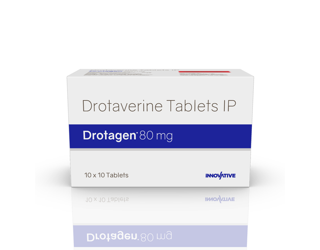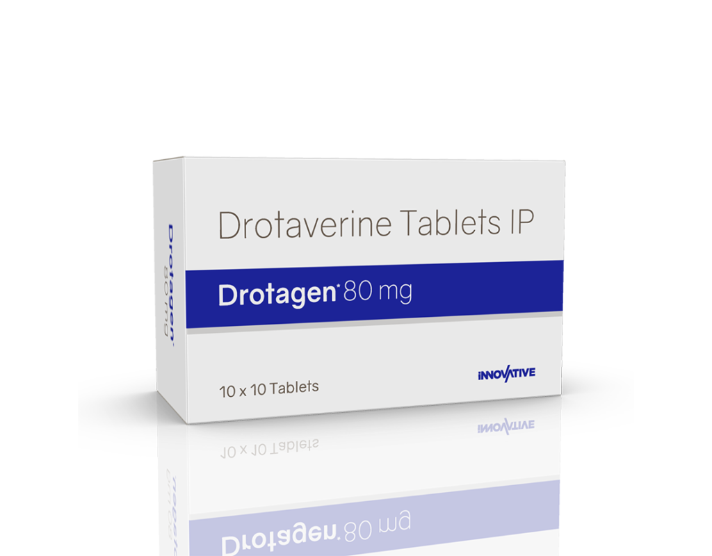 Drotagen 80 mg Tablets Drotaverine Hydrochloride 80 mg Pack : 1 x 10 Tablets Blister Pack Enquiry Categories: Gastro Care, General Practitioner, Gynaec Care, Pharma, Physician, Specialities, Surgical Care, Urology Care Tag: Pharma Description Additional information Description Drotagen 80 mg Tablets Composition : Drotaverine Hydrochloride 80 mg Therapeutic Segment : Antispasmodics Packing : 1 x 10 Tablets (Blister Pack) Indications : Abdominal, Renal & Biliary Colic Spasmodic Dysmenorrhoea Uterine Irritability Post-Operative Pain GI Spasms Intestinal Colic Smooth Muscle Spasms Dosage : 1 Tablet thrice daily after meals or as directed by Physician Product Description : It is s an antispasmodic medicine. It is used in the treatment of menstrual pain and abdominal pain. It provides relief from pain due to smooth muscle spasms like menstrual pain, pain due to kidney stones, pain due to biliary stones, and gastrointestinal colicky pain. Work Mechanism : It works by inhibiting the action of an enzyme phosphodiesterase, thus results in relaxation of smooth muscle and dilation of blood vessels. Also Available Drotagen Injection | Drotagen Suspension Additional information Dosage Form Tablets Therapeutic Segment Antispasmodics ENQUIRY! Related Products Drotagen Suspension Drotaverine Hydrochloride 20 mg / 5 ml Pack : 60 ml Bottle in Mono Carton ENQUIRY! Enquiry Bonizest Syrup ENQUIRY! Enquiry Cyclobrex-S Suspension Dicyclomine Hydrochloride 10 mg & Simethicone 40 mg / 5 ml Pack : 60 ml Bottle with Measuring Cap in Mono carton ENQUIRY! Enquiry Mefzest Spas 10 Tablets Mefenamic Acid 250 mg & Dicyclomine 10 mg Pack : 1 X 10 Tablets Blister Pack ENQUIRY! Enquiry Related products Acetazone 250 mg Tablets Acetazolamide 250 mg Pack : 1 x 10 Blister Pack ENQUIRY! Enquiry Aclopride 100 mg DT Aceclofenac 100 mg DT Pack : 1 x 10 Tablets Alu-Alu Pack ENQUIRY! Enquiry Altum Suspension Albendazole 200 mg / 5 ml Pack : 10 ml Bottle in Mono Carton ENQUIRY! Enquiry Alconix 500 mg Tablets Disulfiram 500 mg Pack : 1 x 4 Blister in Mono Carton ENQUIRY! Enquiry