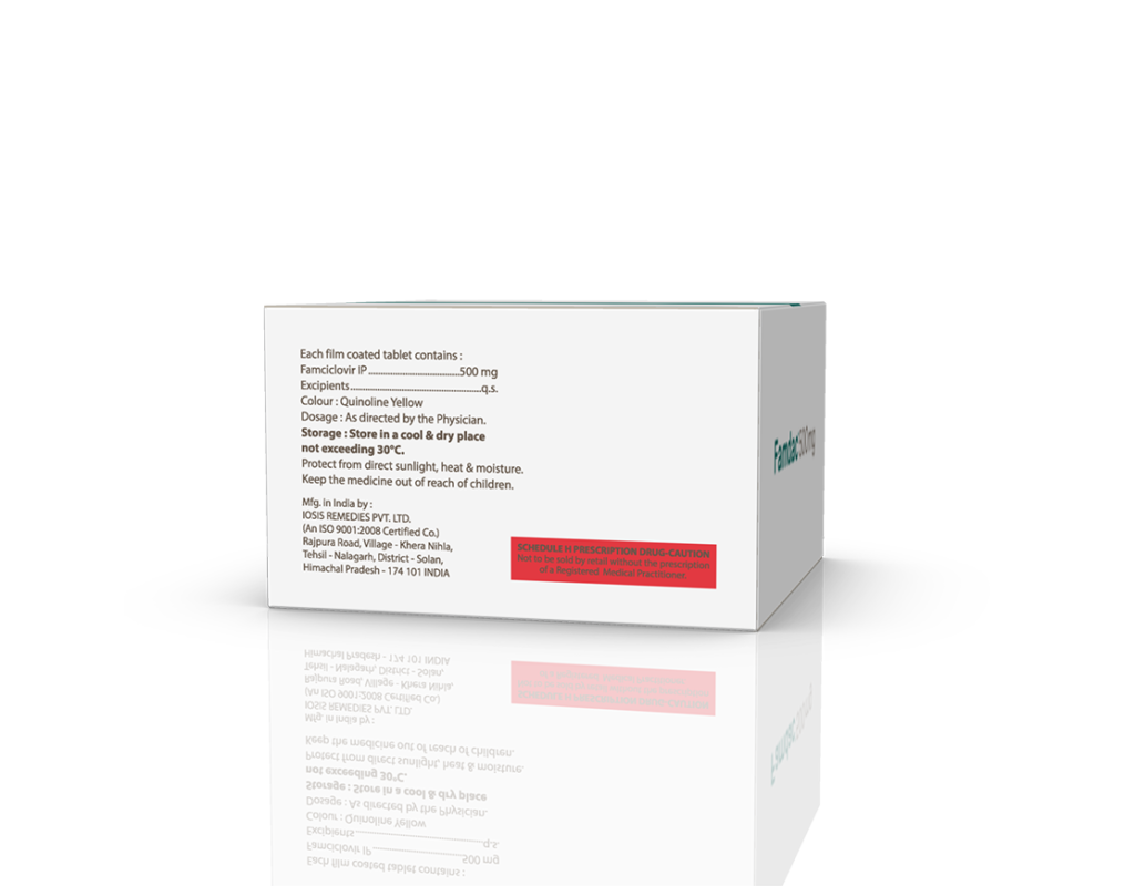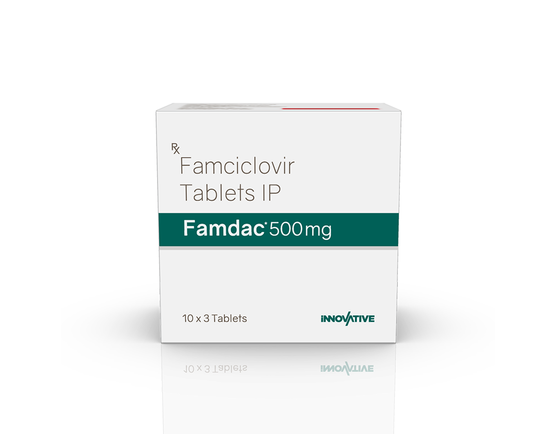 Famdac 500 mg Tablets Famciclovir 500 mg Pack : 1 x 3 Tablets Blister Pack Enquiry Categories: Derma Care, Pharma, Physician, Specialities Tag: Pharma Description Additional information Description Famdac 500 mg Tablets Composition : Famciclovir 500 mg Therapeutic Segment : Antiviral Packing : 1 x 3 Tablets (Blister Pack) Indications : Herpes Zoster Recurrent Genital Herpes Recurrent Mucocutaneous Herpes in HIV Patients Recurrent Herpes Labialis Dosage : As directed by Physician Product Description : Famciclovir is used in the treatment of herpes labialis, herpes simplex virus infections, Shingles and genital herpes infection. Work Mechanism : It prevents the multiplication of virus in human cells. This stops the virus from producing new viruses and clears up your infection. Additional information Dosage Form Tablets Therapeutic Segment Antiviral ENQUIRY! Related Products Osevir 15 mg Suspension (60 ml) Oseltamivir 15 mg / ml Pack : 60 ml Bottle in Mono Carton ENQUIRY! Enquiry Osevir 30 mg Capsules Oseltamivir 30 mg Pack : 1 x 10 Capsules Alu-Alu Pack ENQUIRY! Enquiry Osevir 75 mg Capsules Oseltamivir 75 mg Pack : 1 x 10 Capsules Alu-Alu Pack ENQUIRY! Enquiry Osevir 45 mg Capsules Oseltamivir 45 mg Pack : 1 x 10 Capsules Alu-Alu Pack ENQUIRY! Enquiry Related products Aclopride-PT8 Tablets Aceclofenac 100 mg, Paracetamol 325 mg & Thiocolchicoside 8 mg Pack : 1 x 10 Tablets Alu-Alu Pack ENQUIRY! Enquiry Alrest 0.25 mg Tablets Clonazepam 0.25 mg Pack : 1 x 10 Blister Pack ENQUIRY! Enquiry Altum Suspension Albendazole 200 mg / 5 ml Pack : 10 ml Bottle in Mono Carton ENQUIRY! Enquiry Altum Plus Suspension Albendazole 200 mg & Ivermectin 1.5 mg / 5 ml Pack : 10 ml Bottle in Mono Carton ENQUIRY! Enquiry