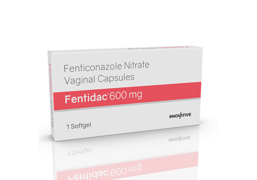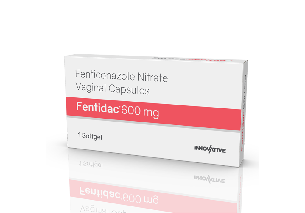Fentidac 600 mg Vaginal Softgels Composition : Fenticonazole Nitrate Ph. Eur 600 mg Packing : 1 Softgel Blister Pack Enquiry Categories: Gynaec Care, Pharma, Specialities Tag: Ayurvedic Description Additional information Description Fentidac 600 mg Vaginal Softgels Composition : Fenticonazole Nitrate Ph. Eur 600 mg Therapeutic Segment : Anti-fungal Packing : 1 Softgel Blister Pack Indications : Treatment of fungal infections of vagina Dosage : 1-2 Softgels Daily or as directed by Physician Additional information Dosage Form Softgels Therapeutic Segment Antifungal ENQUIRY! Related Products Terzest Cream Terbinafine 1% w/w Pack : 10 g Lami Tube in Mono Carton ENQUIRY! Enquiry Ciclowin Cream Ciclopirox Olamine 1 %W/W Pack : 30 g Lami Tube in Mono Carton ENQUIRY! Enquiry Ketozest Soap Ketoconazole IP 2% w/w Pack : 75 g in Mono Carton ENQUIRY! Enquiry Lubact Cream 20 gm Luliconazole 1% Pack : 20 g Lami Tube in Mono Carton ENQUIRY! Enquiry Related products Aclopride 100 mg DT Aceclofenac 100 mg DT Pack : 1 x 10 Tablets Alu-Alu Pack ENQUIRY! Enquiry Altum Plus Suspension Albendazole 200 mg & Ivermectin 1.5 mg / 5 ml Pack : 10 ml Bottle in Mono Carton ENQUIRY! Enquiry Aclopride-SP Tablets Aceclofenac 100 mg, Paracetamol 325 mg & Serratiopeptidase 15 mg Pack : 1 x 10 Blister Pack ENQUIRY! Enquiry Aclopride-TA Tablets Aceclofenac 100 mg, Tramadol 37.5 mg & Paracetamol 325 mg Pack : 1 x 10 Tablets Blister Pack ENQUIRY! Enquiry