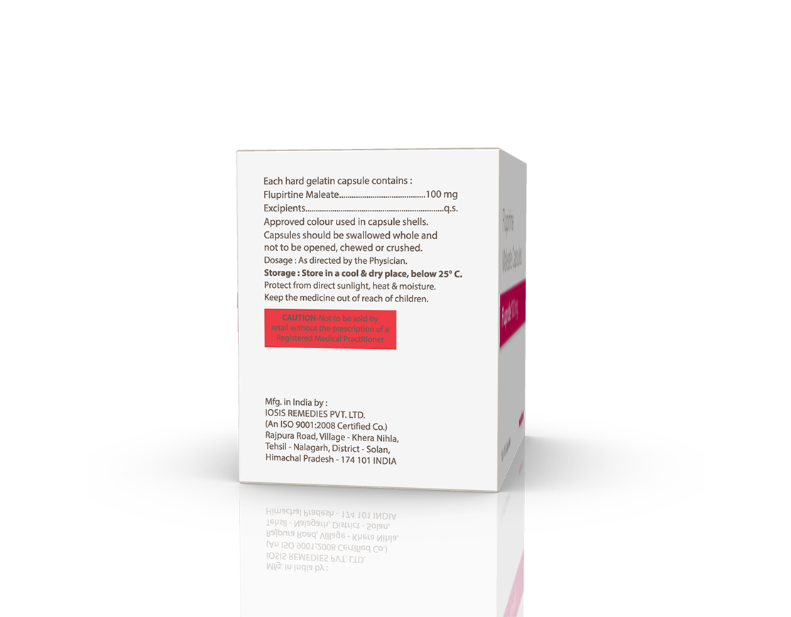 Flupride 100 mg Capsules Flupirtine 100 mg Pack : 1 x 10 Capsules Blister Pack Enquiry Categories: Neuro Care, Orthopaedic Care, Pharma, Physician, Specialities Tag: Pharma Description Additional information Description Flupride 100 mg Capsules Composition: Flupirtine 100 mg Therapeutic Segment: Analgesic | Antipyretics Packing: 1 x 10 Capsules (Blister Pack) Indications : Acute & Chronic Pain Low Back Pain Fibromyalgia Migraine Headache Dysmenorrhoea Traumatic Pain Post-Operative Pain Dosage: 1 Capsule twice daily or as directed by the Physician Product Description : Flupirtine is used in treatment of pain relief. Work Mechanism : Flupirtine decreases the perception of pain by blocking the transmission of pain signals to the brain. Also Available : Flupride-P Tablets Additional information Dosage Form Tablets Therapeutic Segment Analgesic, Antipyretic ENQUIRY! Related Products Aclopride-MR Tablets (Blister) Aceclofenac 100 mg, Paracetamol 325 mg & Chlorzoxazone 250 mg Pack : 1 x 10 Tablets Blister Pack ENQUIRY! Enquiry Erocoxib 90 mg Tablets (1 x 10) Etoricoxib 90 mg Pack : 1 x 10 Tablets Blister Pack ENQUIRY! Enquiry Aclopride Gel Aceclofenac, Linseed Oil, Methyl Salicylate, Menthol & Capsaicin Pack : 30 g Lami Tube In Mono Carton ENQUIRY! Enquiry Etotop-TH Tablets Etodolac 400 mg & Thiocolchicoside 4 mg Pack : 1 x 10 Tablets Alu-Alu Pack ENQUIRY! Enquiry Related products Acetazone 250 mg Tablets Acetazolamide 250 mg Pack : 1 x 10 Blister Pack ENQUIRY! Enquiry Calcipime 500 mg Tablets Calcium Supplement with Vitamin D3 & Multiminerals Pack : 1 X 15 Tablets Blister Pack ENQUIRY! Enquiry Alconix 500 mg Tablets Disulfiram 500 mg Pack : 1 x 4 Blister in Mono Carton ENQUIRY! Enquiry Aclopride-PT Tablets Aceclofenac 100 mg, Paracetamol 325 mg & Thiocolchicoside 4 mg Pack : 1 x 10 Tablets Alu-Alu Pack ENQUIRY! Enquiry