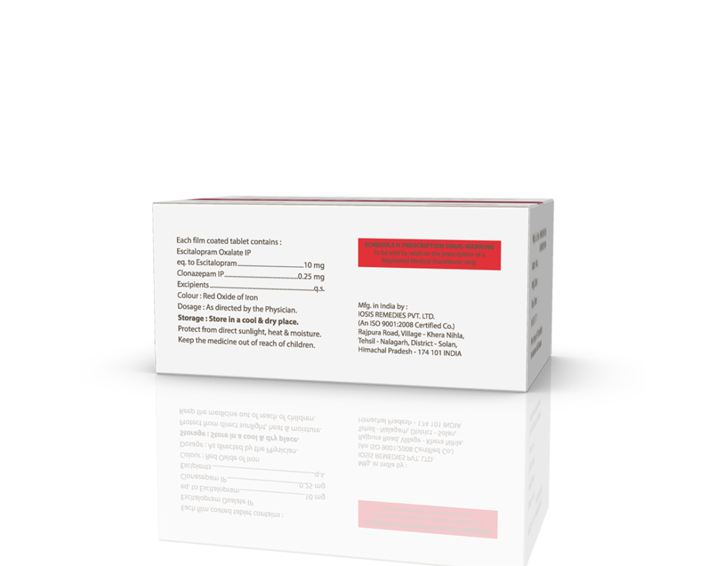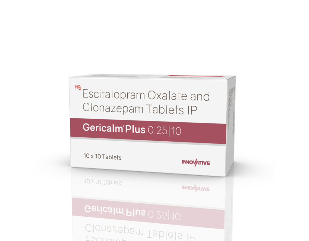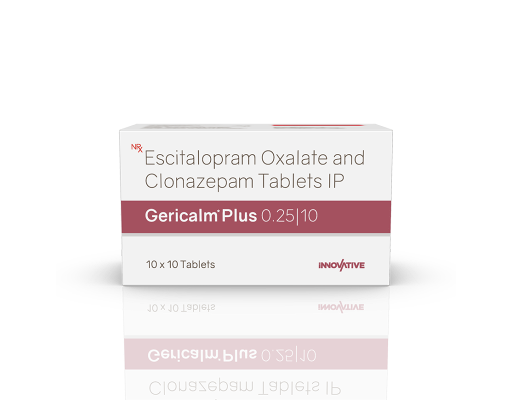 Gericalm Plus 0.25 | 10 Tablets Escitalopram Oxalate 10 mg & Clonazepam 0.25 mg Pack : 1 x 10 Tablets Blister Pack Enquiry Categories: Neuro Care, Pharma, Physician, Psychiatric Care, Specialities Tag: Pharma Description Additional information Description Gericalm Plus 0.25 | 10 Tablets Composition : Escitalopram Oxalate 10 mg & Clonazepam 0.25 mg Therapeutic Segment : Antidepressant | Anti anxiety | Antipsychotic Packing : 1 x 10 Tablets (Blister Pack) Indications : Epilepsy Anxiety disorders Panic disorderss Dosage : 1 Tablet once daily or as directed by Physician Product Enquiry Product Information Product DescriptionEscitalopram Oxalate + Clonazepam is used in the treatment of anxiety disorder. Benefits Major depressive disorders General anxiety disorders Direction For Use Take this medicine in the dose and duration as advised by your doctor. Swallow it as a whole. Do not chew, crush or break it. Mechanism of ActionEscitalopram increases the serotonin hormone levels that improve mood, behaviour, and cognition in patients with anxiety. Clonazepam produces a calming effect by suppressing the abnormal activity of nerve cells. Also AvailableGericalm 10 mg Tablets | Gericalm 20 mg Tablets Gericalm Plus 0.5 | 10 Tablets Additional information Dosage Form Tablets Therapeutic Segment Anti-Anxiety, Antidepressant, Antipsychotic ENQUIRY! Related Products Etinet 0.5 mg Tablets Etizolam 0.5 mg Pack : 1 x 10 Tablets Alu-Alu Pack ENQUIRY! Enquiry Etinet 0.25 mg Tablets Etizolam 0.25 mg, Etizolam 0.5 mg Pack : 1 x 10 Tablets Alu-Alu Pack ENQUIRY! Enquiry Parolet 10 mg Tablets Paroxetine 10 mg Pack : 1 x 10 Tablets Alu-Alu Pack ENQUIRY! Enquiry Ocalm 0.25 mg Tablets Alprazolam 0.25 mg Pack : 1 x 10 Tablets Blister Pack ENQUIRY! Enquiry Related products Algra 100 mg Tablets Sildenafil Citrate 100 mg Pack : 1 x 4 Blister Pack in Mono Carton ENQUIRY! Enquiry Aclopride 100 mg DT Aceclofenac 100 mg DT Pack : 1 x 10 Tablets Alu-Alu Pack ENQUIRY! Enquiry Alrest 0.25 mg Tablets Clonazepam 0.25 mg Pack : 1 x 10 Blister Pack ENQUIRY! Enquiry Aclopride-SP Tablets Aceclofenac 100 mg, Paracetamol 325 mg & Serratiopeptidase 15 mg Pack : 1 x 10 Blister Pack ENQUIRY! Enquiry