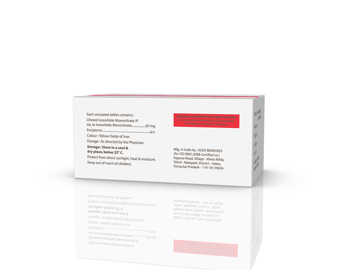 Ismolong 20 mg Tablets Isosorbide-5 Mono Nitrate 20 mg Pack : 1 x 10 Tablets Blister Pack Enquiry Categories: Cardio Diabetic Care, General Practitioner, Pharma, Physician, Specialities Tag: Pharma Description Additional information Description Ismolong 20 mg Tablets Composition : Isoosorbide-5 Mono Nitrate 20 mg Therapeutic Segment : Antianginal Packing : 1 x 10 Tablets (Blister Pack) Indications : Angina (heart-related chest pain) Heart Failure Coronary artery disease Dosage : Adult: 30 mg 2-3 times daily. Dose may range from 30-120 mg daily or as directed by Physician Product Enquiry Product Information Product DescriptionIsmolong 20 mg Tablets is used to prevent heart-related chest pain (angina). It works by relaxing and widening blood vessels so blood can flow more easily to the heart. This medicine will not treat an angina attack that has already begun. Benefits Hypertensive emergency Anal fissure Direction For Use Take this medicine in the dose and duration as advised by your doctor. Swallow it as a whole. Do not chew, crush or break it. Mechanism of ActionIsmolong 20 mg Tablets is a nitrate. It dilates peripheral arteries and veins. Dilation of the veins promotes peripheral pooling of blood and decreases venous return to the heart, thereby reducing workload of heart. As a result, the heart muscle does not need as much blood and oxygen supply. Also AvailableIsmolong 10 mg Tablets | Ismolong-SR 30 mg Tablets | Ismolong-SR 60 mg Tablets Additional information Dosage Form Tablets Therapeutic Segment Antianginal ENQUIRY! Related Products Ivazest 7.5 mg Tablets Ivabradine 7.5 mg Pack : 1 x 10 Tablets Alu-Alu Pack ENQUIRY! Enquiry Ismolong-SR 60 mg Tablets Isosorbide-5 Mono Nitrate 60 mg Sustained Release Tablets Pack : 1 x 10 Tablets Blister Pack ENQUIRY! Enquiry Nitromin-CR 2.6 mg Tablets Nitroglycerin 2.6 mg (CR) Pack : 1 x 10 Tablets Alu-Alu Pack ENQUIRY! Enquiry Ismotag 10 mg Tablets Isosorbide-Di nitrate 10 mg Pack : 1 x 10 Tablets Blister Pack ENQUIRY! Enquiry Related products Altum Suspension Albendazole 200 mg / 5 ml Pack : 10 ml Bottle in Mono Carton ENQUIRY! Enquiry Ambroloc 30 mg Tablets Ambroxol 30 mg Pack : 1 x 10 Blister Pack ENQUIRY! Enquiry Altum Tablet Albendazole 400 mg Pack : 1 Tab Blister Pack ENQUIRY! Enquiry Algra 100 mg Tablets Sildenafil Citrate 100 mg Pack : 1 x 4 Blister Pack in Mono Carton ENQUIRY! Enquiry