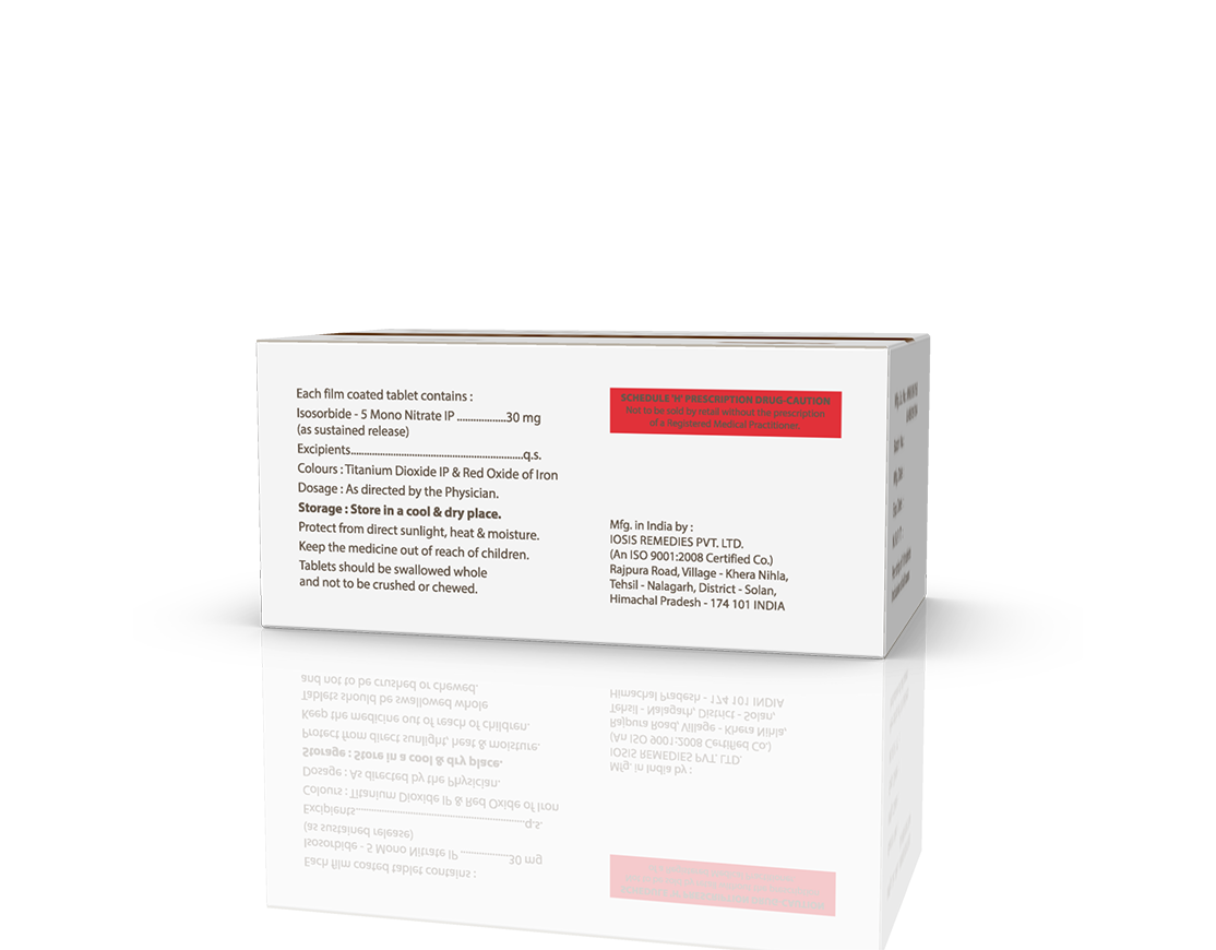 Ismolong-SR 30 mg Tablets Isosorbide – 5 Mono Nitrate 30 mg Sustained Release Tablets Pack : 1 x 10 Tablets Blister Pack Enquiry Categories: Cardio Diabetic Care, General Practitioner, Pharma, Physician, Specialities Tag: Pharma Description Additional information Description Ismolong-SR 30 mg Tablets Composition : Isosorbide – 5 Mono Nitrate 30 mg Sustained Release Tablets Therapeutic Segment : Antianginal Packing : 1 x 10 Tablets (Blister Pack) Indications : Angina (heart-related chest pain) Heart Failure Coronary artery disease Dosage : Adult: 30 mg 2-3 times daily. Dose may range from 30-120 mg daily or as directed by Physician Product Enquiry Product Information Product DescriptionIsmolong-SR 30 mg Tabletsis used to prevent heart-related chest pain (angina). It works by relaxing and widening blood vessels so blood can flow more easily to the heart. This medicine will not treat an angina attack that has already begun. Benefits Hypertensive emergency Anal fissure Direction For Use Take this medicine in the dose and duration as advised by your doctor. Swallow it as a whole. Do not chew, crush or break it. Mechanism of ActionIsmolong-SR 30 mg Tablets is a nitrate. It dilates peripheral arteries and veins. Dilation of the veins promotes peripheral pooling of blood and decreases venous return to the heart, thereby reducing workload of heart. As a result, the heart muscle does not need as much blood and oxygen supply. Also AvailableIsmolong 10 mg Tablets | Ismolong 20 mg Tablets Ismolong-SR 60 mg Tablets Additional information Dosage Form Tablets Therapeutic Segment Antianginal ENQUIRY! Related Products Ivazest 7.5 mg Tablets Ivabradine 7.5 mg Pack : 1 x 10 Tablets Alu-Alu Pack ENQUIRY! Enquiry Nicorest-ER 10 Tablets Nicorandil 10 mg Extended Release Tablets Pack : 1 x 10 Tablets Alu-Alu Pack ENQUIRY! Enquiry Ranowin 1000 mg Tablets Ranolazine 1000 mg Extended Release Tablets Pack : 1 x 10 Tablets Blister Pack in Mono Carton ENQUIRY! Enquiry Nitromin-CR 2.6 mg Tablets Nitroglycerin 2.6 mg (CR) Pack : 1 x 10 Tablets Alu-Alu Pack ENQUIRY! Enquiry Related products Aclopride-PT8 Tablets Aceclofenac 100 mg, Paracetamol 325 mg & Thiocolchicoside 8 mg Pack : 1 x 10 Tablets Alu-Alu Pack ENQUIRY! Enquiry Altum Suspension Albendazole 200 mg / 5 ml Pack : 10 ml Bottle in Mono Carton ENQUIRY! Enquiry Aclopride-TH8 Tablets Aceclofenac 100 mg & Thiocolchicoside 8 mg Pack : 1 x 10 Alu-Alu Pack ENQUIRY! Enquiry Altum Plus Suspension Albendazole 200 mg & Ivermectin 1.5 mg / 5 ml Pack : 10 ml Bottle in Mono Carton ENQUIRY! Enquiry