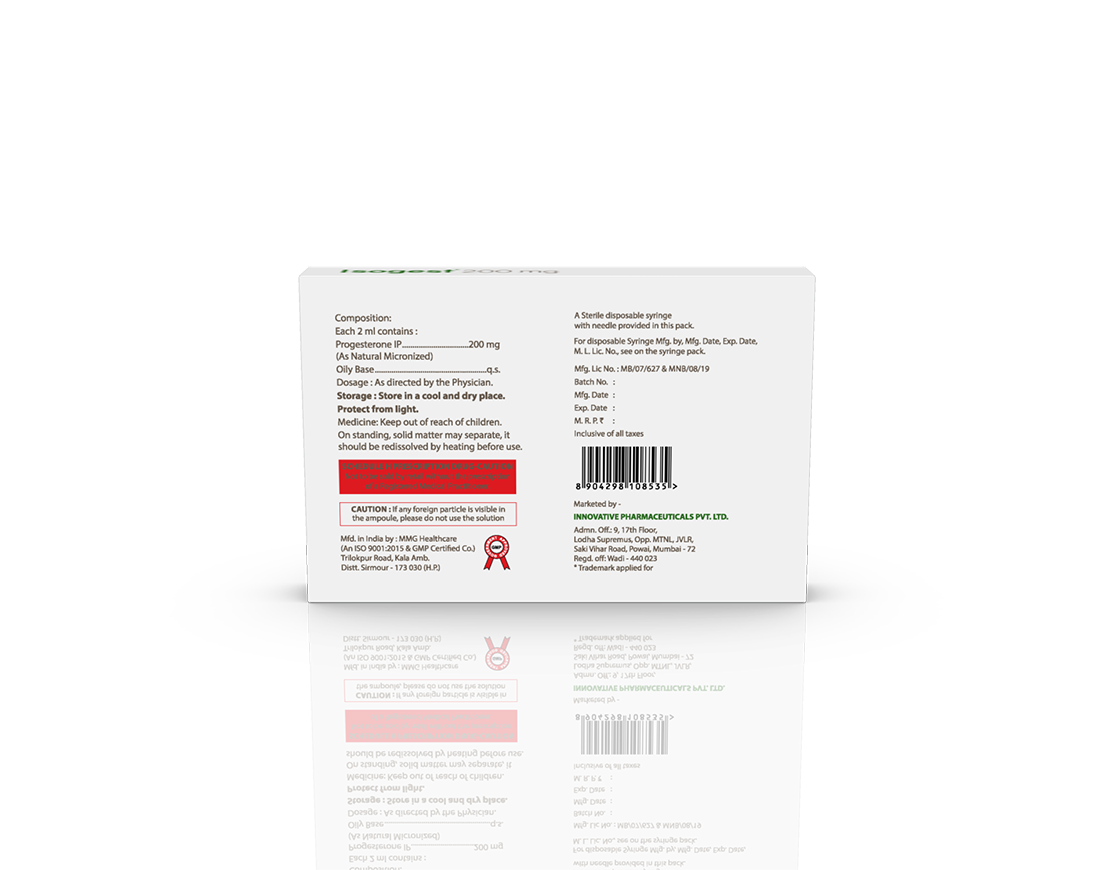 Isogest 200 mg Injection Progesterone (Natural Micronised) 200 mg / 2 ml Pack : 2 ml Clear Ring Ampoule with Syringe & 23 G Needle in Blister Pack with Mono Carton Enquiry Categories: Gynaec Care, Injectable Care, Pharma, Specialities Tag: Pharma Description Additional information Description Isogest 200 mg Injection Composition : Progesterone (Natural Micronised) 200 mg / 2 ml Therapeutic Segment : Hormones Packing : 2 ml Clear Ring Ampoule with Syringe & 23 G Needle in Blister Pack with Mono Carton Indications : DUB Recurrent Miscarriage Threatened & Recurrent Abortion Dosage : 100 to 200 mg twice weekly from day 15 until 8-16 weeks of pregnancy or as directed by Physician Product Enquiry Product Information Product DescriptionProgesterone (Natural Micronized) is used for hormone replacement therapy and female infertility. It is also used to restore menstruation in women with secondary amenorrhea (the absence of menstrual cycles). Benefits Luteal Phase Defects Preventing Pre-Term Birth Maintenance of Pregnancy Direction For Use Take this injection in the dose and duration as advised by your doctor. The dose you are given will depend on your condition and how you respond to the medicine. Mechanism of ActionProgesterone (Natural Micronized) is a progesterone (female hormone). It helps to establish and maintain pregnancy. It also prevents the increase in thickness of the endometrium (lining of the uterus) caused by estrogen. Also AvailableIsogest 100 mg Injection | Isogest 100 Softgels | Isogest 200 Softgels | Isogest 250 mg Injection | Isogest 500 mg Injection | Isogest-SR 200 mg Tablets | Isogest-SR 300 mg Tablets Additional information Dosage Form Injectable Therapeutic Segment Hormones ENQUIRY! Related Products Isogest-SR 200 mg Tablets Progesterone 200 mg (Natural Micronised) Sustained Release Tablets Pack : 1 x 10 Tablets Blister Pack in Mono Carton ENQUIRY! Enquiry Dydrogen 10 mg Tablets Dydrogesterone 10 mg Pack : 1 x 10 Tablets Blister Pack in Mono Carton ENQUIRY! Enquiry Regenor 5 mg Tablets Norethisterone 5 mg Pack: 1 x 10 Alu-Alu Pack ENQUIRY! Enquiry Isogest 200 Softgels Progesterone (Natural Micronised) 200 mg Pack : 1 x 10 Softgel Blister Pack in Mono Carton ENQUIRY! Enquiry Related products Aclopride-TH8 Tablets Aceclofenac 100 mg & Thiocolchicoside 8 mg Pack : 1 x 10 Alu-Alu Pack ENQUIRY! Enquiry Aclopride 100 mg DT Aceclofenac 100 mg DT Pack : 1 x 10 Tablets Alu-Alu Pack ENQUIRY! Enquiry Altum Suspension Albendazole 200 mg / 5 ml Pack : 10 ml Bottle in Mono Carton ENQUIRY! Enquiry Alrest 0.25 mg Tablets Clonazepam 0.25 mg Pack : 1 x 10 Blister Pack ENQUIRY! Enquiry
