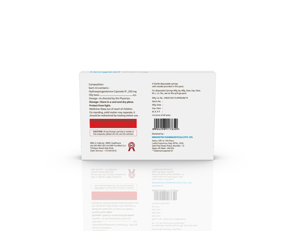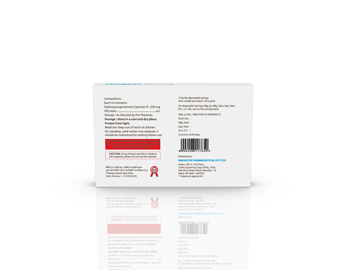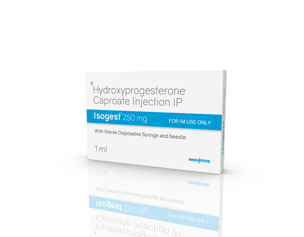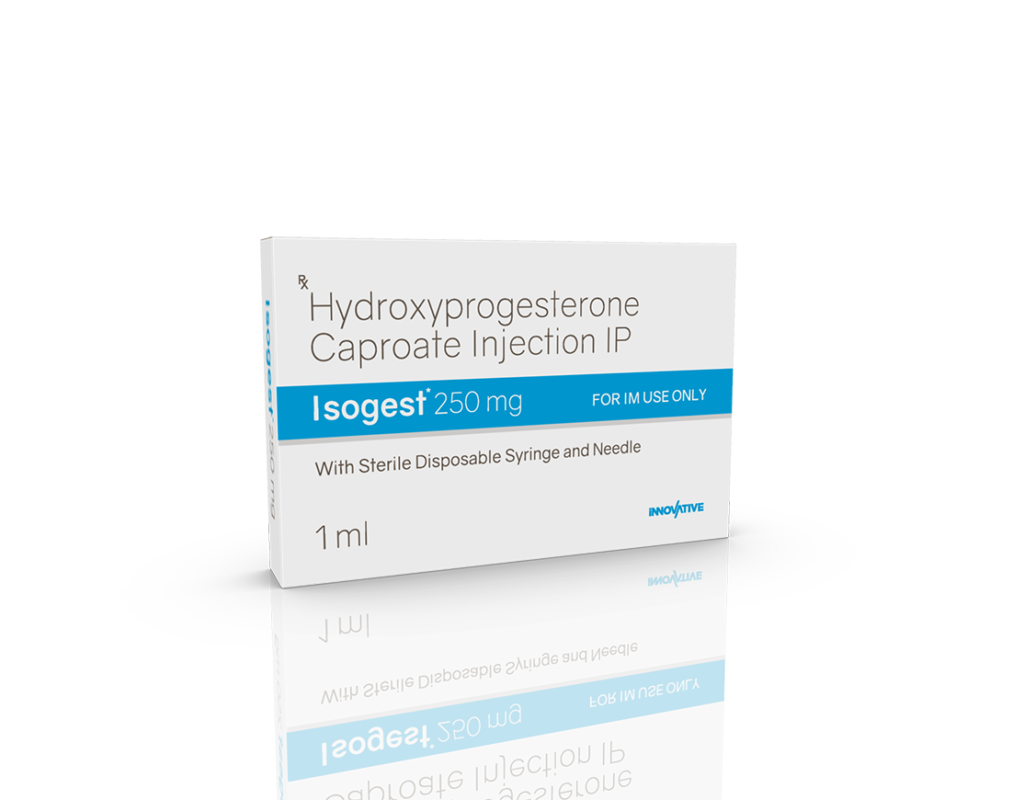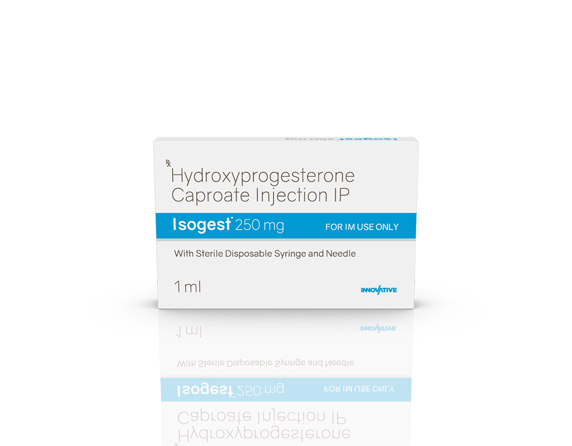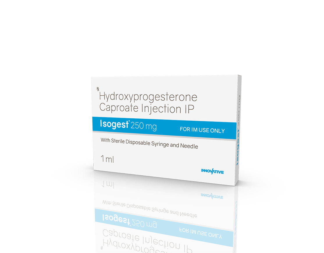 Isogest 250 mg Injection Hydroxyprogesterone Caproate 250 mg / 1 ml Pack : 1 ml Amber Ring Ampoule with Syringe in Blister Pack with Mono Carton Enquiry Categories: Gynaec Care, Injectable Care, Pharma, Specialities Tag: Pharma Description Additional information Description Isogest 250 mg Injection Composition : Hydroxyprogesterone Caproate 250 mg / 1 ml Therapeutic Segment : Hormones Packing : 1 ml Amber Ring Ampoule with Syringe in Blister Pack with Mono Carton Indications : DUB Recurrent Miscarriage Threatened & Recurrent Abortion Dosage : As directed by Physician Product Enquiry Product Information Product DescriptionIsogest 250 mg Injection is used to prevent premature labor in pregnant women in order to reduce the risk of giving birth too early (preterm birth). It prevents miscarriage and lowers the risk of premature birth in women who have had one premature delivery in the past. Benefits Luteal phase defects Preventing Pre-term birth Maintenance of pregnancy Direction For Use Take this injection in the dose and duration as advised by your doctor. The dose you are given will depend on your condition and how you respond to the medicine. Mechanism of ActionHydroxyprogesterone is a progestin (female hormone). Also AvailableIsogest 100 mg Injection | Isogest 100 Softgels | Isogest 200 mg Injection | Isogest 200 Softgels | Isogest 500 mg Injection | Isogest-SR 200 mg Tablets | Isogest-SR 300 mg Tablets Additional information Dosage Form Injectable Therapeutic Segment Hormones ENQUIRY! Related Products Regenor 10 mg Tablets Regenor 10 mg Tablets Pack: 1 x 10 (Blister) Pack ENQUIRY! Enquiry Isogest 200 mg Injection Progesterone (Natural Micronised) 200 mg / 2 ml Pack : 2 ml Clear Ring Ampoule with Syringe & 23 G Needle in Blister Pack with Mono Carton ENQUIRY! Enquiry Isogest-SR 300 mg Tablets Progesterone 300 mg (Natural Micronised) Sustained Release Tablets Pack : 1 x 10 Tablets Blister Pack in Mono Carton ENQUIRY! Enquiry Isogest 200 Softgels Progesterone (Natural Micronised) 200 mg Pack : 1 x 10 Softgel Blister Pack in Mono Carton ENQUIRY! Enquiry Related products Calcipime 500 mg Tablets Calcium Supplement with Vitamin D3 & Multiminerals Pack : 1 X 15 Tablets Blister Pack ENQUIRY! Enquiry Aclopride 100 mg DT Aceclofenac 100 mg DT Pack : 1 x 10 Tablets Alu-Alu Pack ENQUIRY! Enquiry Aclopride-TA Tablets Aceclofenac 100 mg, Tramadol 37.5 mg & Paracetamol 325 mg Pack : 1 x 10 Tablets Blister Pack ENQUIRY! Enquiry Aclopride-PT8 Tablets Aceclofenac 100 mg, Paracetamol 325 mg & Thiocolchicoside 8 mg Pack : 1 x 10 Tablets Alu-Alu Pack ENQUIRY! Enquiry