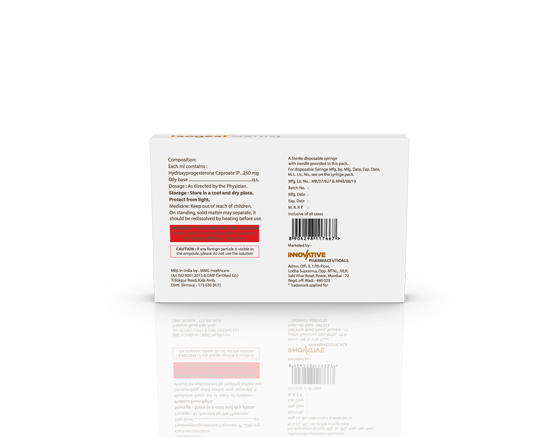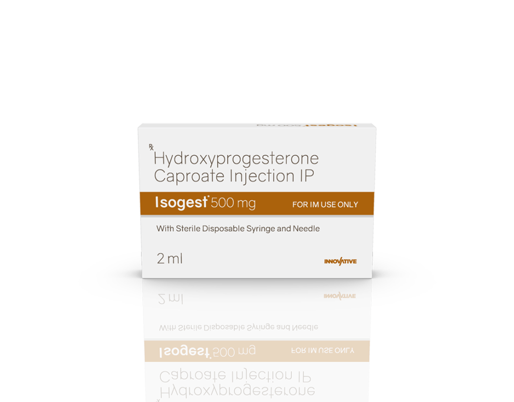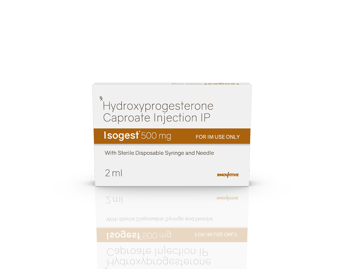 Isogest 500 mg Injection Hydroxyprogesterone Caproate 500 mg / 2 ml Pack : 2 ml Amber Ring Ampoule with Syringe & 23 G Needle in Blister Pack with Mono Carton Enquiry Categories: Gynaec Care, Injectable Care, Pharma, Specialities Tag: Pharma Description Additional information Description Isogest 500 mg Injection Composition : Hydroxyprogesterone Caproate 500 mg / 2 ml Therapeutic Segment : Hormones Packing : 2 ml Clear Ring Ampoule with Syringe & 23 G Needle in Blister Pack with Mono Carton Indications : DUB Recurrent Miscarriage Threatened & Recurrent Abortion Dosage : 100 to 200 mg twice weekly from day 15 until 8-16 weeks of pregnancy or as directed by Physician Product Enquiry Product Information Product DescriptionIsogest 500 mg Injection is used to prevent premature labor in pregnant women in order to reduce the risk of giving birth too early (preterm birth). It prevents miscarriage and lowers the risk of premature birth in women who have had one premature delivery in the past. Benefits Luteal phase defects Preventing Pre-term birth Maintenance of pregnancy Direction For Use Take this injection in the dose and duration as advised by your doctor. The dose you are given will depend on your condition and how you respond to the medicine. Mechanism of ActionHydroxyprogesterone is a progestin (female hormone). Also AvailableIsogest 100 mg Injection | Isogest 100 Softgels | Isogest 200 mg Injection | Isogest 200 Softgels | Isogest 250 mg Injection | Isogest-SR 200 mg Tablets | Isogest-SR 300 mg Tablets Additional information Dosage Form Injectable Therapeutic Segment Hormones ENQUIRY! Related Products Isogest-SR 300 mg Tablets Progesterone 300 mg (Natural Micronised) Sustained Release Tablets Pack : 1 x 10 Tablets Blister Pack in Mono Carton ENQUIRY! Enquiry Isogest 250 mg Injection Hydroxyprogesterone Caproate 250 mg / 1 ml Pack : 1 ml Amber Ring Ampoule with Syringe in Blister Pack with Mono Carton ENQUIRY! Enquiry Gravizac 5 mg Tablets Allylestrenol 5 mg Pack : 1 x 10 Tablets Alu-Alu Pack ENQUIRY! Enquiry Regenor 10 mg Tablets Regenor 10 mg Tablets Pack: 1 x 10 (Blister) Pack ENQUIRY! Enquiry Related products Altum Plus Tablet Albendazole 400 mg & Ivermectin 6 mg Tablet Pack : 1 x 10 Blister Pack in Mono Carton ENQUIRY! Enquiry Aclopride-PT8 Tablets Aceclofenac 100 mg, Paracetamol 325 mg & Thiocolchicoside 8 mg Pack : 1 x 10 Tablets Alu-Alu Pack ENQUIRY! Enquiry Ambroloc 30 mg Tablets Ambroxol 30 mg Pack : 1 x 10 Blister Pack ENQUIRY! Enquiry Calcipime 500 mg Tablets Calcium Supplement with Vitamin D3 & Multiminerals Pack : 1 X 15 Tablets Blister Pack ENQUIRY! Enquiry