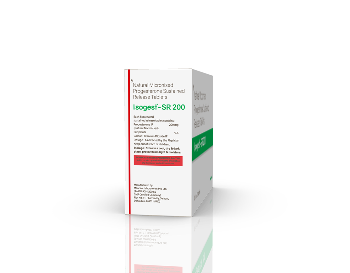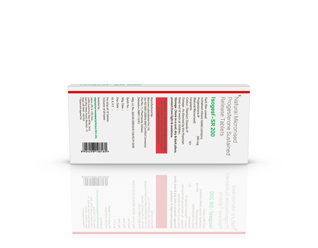 Isogest-SR 200 mg Tablets Progesterone 200 mg (Natural Micronised) Sustained Release Tablets Pack : 1 x 10 Tablets Blister Pack in Mono Carton Enquiry Categories: Gynaec Care, Pharma, Specialities Tag: Pharma Description Additional information Description Isogest-SR 200 mg Tablets Composition : Progesterone 200 mg (Natural Micronised) Sustained Release Tablets Therapeutic Segment : Hormones Packing : 1 x 10 Tablets (Blister Pack) in Mono Carton Indications : DUB Recurrent Miscarriage Threatened & Recurrent Abortion Dosage : 1 Tablet daily at bed time or as directed by Physician Product Enquiry Product Information Product DescriptionIsogest-SR 200 mg Tablets is a natural female sex hormone, progesterone. It is used to treat menstrual and pregnancy-related issues that are caused due to hormonal imbalance. Benefits Luteal phase defects Preventing Pre-term birth Maintenance of pregnancy Direction For Use Take this medicine in the dose and duration as advised by your doctor. Swallow it as a whole. Do not chew, crush or break it. Mechanism of ActionProgesterone (Natural Micronized) is a progesterone (female hormone). It helps to establish and maintain pregnancy. It also prevents the increase in thickness of the endometrium (lining of the uterus) caused by estrogen. Also AvailableIsogest 100 mg Injection | Isogest 100 Softgels | Isogest 200 mg Injection | Isogest 200 Softgels | Isogest 250 mg Injection | Isogest 500 mg Injection | Isogest-SR 300 mg Tablets Additional information Dosage Form Tablets Therapeutic Segment Hormones ENQUIRY! Related Products Isogest 100 Softgels Progesterone (Natural Micronised) 100 mg Pack : 1 x 10 Softgel Blister Pack in Mono Carton ENQUIRY! Enquiry Isogest 200 Softgels Progesterone (Natural Micronised) 200 mg Pack : 1 x 10 Softgel Blister Pack in Mono Carton ENQUIRY! Enquiry Geoprate 10 mg Tablets Medroxyprogesterone 10 mg Pack : 1 x 10 Tablets Alu-Alu Pack ENQUIRY! Enquiry Isogest-SR 300 mg Tablets Progesterone 300 mg (Natural Micronised) Sustained Release Tablets Pack : 1 x 10 Tablets Blister Pack in Mono Carton ENQUIRY! Enquiry Related products Aclopride-P Tablets (Blister) Aceclofenac 100 mg & Paracetamol 325 mg Pack : 1 x 10 Tablets Blister Pack ENQUIRY! Enquiry Alconix 500 mg Tablets Disulfiram 500 mg Pack : 1 x 4 Blister in Mono Carton ENQUIRY! Enquiry Acetazone 250 mg Tablets Acetazolamide 250 mg Pack : 1 x 10 Blister Pack ENQUIRY! Enquiry Alfumac-D Tablets Alfuzosin 10 mg & Dutasteride 0.5 mg Pack : 1 x 10 Alu-Alu Pack ENQUIRY! Enquiry