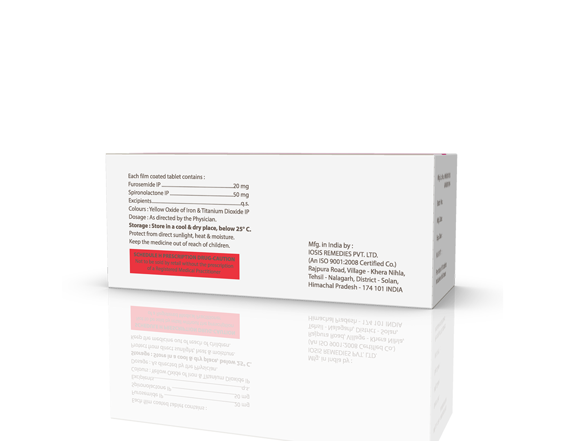 Lasiwin-S 20 | 50 Tablets Furosemide 20 mg & Spironolactone 50 mg Pack : 1 x 10 Tablets Alu-Alu Pack Enquiry Categories: Derma Care, Pharma, Specialities Tag: Pharma Description Additional information Description Lasiwin-S 20 | 50 Tablets Composition : Furosemide 20 mg & Spironolactone 50 mg Therapeutic Segment : Diuretic Packing : 1 x 10 Tablets (Alu-Alu Pack) Indications : Hypertension Pulmonary oedema Oliguria in acute or chronic renal failure Dosage : 1 Tablets twice daily after meals or as directed by Physician Product Enquiry Product Information Product DescriptionFurosemide + Spironolactone is used for Edema. It treats edema (fluid overload) associated with heart, liver, kidney, or lung disease. Benefits Congestive heart failure Hepatic cirrhosis Nephrotic syndrome Direction For Use Take this medicine in the dose and duration as advised by your doctor. Swallow it as a whole. Do not chew, crush or break it. Mechanism of ActionFurosemide is a diuretic which removes extra water and certain electrolytes from the body through urine. Over time, it also reduces blood pressure and enables heart to pump efficiently. Spironolactone is also a diuretic which conserves potassium, thereby balancing its levels in the body. Also AvailableLasiwin 40 mg Tablets | Lasiwin Injection | Lasiwin-S 20 | 25 Tablets Additional information Dosage Form Tablets Therapeutic Segment Diuretic ENQUIRY! Related Products Torzest Plus Tablets Torsemide 10 mg & Spironolactone 50 mg Pack : 1 x 10 Tablets Alu-Alu Pack ENQUIRY! Enquiry Lasiwin-S 40 | 25 Tablets Furosemide 40 mg & Spironolactone 25 mg Pack : 1 x 10 Tablets Alu-Alu Pack ENQUIRY! Enquiry Chlorzen 6.25 mg Tablets Chlorthalidone 6.25 mg Pack : 1 x 10 Tablets Alu-Alu Pack ENQUIRY! Enquiry Lasiwin Injection Furosemide 40 mg / 2 ml Pack : 2 ml Amber Ring Ampoule in Blister Pack 5 x 2 ml & Outer Carton of 10 x 5 x 2 ml ENQUIRY! Enquiry Related products Alconix 500 mg Tablets Disulfiram 500 mg Pack : 1 x 4 Blister in Mono Carton ENQUIRY! Enquiry Aclopride-P Tablets (Blister) Aceclofenac 100 mg & Paracetamol 325 mg Pack : 1 x 10 Tablets Blister Pack ENQUIRY! Enquiry Aclopride Gel Aceclofenac, Linseed Oil, Methyl Salicylate, Menthol & Capsaicin Pack : 30 g Lami Tube In Mono Carton ENQUIRY! Enquiry Alrest 0.25 mg Tablets Clonazepam 0.25 mg Pack : 1 x 10 Blister Pack ENQUIRY! Enquiry