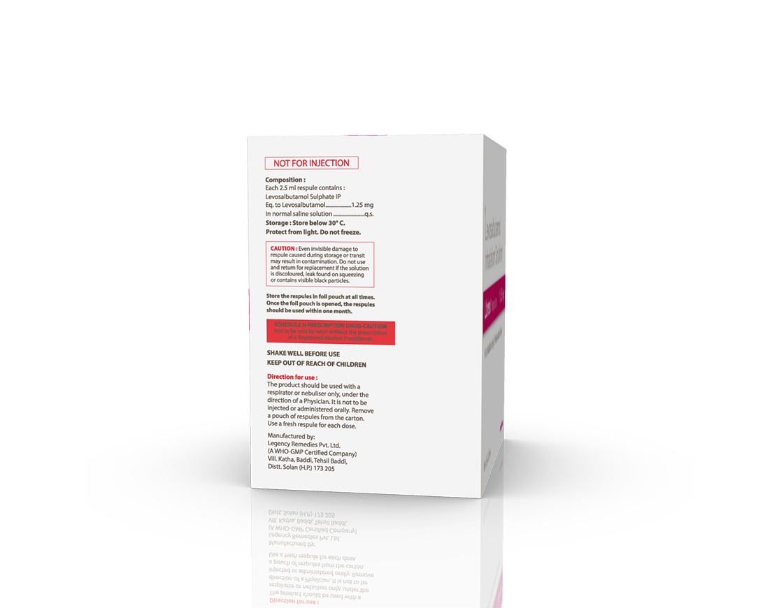 Lbrex Respules Levosalbutamol Sulphate 1.25 mg / 2.5 ml Respirator Solution Pack : 2.5 ml Respule Enquiry Categories: Paediatric Care, Pharma, Physician, Specialities Tag: Pharma Description Additional information Description Lbrex Respules Composition : Levosalbutamol Sulphate 1.25 mg / 2.5 ml Respirator Solution Therapeutic Segment : Anticholinergic | Bronchodilator Packing : 2.5 ml Respule Indications : To Treat Bronchospasm Symptoms of Asthma Chronic Obstructive Pulmonary Disease (COPD) Coughing Wheezing Shortness of Breath Dosage : As directed by Physician Also Available Lbrex-0.31 mg Respules | Lbrex-0.63 mg Respules Additional information Dosage Form Respules Therapeutic Segment Anticholinergic, Bronchodilators ENQUIRY! Related Products Ipramac Respules Ipratropium Bromide 500 mcg / 2 ml Pack : 2 ml Respule ENQUIRY! Enquiry Lbrex-0.31 mg Respules Levosalbutamol 0.31 mg / 2.5 ml Respirator Solution Pack : 2.5 ml Respule ENQUIRY! Enquiry Duomac-LD Respules Ipratropium Bromide 500 mcg & Levosalbutamol 0.63 mg / 2.5 ml Pack : 2.5 ml Respule ENQUIRY! Enquiry Cyclovision Eye Drops Cyclopentolate Hydrochloride 1% w/v Pack : 5 ml HDPE Bottle in Tray with Flap Cover in Mono Carton ENQUIRY! Enquiry Related products Ambroloc 30 mg Tablets Ambroxol 30 mg Pack : 1 x 10 Blister Pack ENQUIRY! Enquiry Alfumac-D Tablets Alfuzosin 10 mg & Dutasteride 0.5 mg Pack : 1 x 10 Alu-Alu Pack ENQUIRY! Enquiry Aclopride-MR Tablets (Blister) Aceclofenac 100 mg, Paracetamol 325 mg & Chlorzoxazone 250 mg Pack : 1 x 10 Tablets Blister Pack ENQUIRY! Enquiry Aclopride-D Tablets Aceclofenac 100 mg & Drotaverine 80 mg Pack : 1 x 10 Tablets Blister Pack ENQUIRY! Enquiry
