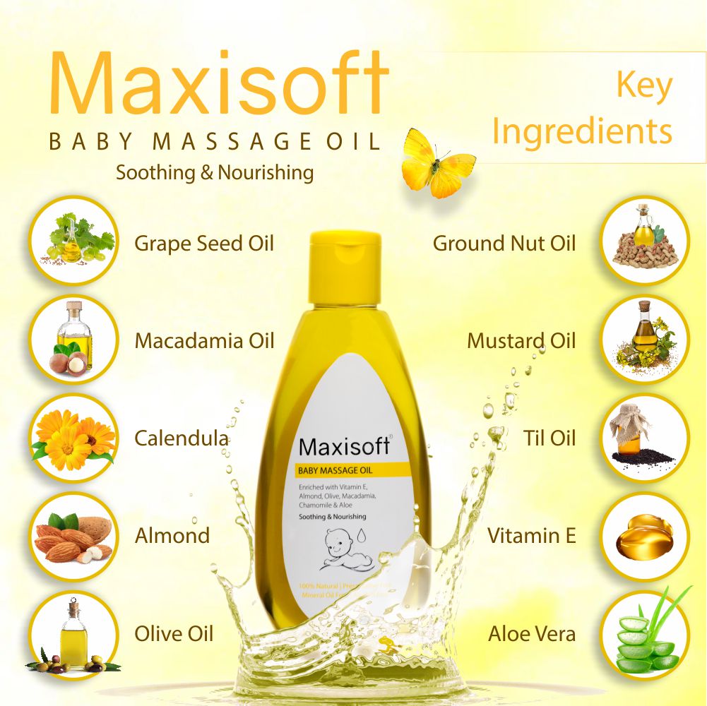 Maxisoft Baby Massage Oil Enquiry Categories: Baby Care, Cosmetics Description Additional information Description Maxisoft Baby Massage OilPampers, Soothes, Nourishes Therapeutic Segment : Baby Care Packing : 100 ml transparent pet bottle (Almond Shape) with 20 mm fliptop cap in mono carton Enriched with Almond Oil, Aloe Vera, Calendula Oil, Macadamia Oil, Olive Oil, Til Oil, Vitamin E, Mustard Oil, Grape Seed Oil & Ground Nut Oil Preservative Free | Mineral Oil Free | Alcohol Free | Paraben Free | SLS/SLES Free | Silicone Free DescriptionKey IngredientsBenefitsDirections for UseDescriptionBabies find a gentle massage very relaxing and even therapeutic. That’s because out of the five senses, touch is one of the most developed at birth, and there’s research to suggest that infant massage has enormous benefits for helping babies grow and thrive. Massage can get the newborn to sleep better, improve their health, and even help you bond with them. Studies have shown that massaging an infant can reduce crying and fussiness, help sleep more peacefully, and alleviate common wail-inducers like constipation and colic. It even boosts a baby’s ability to fight off germs. Maxisoft Baby Massage Oil is infused with a unique blend of more than 10 precious oils that nourishes the baby’s tender skin. This unique toxin free combination helps lock-in the natural moisture in the skin and protect your baby’s delicate skin from the external environment. Maxisoft Baby Massage Oil gets quickly absorbed into the skin leaving it soft and supple and delicately fragranced. It is non-sticky and spreads easily while massaging. This oil protects from rashes and other breakouts & regular massage with this oil helps strengthen bones and muscles. Key Ingredients Grape Seed Oil Macadamia Oil Calendula Mustard OilBenefits Penetrates deep into the skin providing all day moisture Protects from rashes & other breakouts Smoothens chapped & rough skin Keeps skin velvety soft & glowing Improves quality of baby’s sleep Directions for Use Pour a small amount of oil in your hands, rub and warm it up a little Apply it gently on your baby’s body Apply as needed Additional information Therapeutic Segment Baby Care Product Type Baby Massage Oil ENQUIRY! Related Products Clarithral 250 mg Tablets Clarithromycin 250 mg Pack : 1 x 10 Tablets Blister Pack in Mono Carton ENQUIRY! Enquiry Norzest Injection Noradrenaline Bitartrate 4 mg / 2 ml Pack : 2 ml Amber Ring Ampoule in Tray 2 x 2 ml with Outer Carton ENQUIRY! Enquiry Maxisoft Sensitive Toothpaste 100 gm ENQUIRY! Enquiry Tears-Rise 0.5% Eye Drops Carboxymethylcellulose 0.5% w/v Pack : 10 ml HDPE Bottle in Tray with Flap Cover in Mono Carton ENQUIRY! Enquiry Related products Globright Sunscreen Lotion (SPF 75) ENQUIRY! Enquiry Fairdew Fairness Cream For Men ENQUIRY! Enquiry Fairdew Fairness Cream For Women ENQUIRY! Enquiry Globright Sunscreen Lotion (SPF 50) ENQUIRY! Enquiry