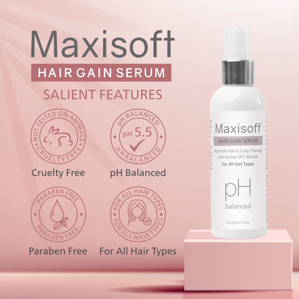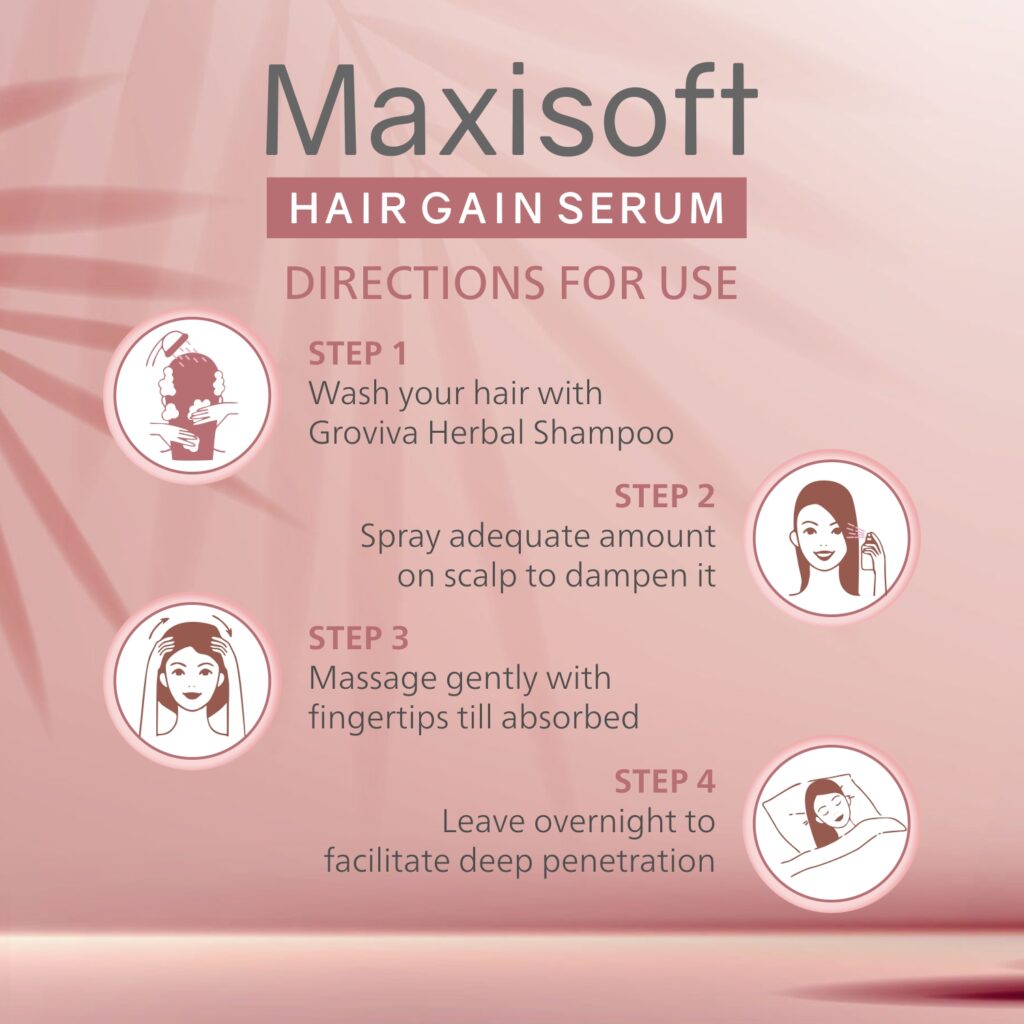 Maxisoft Hair Gain Serum Enquiry Categories: Cosmetics, Hair Care Description Additional information Description Maxisoft Hair Gain SerumIntensive Hair & Scalp Therapy with Active DHT Blocker Therapeutic Segment : Hair Care Packing : 100 ml milky white pet bottle with mist pump, Golden sleeve & transparent over cap in mono carton Enriched with Rosemary, Caffeine, 12 other botanical actives & essential oils pH Balanced | Paraben Free DescriptionKey IngredientsBenefitsDirections for UseDescriptionMaxisoft Hair Gain Serum is an intense hair & scalp therapy that promotes hair growth and prevents hair loss. This powerful blend of natural ingredients nourishes your hair from root to tip. Its unique formula features Hydrolyzed Keratin, Hydrolyzed Soy Protein, Caffeine among other nutritional ingredients and is highly effective in accelerating hair growth. Maxisoft Hair Gain Serum penetrates deep into the roots to revitalize hair from within, balancing scalp oils and strengthening roots for healthier and voluminous hair. It also reduces split ends and provides luster to hair. Its long-lasting formula works throughout the day for maximum effect and protects your hair from external pollutants. Perfect as a pre-styling primer or a heat protector, Maxisoft Hair Gain serum will help bring life back to dull hair making them soft, shiny and bouncy like never before. Key Ingredients Rosemerry Apple Tea Tree CaffeineBenefits Stimulating hair follicles Repairing hair damage & split ends Hair strengthening Providing deep conditioning Nourishing hair roots and scalp Volumizing hair Improving lustre & texture of hair Directions for Use Wash your hair thoroughly with Maxisoft Herbal Shampoo Ensure hair & scalp are dry before its application Spray enough directly on the scalp to dampen it Massage gently into the scalp with fingertips till it is absorbed Leave on for couples of hours or overnight to facilitate penetration of the active ingredients into the scalp before washing the hair Wash hands thoroughly after its application Apply daily for up to 3 months for visible results Additional information Therapeutic Segment Hair Care Product Type Serum ENQUIRY! Related Products Flucozest Gel Fluconazole 0.5% w/w Pack : 15 g Lami Tube in Mono Carton ENQUIRY! Enquiry Glycirest-M 80 Tablets Gliclazide 80 mg & Metformin 500 mg Tablets Pack : 1 x 10 Tablets Blister Pack ENQUIRY! Enquiry Baclosure 20 mg Tablets Baclofen 20 mg Pack : 1 x 10 (Alu-Alu) ENQUIRY! Enquiry Cetrasoft Plus Lotion White Soft Paraffin, Liquid Paraffin, Aloe Vera, Stearic Acid, Light Liquid Paraffin, Cetyl Alcohol, Glycerine Pack : 100 ml Bottle in mono carton ENQUIRY! Enquiry Related products Globright Sunscreen Lotion (SPF 75) ENQUIRY! Enquiry Bester Herbal Shampoo 100 ml ENQUIRY! Enquiry Lactozest Calamine Lotion ENQUIRY! Enquiry Bester Herbal Shampoo 300 ml ENQUIRY! Enquiry