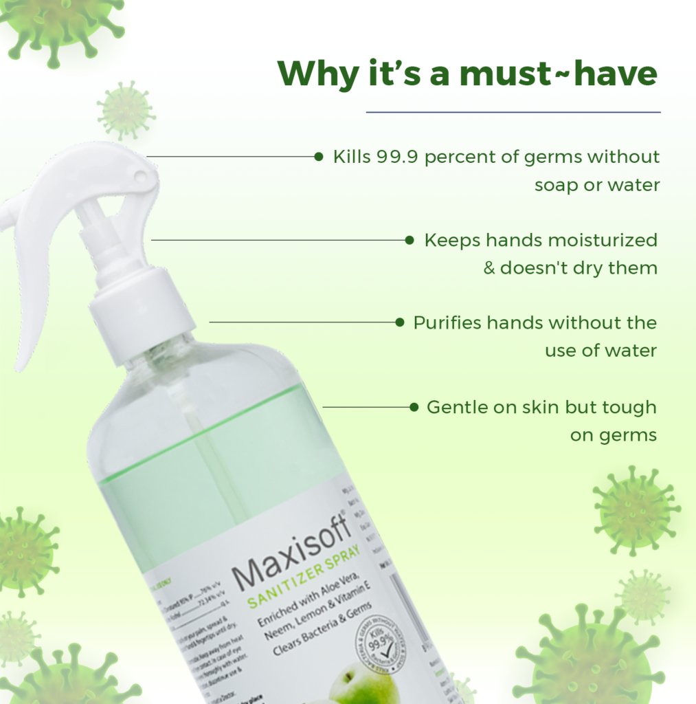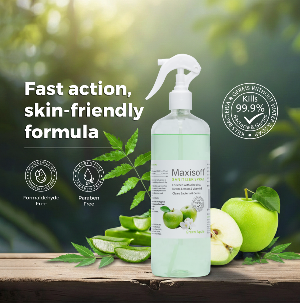 Maxisoft Hand Sanitizer (Spray) Green Apple 500 ml Enquiry Categories: Body Care, Cosmetics, Pharma Description Additional information Description Maxisoft Hand Sanitizer (Spray) Green Apple 500 mlRefreshing Fruity Aroma – Keep Hands Clean & Germ Free Therapeutic Segment : Hand Sanitizer Packing : 500 ml transparent pet bottle with spray pump Enriched with Aloe Vera, Tulsi, Neem & Vitamin E Kills 99.9% Germs | Paraben Free | Formaldehyde Free DescriptionKey IngredientsBenefitsDirections for UseDescriptionIf there’s one thing we appreciate now more than ever is a good old fashioned hand washing. While we’d love to keep hands germ-free 24/7, sinks aren’t exactly portable – the next best thing is a quality hand sanitizer. The Center for Disease Control and Prevention (CDC) advises that if soap and water are not available, use an alcohol-based hand sanitizer that contains at least 60% alcohol. That means while out and about, an alcohol-based sanitizer is your best alternative for fending off a variety of harmful microbes. Say no to harmful germs & viruses with Pearldew Hand Sanitizer. It comes with the fruity scent of blueberries, that will refresh your mood instantly. It makes hand hygiene portable. You can carry it in your car or bag to keep harmful germs & viruses at bay. Maxisoft Hand Sanitizer is sure shot solution to kill harmful germs & bacterias. It’s just the perfect protection on-the-go without soap & water. Formulated with skin conditioning emollients, Maxisoft Hand Sanitizer is designed to be used multiple times without drying your hands. It comes up with standardized gentle formula that does not dry out or irritate skin so your hands feel soft even after several use. It won’t leave a sticky or tacky residue, while effectively killing 99.9% germs. It prevents infections, and ensures total hand hygiene. It’s an ideal hygiene therapy for a more focused mindset on the work. Key Ingredients Green Apple Tulsi Vitamin E Neem ExtractBenefits SOAPLESS WASH : Cleans hand and kills 99.9 percent of germs without soap or water MOISTURIZED : Keeps hands moisturized & Dryness Free CLEAN & HYGIENIC : Purifies hands without the use of water and ensures total hand hygiene PLEASANT FRAGRANCE : gives hand a pleasant aroma which lingers around for hours TOXIN FREE : Paraben Free and Formaldehyde Free formula for safe, cleansing of your hands Directions for UseApply on your palm, spread & rub over back of hand & fingertips until dry Also Available Maxisoft Hand Sanitizer (Spray) Blueberry 120 ml | Maxisoft Hand Sanitizer (Spray) Blueberry 500 ml | Maxisoft Hand Sanitizer (Spray) Fruit Basket 120 ml | Maxisoft Hand Sanitizer (Spray) Fruit Basket 500 ml | Maxisoft Hand Sanitizer (Spray) Green Apple 120 ml | Maxisoft Hand Sanitizer (Spray) Japanese Cherry Blossom 120 ml | Maxisoft Hand Sanitizer (Spray) Japanese Cherry Blossom 500 ml | Maxisoft Hand Sanitizer (Spray) Refreshing Lemon & Mint 120 ml | Maxisoft Hand Sanitizer (Spray) Refreshing Lemon & Mint 500 ml | Maxisoft Hand Sanitizer (Spray) Refreshing Orange 120 ml | Maxisoft Hand Sanitizer (Spray) Refreshing Orange 500 ml | Maxisoft Hand Sanitizer (Spray) Sea Breeze 120 ml | Maxisoft Hand Sanitizer (Spray) Sea Breeze 500 ml Additional information Therapeutic Segment Health & Hygine Product Type Sanitizer Dosage Form Sanitizer Concern Anti Covid, Antibacterial, Health & Hygiene ENQUIRY! Related Products Broncolite-AZ Syrup Dextromethorphan 15 mg, Cetirizine 5 mg, Guaiphenesin 100 mg, Phenylephrine 8 mg, Ambroxol 30 mg & Sodium Citrate 75 mg / 5ml Pack : 100 ml Clear Bottle with Measuring Cap in Mono Carton ENQUIRY! Enquiry Calcipime-A Capsules ENQUIRY! Enquiry Glibedac-M 5 | 850 Tablets Glibenclamide 5 mg & Metformin 850 mg Pack : 1 x 10 Tablets Blister Pack ENQUIRY! Enquiry Scarclear Plus Ointment Calcipotriol 0.005% & Clobetasol Propionate 0.05% w/w Pack : 15 g Lami Tube in Mono Carton ENQUIRY! Enquiry Related products Dentopride Sensitive Toothpaste 100 gm ENQUIRY! Enquiry Globright Whitening Face Wash ENQUIRY! Enquiry Acnedew Soap (75 gm) ENQUIRY! Enquiry Maxisoft 3 Way Antibacterial Face Wash ENQUIRY! Enquiry