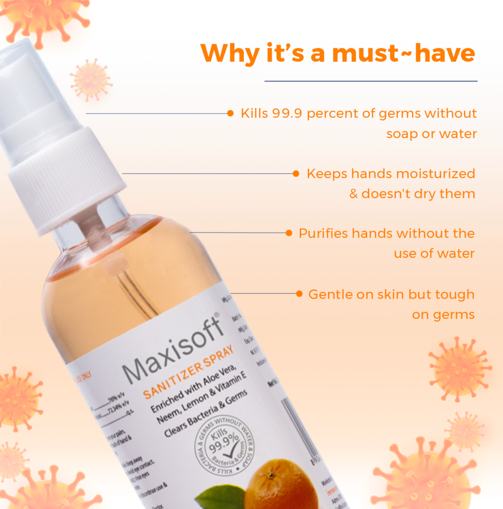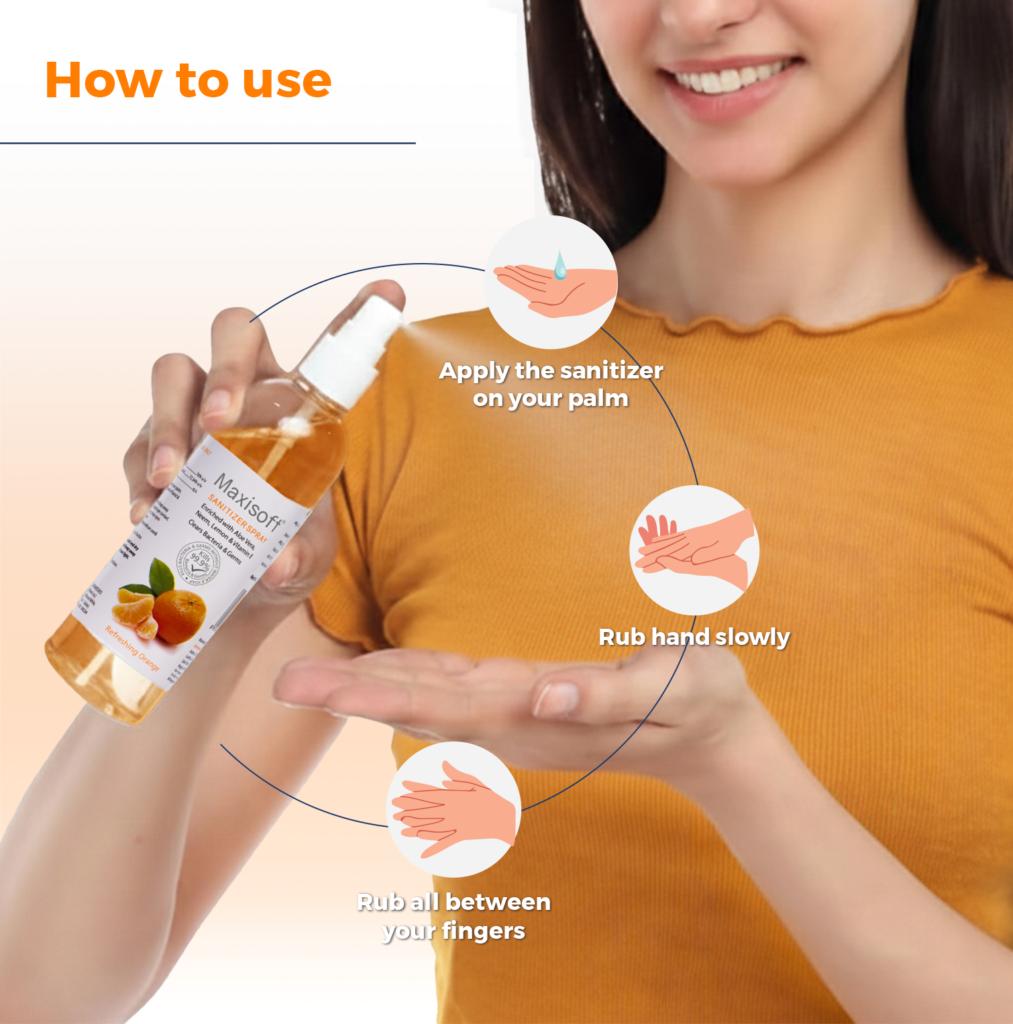 Maxisoft Hand Sanitizer (Spray) Refreshing Orange 120 ml Enquiry Categories: Body Care, Cosmetics, Pharma Description Additional information Description Maxisoft Hand Sanitizer (Spray) Refreshing Orange 120 mlRefreshing & Zesty – Keep Hands Clean & Germ Free Therapeutic Segment : Hand Sanitizer Packing : 120 ml transparent pet bottle with spray pump Enriched with Aloe Vera, Tulsi, Neem & Vitamin E Kills 99.9% Germs | Paraben Free | Formaldehyde Free DescriptionKey IngredientsBenefitsDirections for UseDescriptionIf there’s one thing we appreciate now more than ever is a good old fashioned hand washing. While we’d love to keep hands germ-free 24/7, sinks aren’t exactly portable – the next best thing is a quality hand sanitizer. The Center for Disease Control and Prevention (CDC) advises that if soap and water are not available, use an alcohol-based hand sanitizer that contains at least 60% alcohol. That means while out and about, an alcohol-based sanitizer is your best alternative for fending off a variety of harmful microbes. Say no to harmful germs & viruses with Pearldew Hand Sanitizer. It comes with the fruity scent of blueberries, that will refresh your mood instantly. It makes hand hygiene portable. You can carry it in your car or bag to keep harmful germs & viruses at bay. Maxisoft Hand Sanitizer is sure shot solution to kill harmful germs & bacterias. It’s just the perfect protection on-the-go without soap & water. Formulated with skin conditioning emollients, Maxisoft Hand Sanitizer is designed to be used multiple times without drying your hands. It comes up with standardized gentle formula that does not dry out or irritate skin so your hands feel soft even after several use. It won’t leave a sticky or tacky residue, while effectively killing 99.9% germs. It prevents infections, and ensures total hand hygiene. It’s an ideal hygiene therapy for a more focused mindset on the work. Key Ingredients Orange Mint Vitamin E Neem ExtractBenefits SOAPLESS WASH : Cleans hand and kills 99.9 percent of germs without soap or water MOISTURIZED : Keeps hands moisturized & Dryness Free CLEAN & HYGIENIC : Purifies hands without the use of water and ensures total hand hygiene PLEASANT FRAGRANCE : gives hand a pleasant aroma which lingers around for hours TOXIN FREE : Paraben Free and Formaldehyde Free formula for safe, cleansing of your hands Directions for UseApply on your palm, spread & rub over back of hand & fingertips until dry Also Available Maxisoft Hand Sanitizer (Spray) Blueberry 120 ml | Maxisoft Hand Sanitizer (Spray) Blueberry 500 ml | Maxisoft Hand Sanitizer (Spray) Fruit Basket 120 ml | Maxisoft Hand Sanitizer (Spray) Fruit Basket 500 ml | Maxisoft Hand Sanitizer (Spray) Green Apple 120 ml | Maxisoft Hand Sanitizer (Spray) Green Apple 500 ml | Maxisoft Hand Sanitizer (Spray) Japanese Cherry Blossom 120 ml | Maxisoft Hand Sanitizer (Spray) Japanese Cherry Blossom 500 ml | Maxisoft Hand Sanitizer (Spray) Refreshing Lemon & Mint 120 ml | Maxisoft Hand Sanitizer (Spray) Refreshing Lemon & Mint 500 ml | Maxisoft Hand Sanitizer (Spray) Refreshing Orange 500 ml | Maxisoft Hand Sanitizer (Spray) Sea Breeze 120 ml | Maxisoft Hand Sanitizer (Spray) Sea Breeze 500 ml Additional information Therapeutic Segment Health & Hygine Product Type Sanitizer Dosage Form Sanitizer Concern Anti Covid, Antibacterial, Health & Hygiene ENQUIRY! Related Products Nebimet 5 mg Tablets Nebivolol 5 mg Pack : 1 x 10 Tablets Alu-Alu Pack ENQUIRY! Enquiry Fenolet 160 mg Tablets Fenofibrate 160 mg Pack : 1 x 10 Tablets Alu-Alu Pack ENQUIRY! Enquiry Silotag 8 mg Capsules Silodosin 8 mg Pack : 1 x 10 Capsules Alu-Alu Pack ENQUIRY! Enquiry Acilet 1000 mg Tablets Sodium Bicarbonate 1000 mg Pack : 1 x 10 Blister Pack ENQUIRY! Enquiry Related products Bester Antidandruff Shampoo 300 ml ENQUIRY! Enquiry Medizest Bathing Bar ENQUIRY! Enquiry Globright Vitamin C Serum ENQUIRY! Enquiry Globright 3 way antibacterial Face Wash ENQUIRY! Enquiry