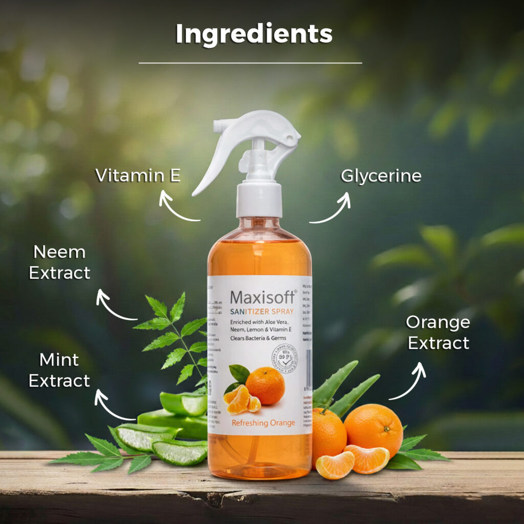 Maxisoft Hand Sanitizer (Spray) Refreshing Orange 500 ml Enquiry Categories: Body Care, Cosmetics, Pharma Description Additional information Description Maxisoft Hand Sanitizer (Spray) Refreshing Orange 500 mlRefreshing & Zesty – Keep Hands Clean & Germ Free Therapeutic Segment : Hand Sanitizer Packing : 500 ml transparent pet bottle with spray pump Enriched with Aloe Vera, Tulsi, Neem & Vitamin E Kills 99.9% Germs | Paraben Free | Formaldehyde Free DescriptionKey IngredientsBenefitsDirections for UseDescriptionIf there’s one thing we appreciate now more than ever is a good old fashioned hand washing. While we’d love to keep hands germ-free 24/7, sinks aren’t exactly portable – the next best thing is a quality hand sanitizer. The Center for Disease Control and Prevention (CDC) advises that if soap and water are not available, use an alcohol-based hand sanitizer that contains at least 60% alcohol. That means while out and about, an alcohol-based sanitizer is your best alternative for fending off a variety of harmful microbes. Say no to harmful germs & viruses with Pearldew Hand Sanitizer. It comes with the fruity scent of blueberries, that will refresh your mood instantly. It makes hand hygiene portable. You can carry it in your car or bag to keep harmful germs & viruses at bay. Maxisoft Hand Sanitizer is sure shot solution to kill harmful germs & bacterias. It’s just the perfect protection on-the-go without soap & water. Formulated with skin conditioning emollients, Maxisoft Hand Sanitizer is designed to be used multiple times without drying your hands. It comes up with standardized gentle formula that does not dry out or irritate skin so your hands feel soft even after several use. It won’t leave a sticky or tacky residue, while effectively killing 99.9% germs. It prevents infections, and ensures total hand hygiene. It’s an ideal hygiene therapy for a more focused mindset on the work. Key Ingredients Orange Tulsi Vitamin E Neem ExtractBenefits SOAPLESS WASH : Cleans hand and kills 99.9 percent of germs without soap or water MOISTURIZED : Keeps hands moisturized & Dryness Free CLEAN & HYGIENIC : Purifies hands without the use of water and ensures total hand hygiene PLEASANT FRAGRANCE : gives hand a pleasant aroma which lingers around for hours TOXIN FREE : Paraben Free and Formaldehyde Free formula for safe, cleansing of your hands Directions for UseApply on your palm, spread & rub over back of hand & fingertips until dry Also Available Maxisoft Hand Sanitizer (Spray) Blueberry 120 ml | Maxisoft Hand Sanitizer (Spray) Blueberry 500 ml | Maxisoft Hand Sanitizer (Spray) Fruit Basket 120 ml | Maxisoft Hand Sanitizer (Spray) Fruit Basket 500 ml | Maxisoft Hand Sanitizer (Spray) Green Apple 120 ml | Maxisoft Hand Sanitizer (Spray) Green Apple 500 ml | Maxisoft Hand Sanitizer (Spray) Japanese Cherry Blossom 120 ml | Maxisoft Hand Sanitizer (Spray) Japanese Cherry Blossom 500 ml | Maxisoft Hand Sanitizer (Spray) Refreshing Lemon & Mint 120 ml | Maxisoft Hand Sanitizer (Spray) Refreshing Lemon & Mint 500 ml | Maxisoft Hand Sanitizer (Spray) Refreshing Orange 120 ml | Maxisoft Hand Sanitizer (Spray) Sea Breeze 120 ml | Maxisoft Hand Sanitizer (Spray) Sea Breeze 500 ml Additional information Therapeutic Segment Health & Hygine Product Type Sanitizer Dosage Form Sanitizer Concern Anti Covid, Antibacterial, Health & Hygiene ENQUIRY! Related Products Broncolite-AZ Syrup Dextromethorphan 15 mg, Cetirizine 5 mg, Guaiphenesin 100 mg, Phenylephrine 8 mg, Ambroxol 30 mg & Sodium Citrate 75 mg / 5ml Pack : 100 ml Clear Bottle with Measuring Cap in Mono Carton ENQUIRY! Enquiry Calcipime-A Capsules ENQUIRY! Enquiry Glibedac-M 5 | 850 Tablets Glibenclamide 5 mg & Metformin 850 mg Pack : 1 x 10 Tablets Blister Pack ENQUIRY! Enquiry Scarclear Plus Ointment Calcipotriol 0.005% & Clobetasol Propionate 0.05% w/w Pack : 15 g Lami Tube in Mono Carton ENQUIRY! Enquiry Related products Bester Antidandruff Shampoo 100 ml ENQUIRY! Enquiry Globright Whitening Face Wash ENQUIRY! Enquiry Acnedew Antiacne & Antipimple Cream ENQUIRY! Enquiry Medizest Bathing Bar ENQUIRY! Enquiry