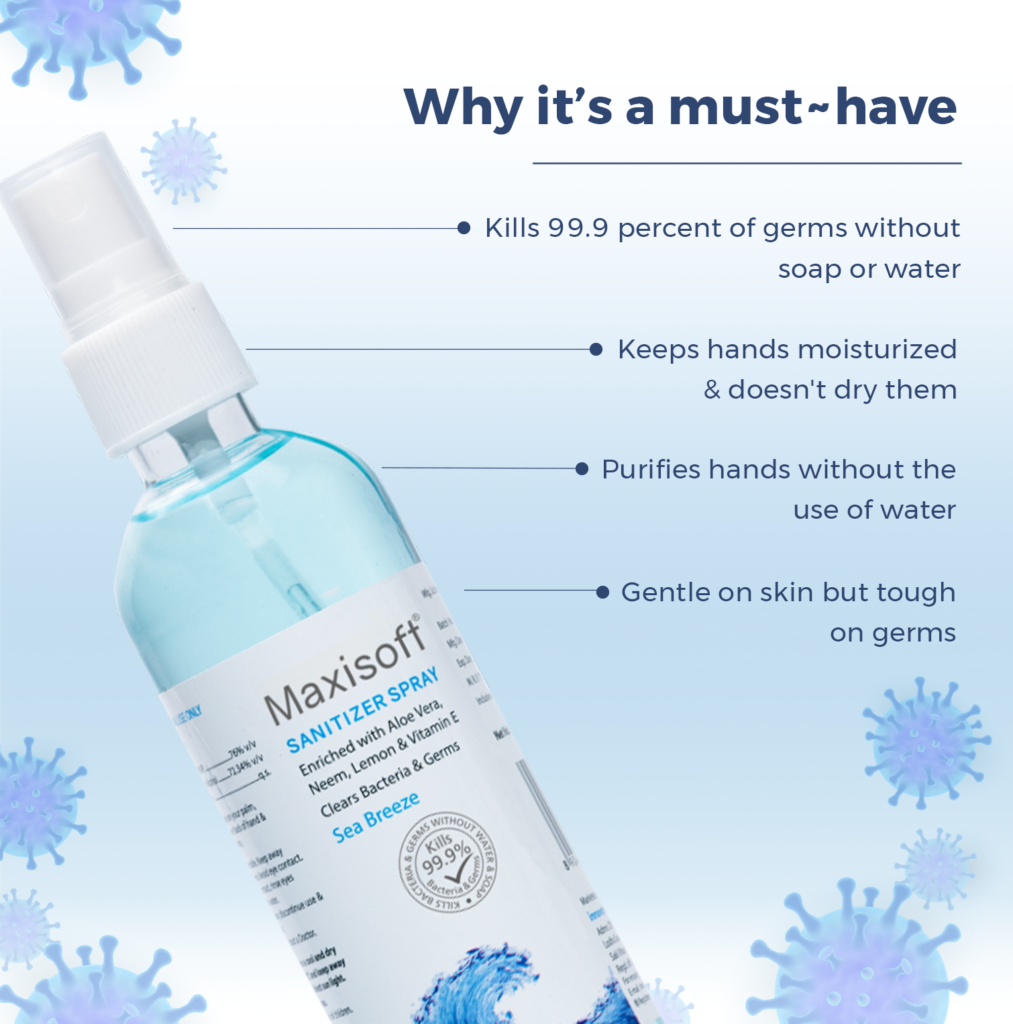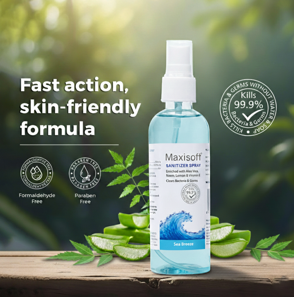 Maxisoft Hand Sanitizer (Spray) Sea Breeze 120 ml Enquiry Categories: Body Care, Cosmetics, Pharma Description Additional information Description Maxisoft Hand Sanitizer (Spray) Sea Breeze 120 mlInspired by Oceanic Notes – Keep Hands Clean & Germ Free Therapeutic Segment : Hand Sanitizer Packing : 120 ml transparent pet bottle with spray pump Enriched with Aloe Vera, Tulsi, Neem & Vitamin E Kills 99.9% Germs | Paraben Free | Formaldehyde Free DescriptionKey IngredientsBenefitsDirections for UseDescriptionIf there’s one thing we appreciate now more than ever is a good old fashioned hand washing. While we’d love to keep hands germ-free 24/7, sinks aren’t exactly portable – the next best thing is a quality hand sanitizer. The Center for Disease Control and Prevention (CDC) advises that if soap and water are not available, use an alcohol-based hand sanitizer that contains at least 60% alcohol. That means while out and about, an alcohol-based sanitizer is your best alternative for fending off a variety of harmful microbes. Say no to harmful germs & viruses with Pearldew Hand Sanitizer. It comes with the fruity scent of blueberries, that will refresh your mood instantly. It makes hand hygiene portable. You can carry it in your car or bag to keep harmful germs & viruses at bay. Maxisoft Hand Sanitizer is sure shot solution to kill harmful germs & bacterias. It’s just the perfect protection on-the-go without soap & water. Formulated with skin conditioning emollients, Maxisoft Hand Sanitizer is designed to be used multiple times without drying your hands. It comes up with standardized gentle formula that does not dry out or irritate skin so your hands feel soft even after several use. It won’t leave a sticky or tacky residue, while effectively killing 99.9% germs. It prevents infections, and ensures total hand hygiene. It’s an ideal hygiene therapy for a more focused mindset on the work. Key Ingredients Aloe Vera Extract Vitamin E Tulsi Neem ExtractBenefits SOAPLESS WASH : Cleans hand and kills 99.9 percent of germs without soap or water MOISTURIZED : Keeps hands moisturized & Dryness Free CLEAN & HYGIENIC : Purifies hands without the use of water and ensures total hand hygiene PLEASANT FRAGRANCE : gives hand a pleasant aroma which lingers around for hours TOXIN FREE : Paraben Free and Formaldehyde Free formula for safe, cleansing of your hands Directions for UseApply on your palm, spread & rub over back of hand & fingertips until dry Also Available Maxisoft Hand Sanitizer (Spray) Blueberry 120 ml | Maxisoft Hand Sanitizer (Spray) Blueberry 500 ml | Maxisoft Hand Sanitizer (Spray) Fruit Basket 120 ml | Maxisoft Hand Sanitizer (Spray) Fruit Basket 500 ml | Maxisoft Hand Sanitizer (Spray) Green Apple 120 ml | Maxisoft Hand Sanitizer (Spray) Green Apple 500 ml | Maxisoft Hand Sanitizer (Spray) Japanese Cherry Blossom 120 ml | Maxisoft Hand Sanitizer (Spray) Japanese Cherry Blossom 500 ml | Maxisoft Hand Sanitizer (Spray) Refreshing Lemon & Mint 120 ml | Maxisoft Hand Sanitizer (Spray) Refreshing Lemon & Mint 500 ml | Maxisoft Hand Sanitizer (Spray) Refreshing Orange 120 ml | Maxisoft Hand Sanitizer (Spray) Refreshing Orange 500 ml | Maxisoft Hand Sanitizer (Spray) Sea Breeze 500 ml Additional information Therapeutic Segment Health & Hygine Product Type Sanitizer Dosage Form Sanitizer Concern Anti Covid, Antibacterial, Health & Hygiene ENQUIRY! Related Products Broncolite-AZ Syrup Dextromethorphan 15 mg, Cetirizine 5 mg, Guaiphenesin 100 mg, Phenylephrine 8 mg, Ambroxol 30 mg & Sodium Citrate 75 mg / 5ml Pack : 100 ml Clear Bottle with Measuring Cap in Mono Carton ENQUIRY! Enquiry Calcipime-A Capsules ENQUIRY! Enquiry Glibedac-M 5 | 850 Tablets Glibenclamide 5 mg & Metformin 850 mg Pack : 1 x 10 Tablets Blister Pack ENQUIRY! Enquiry Scarclear Plus Ointment Calcipotriol 0.005% & Clobetasol Propionate 0.05% w/w Pack : 15 g Lami Tube in Mono Carton ENQUIRY! Enquiry Related products Globright Sunscreen Lotion (SPF 75) ENQUIRY! Enquiry Acnedew Soap (75 gm) ENQUIRY! Enquiry Globright Sunscreen Lotion (SPF 30) ENQUIRY! Enquiry Lactozest Calamine Lotion ENQUIRY! Enquiry