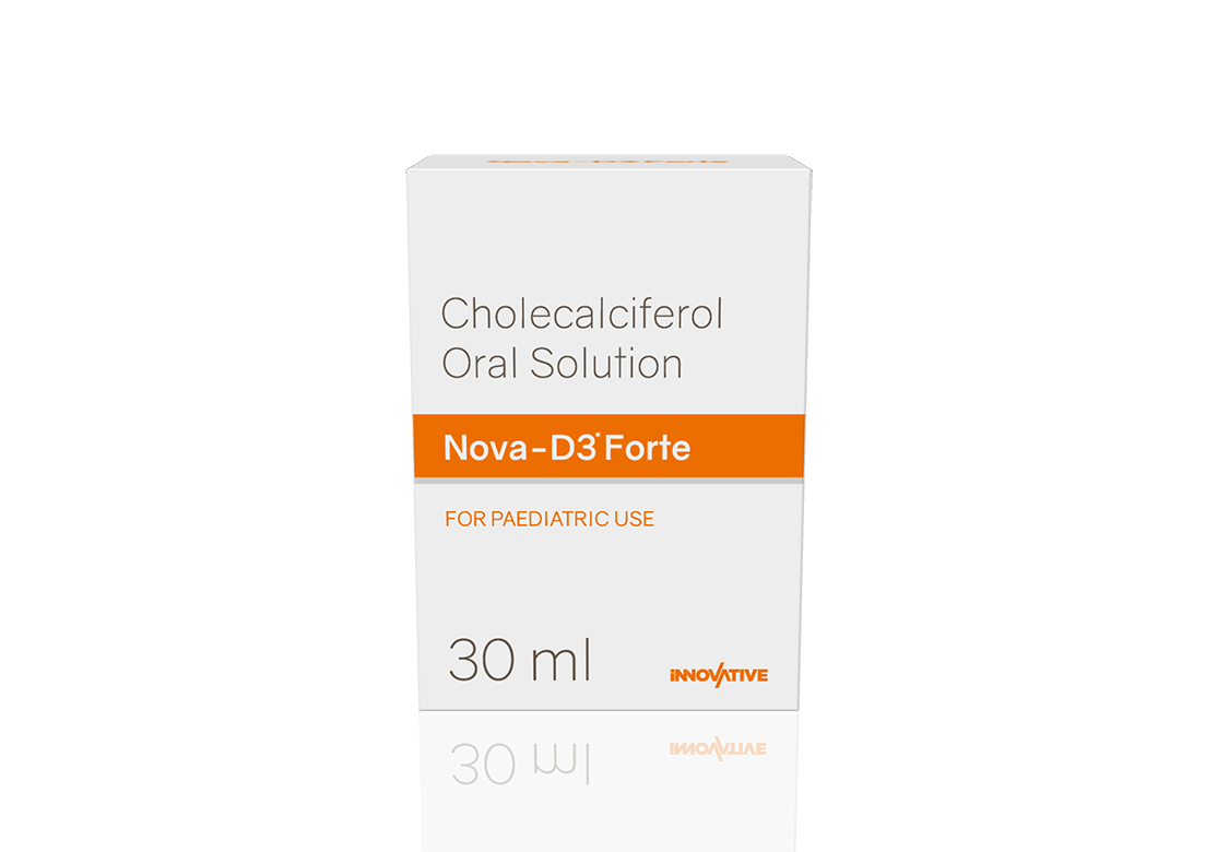 Nova-D3 800 IU Oral Drops 30 ml Vitamin D3 (Cholecalciferol) 800 IU / ml Pack : 30 ml Bottle with Dropper in Mono Carton Enquiry Categories: General Practitioner, Paediatric Care, Pharma, Specialities Tag: Pharma Description Additional information Description Nova-D3 800 IU Oral Drops 30 ml Composition: Vitamin D3 (Cholecalciferol) 800 IU / ml Therapeutic Segment: Multivitamins & Multiminerals Packing: 30 ml Bottle with Dropper in Mono Carton Indications : Vitamin D Deficiency Rickets & Hypocalcaemia Dosage : 0 to 12 months: 400 international units once daily, 1 to 18 years: 600 international units once daily or as directed by the Physician Product Enquiry Product Information Product DescriptionNova-D3 800 IU Oral Drops is a Vitamin that is used to regulate calcium and phosphate metabolism in children. This medicine is used to treat Vitamin D deficiency, and osteomalacia (softening or deforming of bones due to lack of calcium). Vitamin D deficiency occurs when your body has low Vitamin D levels and is caused due to inadequate nutrition, malabsorption, or lack of sunlight exposure. BenefitsFractures Direction For Use Shake the container well before each use. Measure the suggested dose of Nova-D3 800 IU Oral Drops and administer them to your child. It is advised to measure the quantity accurately with the help of a measuring cup syringe or dropper. Mechanism of ActionNova-D3 800 IU Oral Drops contains Vitamin-D3 (Cholecalciferol), a fat-soluble vitamin. It helps maintain blood calcium and phosphorus levels and the mineralization of bone Nova-D3 800 IU Oral Drops aids in calcium absorption enabling bone growth and repair. It further prevents cartilage degeneration. Nova-D3 800 IU Oral Drops is also used to maintain a healthy immune system. Also AvailableNova-D3 Forte Oral Drops | Nova-D3 Injection | Nova-D3 Max Softgels | Nova-D3 Oral Drops | Nova-D3 Sachet | Nova-D3 Softgels | Nova-D3 Tablets | Nova-D3 Forte Oral Drops 15 ml Additional information Dosage Form Oral Drops Therapeutic Segment Multivitamins & Multiminerals ENQUIRY! Related Products Nova-D3 Oral Drops Cholecalciferol 400 IU / ml Pack : 30 ml Bottle with Dropper in Mono Carton ENQUIRY! Enquiry Zinco-MN Syrup 300 ml (Nutra) Vitamins & Minerals Supplement with 10 Multivitamins, 8 Multiminerals, Calcium, Vitamin D3 & L-Lysine Pack : 300 ml Bottle with Measuring Cap in Mono Carton ENQUIRY! Enquiry Zinco-MN Syrup 200 ml Vitamins & Minerals Supplement with 10 Multivitamins, 8 Multiminerals, Calcium, Vitamin D3 & L-Lysine Pack : 100 ml Bottle in Mono Carton ENQUIRY! Enquiry Acu-Omega Softgels Multivitamins & Multiminerals Packing : 1 x 10 Softgel (Blister Pack) in Mono Carton ENQUIRY! Enquiry Related products Alrest 0.25 mg Tablets Clonazepam 0.25 mg Pack : 1 x 10 Blister Pack ENQUIRY! Enquiry Algra Plus Tablets Sildenafil Citrate 50 mg & Dapoxetine 30 mg Pack : 1 x 4 Blister Pack in Mono Carton ENQUIRY! Enquiry Aclopride-D Tablets Aceclofenac 100 mg & Drotaverine 80 mg Pack : 1 x 10 Tablets Blister Pack ENQUIRY! Enquiry Aclopride-PT Tablets Aceclofenac 100 mg, Paracetamol 325 mg & Thiocolchicoside 4 mg Pack : 1 x 10 Tablets Alu-Alu Pack ENQUIRY! Enquiry