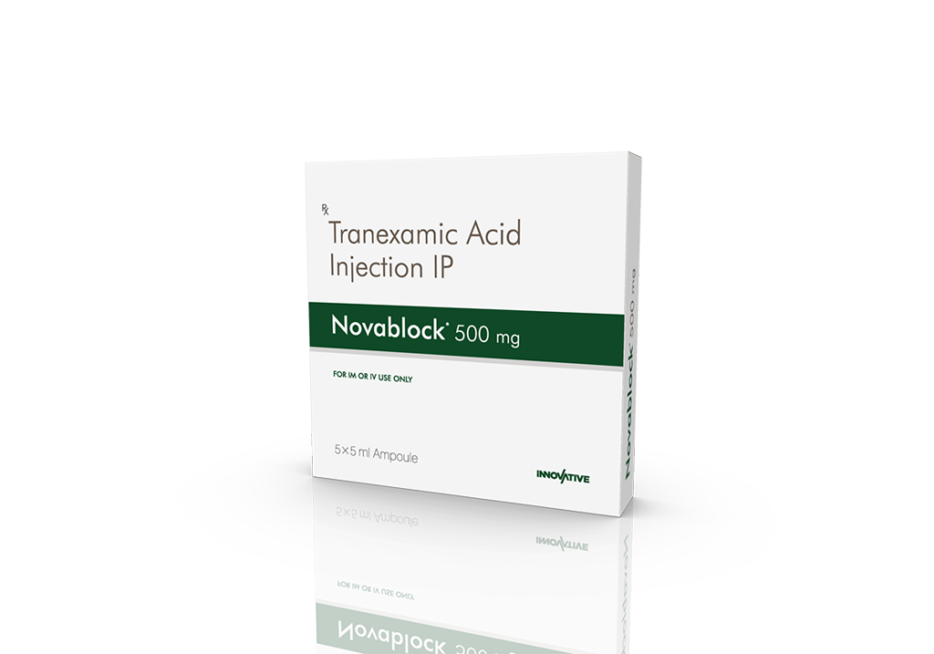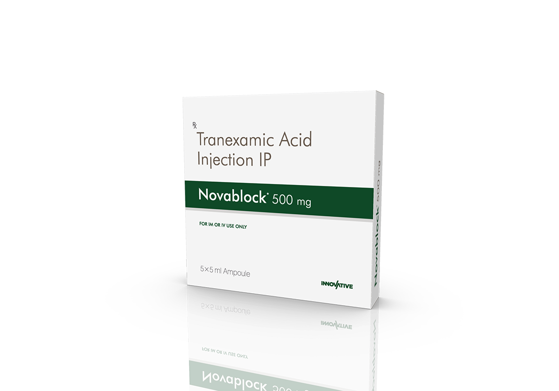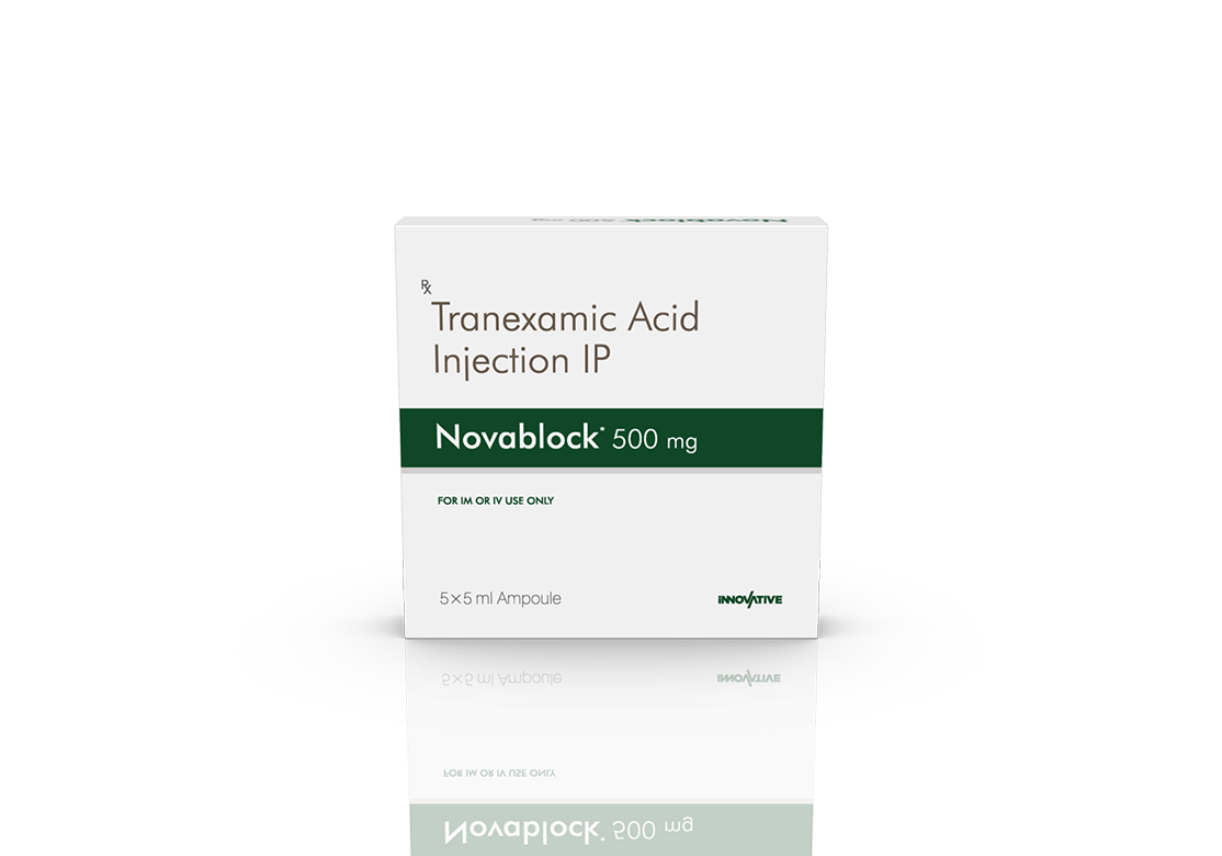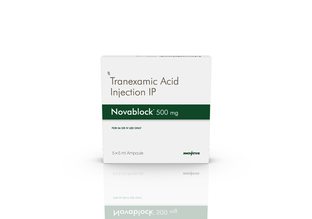 Novablock 500 mg Injection Tranexamic Acid 500 mg Pack : 5 ml Clear Ring Ampoule in Tray 5 x 5 ml with Outer Carton Enquiry Categories: Gynaec Care, Injectable Care, Pharma, Specialities, Surgical Care Tag: Pharma Description Additional information Description Novablock 500 mg Injection Composition : Tranexamic Acid 500 mg Therapeutic Segment : Haemostatics Packing : 5 ml Clear Ring Ampoule in Tray 5 x 5 ml with Outer Carton Indications : Menorrhagia DUB (Dysfunctional Uterine Bleeding) Threatened Abortion Habitual Abortion Dosage : 0.5-1 g or 10 mg/kg tid or 25-50 mg/kg daily by continuous infusion or as directed by Physician Also Available Novablock 500 mg Tablets Novablock-E Tablets | Novablock-MF Tablets Additional information Dosage Form Injectable Therapeutic Segment Haemostatics ENQUIRY! Related Products Thamlostat 250 mg Injection Ethamsylate 250 mg / 2 ml Pack : 2 ml Amber Ring Ampoule in Tray of 10 x 2 ml & Outer Carton ENQUIRY! Enquiry Thamlostat 250 mg Tablets Ethamsylate 250 mg Pack : 1 x 10 Tablets Blister Pack ENQUIRY! Enquiry Novablock-E Tablets Tranexamic Acid 250 mg & Ethamsylate 250 mg Pack : 1 x 10 Tablets Alu-Alu Pack ENQUIRY! Enquiry Novablock 500 mg Tablets Tranexamic Acid 500 mg Pack : 1 x 10 Tablets Blister Pack in Mono Carton ENQUIRY! Enquiry Related products Altum Suspension Albendazole 200 mg / 5 ml Pack : 10 ml Bottle in Mono Carton ENQUIRY! Enquiry Algra 100 mg Tablets Sildenafil Citrate 100 mg Pack : 1 x 4 Blister Pack in Mono Carton ENQUIRY! Enquiry Alfumac-D Tablets Alfuzosin 10 mg & Dutasteride 0.5 mg Pack : 1 x 10 Alu-Alu Pack ENQUIRY! Enquiry Alfumac-ER 10 mg Tablets Alfuzosin 10 mg Extended Release Tablets Pack : 1 x 10 Alu-Alu Pack ENQUIRY! Enquiry