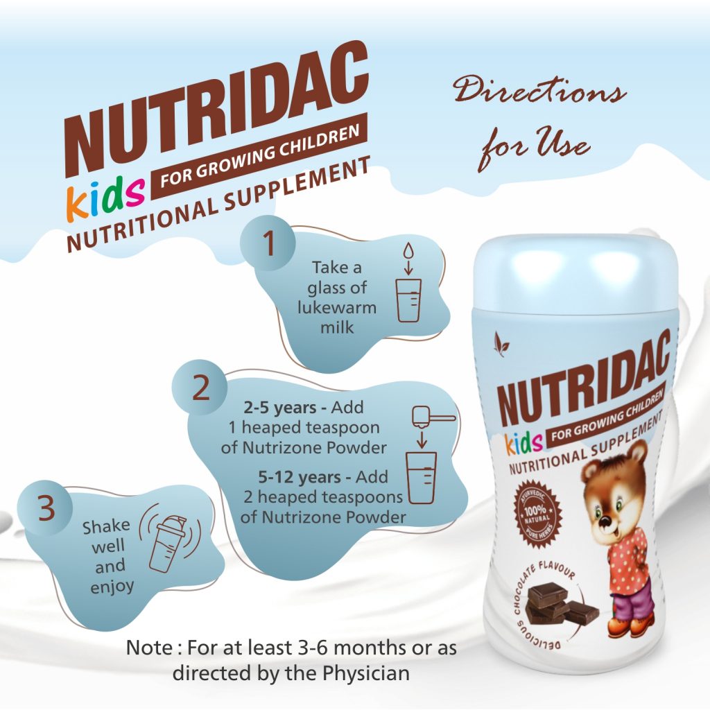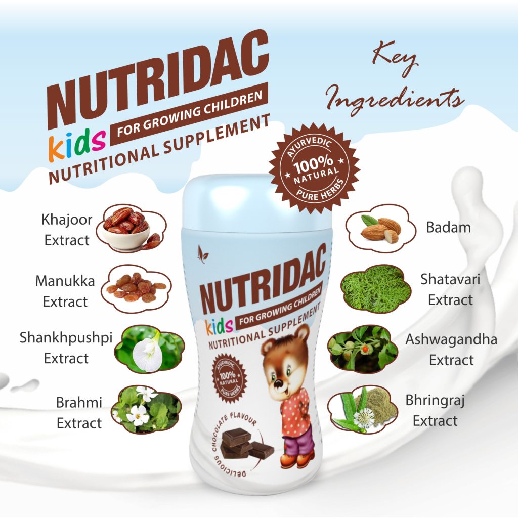 Nutridac Kids Granules Enquiry Categories: Ayurvedic, Ayurvedic Care Description Additional information Description Nutridac Kids GranulesHealth Supplement for Kids Therapeutic Segment : Health & Nutritional supplement Packing : 200 gm jar with sleev Potent Ayurvedic Nutritional Supplement for growing kids with goodness of Shankhpushpi Extract Wh. Pt. 200 mg, Khajoor Extract Fr. 200 mg, Manukka Extract Fr. 200 mg, Brahmi Extract Wh. Pt. 200 mg, Ashwagandha Extract Rt. 200 mg, Amalki Extract Fr. 200 mg DescriptionKey IngredientsBenefitsDirections for UseDescriptionAs people are getting increasingly conscious about their health and well-being, they are trying to avoid chemicals and are opting for natural and herbal alternatives instead. Herbal techniques are cheaper and have no side effects. Nutridac Kids Granules, when taken in addition to diet, helps to improve digestion, immunity, cardiovascular health etc. It is preventive in nature and helps circumvent disease rather than focusing on the curative aspect of the situation. It can be used for therapeutic purposes and improve holistic wellness thereby improving overall lifestyle. Nutridac Kids Granules works on helping your child get the right height & weight while making their immune system stronger. The potent herbs present in Nutridac Kids Granules aid brain development naturally. It helps in developing lean muscles in your child thereby increasing their muscle strength. It improves concentration, vision, metabolic rate thus helping overall & systemic development of your child. It is a complete and balanced nutritional supplement for children who are fussy eaters’ thus taking care of their nutritional deficiencies. It contains Ashwagandha which is important for growth and development and plays an important role in building muscles. Manukka is excellent for healthy digestive system & also helps to improve memory. The synergistic impact of all the vital herbs in Nutridac Kids Granules help in Improving bone health & strengthening immune system. Key Ingredients Ashwagandha Extract Brahmi Extract Shankhpushpi Extract Manukka ExtractBenefits Ideal way to overcome nutritional deficiencies Helps support overall growth and development of children Supports height and weight gain, immunity and brain development Helps in the absorption of calcium Fortified with powerful herbs that aids as an immunity and memory booste Directions for Use 2–5 years: One heaped teaspoon twice daily preferably with glass of lukewarm milk 5-12 years: Two heaped teaspoons twice daily preferably with glass of lukewarm milk Or as directed by the Physician Also Available Nutridac Granules Additional information Dosage Form Granules Therapeutic Segment Health Supplements ENQUIRY! Related Products Maxisoft Skin Nourishing Baby Wash ENQUIRY! Enquiry Salicare 12% Ointment Salicylic Acid 12% w/w Pack : 30 g Lami Tube in Mono Carton ENQUIRY! Enquiry Dulocalm 40 mg Tablets Duloxetine 40 mg Pack : 1 x 10 Tablets Alu-Alu Pack ENQUIRY! Enquiry Jucee 1.5 gm injection Ascorbic Acid 1.5 gm Pack : 6 ml Vial Insert in Tray with Mono Carton ENQUIRY! Enquiry Related products Arogya Tulsi Capsules 30 Caps ENQUIRY! Enquiry Ibzest Capsules ENQUIRY! Enquiry Arogya Tulsi Plus Capsules 30 Caps ENQUIRY! Enquiry Asthabrex Capsules ENQUIRY! Enquiry