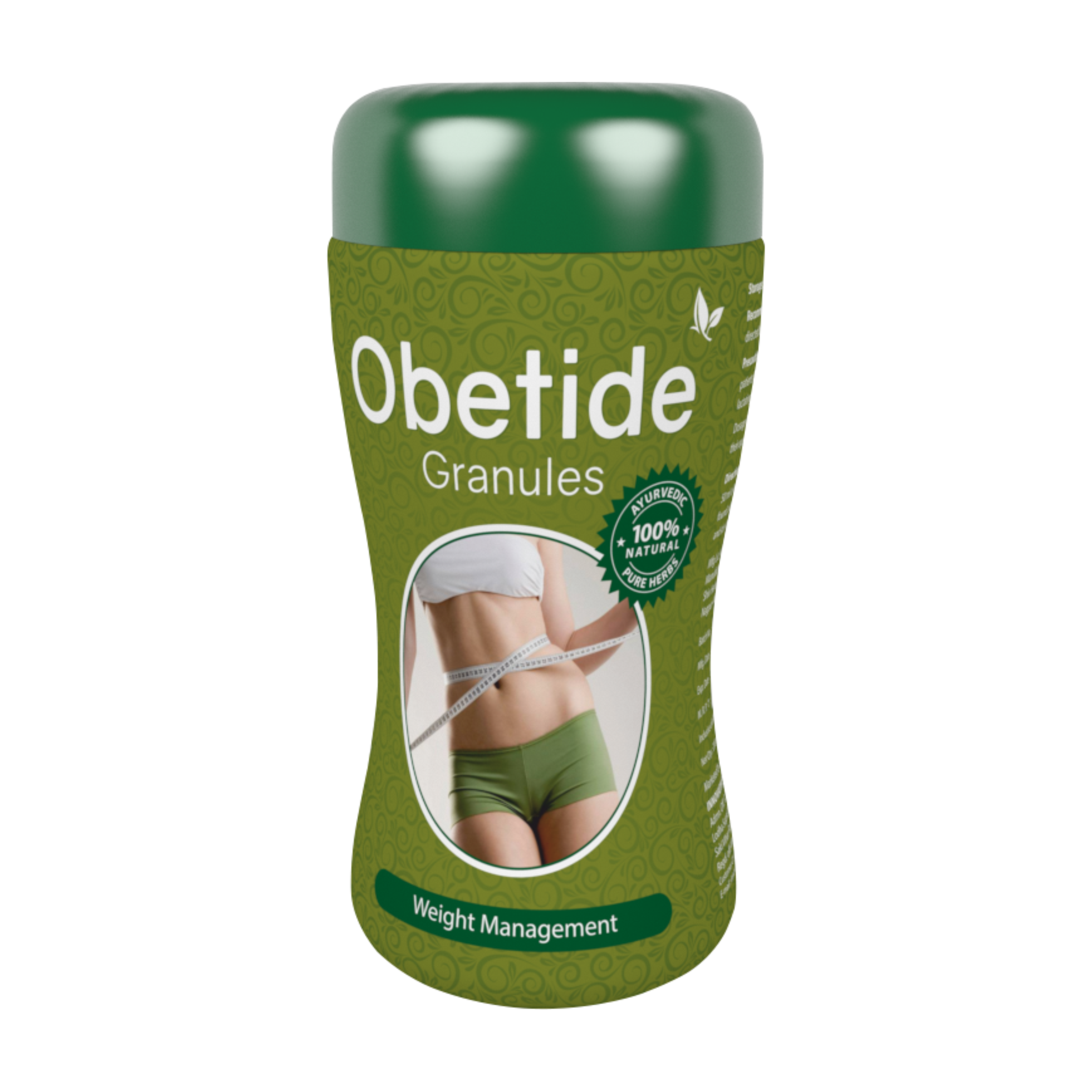 Obetide Granules Enquiry Categories: Ayurvedic, Ayurvedic Care Description Additional information Description Obetide GranulesObesity Care Therapeutic Segment : Anti-Obesity Packing : 200 gm jar with sleev Powerful Ayurvedic Formulation with goodness of Triphala 600 mg, Chitrakmool Rt. 500 mg, Kanchnar Chhal Bk. 500 mg, Punarnava Rt. 500 mg, Ajwain Fr. 300 mg, Daruharidra St. 300 mg, Lasun Powder Bulb 300 mg, Methi Sd. 300 mg, Nagarmotha Rh. 300 mg DescriptionKey IngredientsBenefitsDirections for UseDescriptionCarrying extra weight doesn’t affect just your clothing size or the number on the scale. Obesity in general affects your entire body be it your heart, joints or the blood flowing through your veins. You may be surprised to learn of the obesity-related health problems such as coronary heart disease, Type 2 Diabetes, Asthma, high cholesterol, Osteoarthritis, high Blood Pressure, sleep apnea, and certain types of Cancer. Moreover obesity brings with it an increased risk for a shorter life expectancy. For individuals whose weight exceeds twice their ideal body weight, the risk of an early death is doubled compared to non-obese individuals. Even beyond the issue of obesity-related health conditions, weight gain alone can lead to a condition known as “end-stage” obesity where, for the most part, no treatment options are available. Yet an early death is not the only potential consequence. Social, psychological and economic effects of obesity, however unfair, are real and can be especially devastating. Obetide Granules presents the easiest way to burn away extra fat deposited in the body. Containing a powerful combination of herbs, the granules include some of the most time-tested natural ingredients in obesity control. It cleanses the fat-carrying channels, and causes the vital body fluids to flow normally. Modern science has proved the potency of most of the herbs contained in this formulation. They have no side-effects. Treatment with this will cleanse your body systems to prevent a relapse of obesity. Key Ingredients Chitrakmool Ajwain Daruharidra PunarnavaBenefits Enhances the rate of metabolism to burn fat Burns the body fats especially from the abdomen without any side effects Tones and shapes the body Effectively reduces weight in a natural way Helps reduce high cholesterol and enhances thyroid functions Acts as a nutritional supplement in obesity management Directions for Use 20 gm of powder twice daily for 3-6 months, preferably with warm water or skimmed milk Stir homogenously till no lumps are found Additional information Dosage Form Granules Therapeutic Segment Anti-Obesity ENQUIRY! Related Products Flucozest Gel Fluconazole 0.5% w/w Pack : 15 g Lami Tube in Mono Carton ENQUIRY! Enquiry Glycirest-M 80 Tablets Gliclazide 80 mg & Metformin 500 mg Tablets Pack : 1 x 10 Tablets Blister Pack ENQUIRY! Enquiry Baclosure 20 mg Tablets Baclofen 20 mg Pack : 1 x 10 (Alu-Alu) ENQUIRY! Enquiry Cetrasoft Plus Lotion White Soft Paraffin, Liquid Paraffin, Aloe Vera, Stearic Acid, Light Liquid Paraffin, Cetyl Alcohol, Glycerine Pack : 100 ml Bottle in mono carton ENQUIRY! Enquiry Related products Arogya Tulsi Cough Syrup ENQUIRY! Enquiry Arogya Tulsi Plus Capsules 10 Caps ENQUIRY! Enquiry Lactopride Capsules 10 Cap ENQUIRY! Enquiry Arogya Tulsi Plus Capsules 30 Caps ENQUIRY! Enquiry