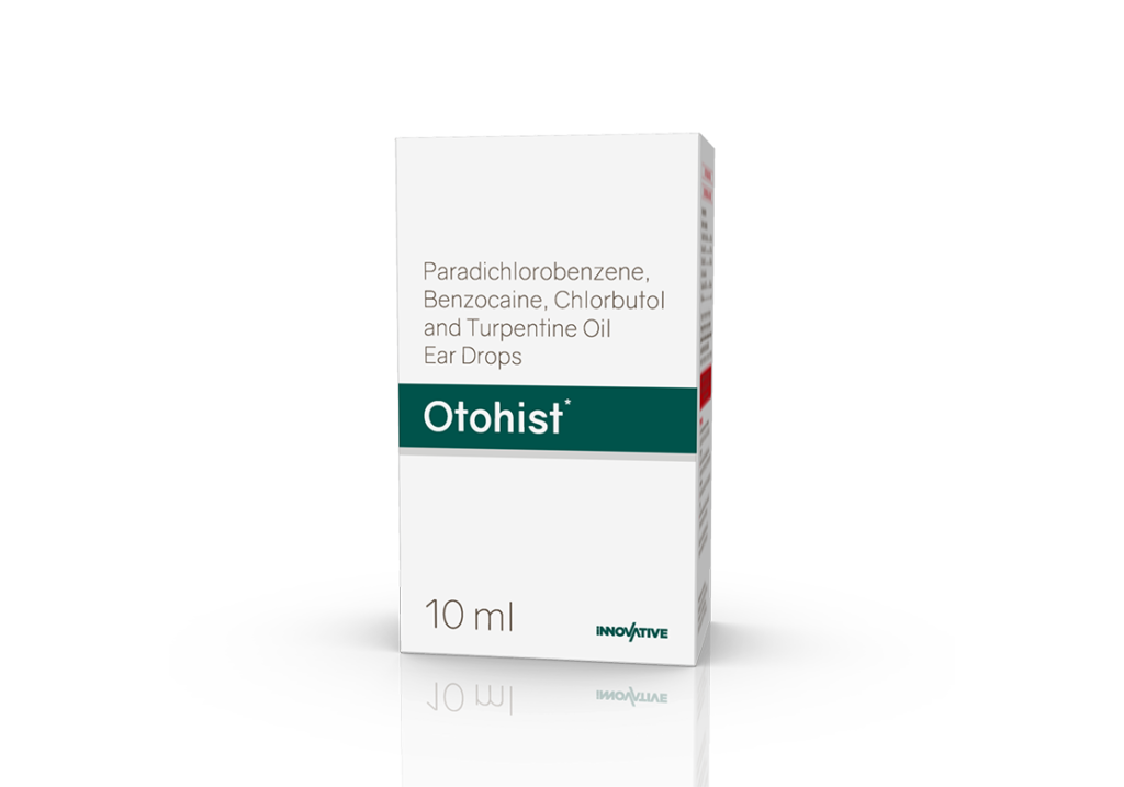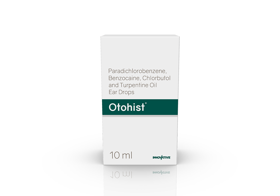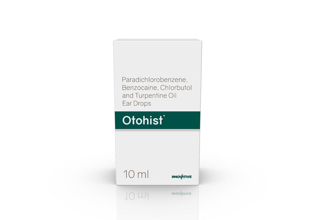 Otohist Ear Drops Paradichlorobenzene 2%, Benzocaine 2.7%, Chlorbutol 5%, Turpentine Oil 15% & B.H.A. 0.05% w/v Pack : 10 ml HDPE Bottle in Tray with Flap Cover in Mono Carton Enquiry Categories: ENT Care, Pharma, Specialities Tag: Pharma Description Additional information Description Otohist Ear Drops Composition : Paradichlorobenzene 2%, Benzocaine 2.7%, Chlorbutol 5%, Turpentine Oil 15% & B.H.A. 0.05% w/v Therapeutic Segment: Ear Wax Removal Packing: 10 ml HDPE Bottle in Tray with Flap Cover in Mono Carton Indications : Cerumen Impaction Dosage: Instill 5-10 drops, allow to remain for about 15-30 minutes or as directed by the Physician Product Enquiry Product Information Product DescriptionOtohist Ear Drop is a prescription medicine used to treat infections of the ear. Treating the infection reduces pain and swelling in the ear. It also softens the wax and helps remove hard wax from the ear. BenefitsEar wax Direction For Use Take this medicine in the dosage and duration recommended by your doctor. Before use, please check the label for directions. Swallow it as a whole with a glass of water. Do not crush, chew or break it. Mechanism of ActionBelongs to the group of medicines called Otic agents, Local anaesthetics, Wax softeners and Lubricating agent. It is indicated in the patients who have impacted wax and keratosis (build-up of keratin in the ear canal). Also Available Additional information Dosage Form Ear Drops Therapeutic Segment Ear Wax Removal ENQUIRY! Related Products Nebimet 5 mg Tablets Nebivolol 5 mg Pack : 1 x 10 Tablets Alu-Alu Pack ENQUIRY! Enquiry Fenolet 160 mg Tablets Fenofibrate 160 mg Pack : 1 x 10 Tablets Alu-Alu Pack ENQUIRY! Enquiry Silotag 8 mg Capsules Silodosin 8 mg Pack : 1 x 10 Capsules Alu-Alu Pack ENQUIRY! Enquiry Acilet 1000 mg Tablets Sodium Bicarbonate 1000 mg Pack : 1 x 10 Blister Pack ENQUIRY! Enquiry Related products Aclopride-PT8 Tablets Aceclofenac 100 mg, Paracetamol 325 mg & Thiocolchicoside 8 mg Pack : 1 x 10 Tablets Alu-Alu Pack ENQUIRY! Enquiry Calcipime 500 mg Tablets Calcium Supplement with Vitamin D3 & Multiminerals Pack : 1 X 15 Tablets Blister Pack ENQUIRY! Enquiry Altum Plus Suspension Albendazole 200 mg & Ivermectin 1.5 mg / 5 ml Pack : 10 ml Bottle in Mono Carton ENQUIRY! Enquiry Aclopride-PT Tablets Aceclofenac 100 mg, Paracetamol 325 mg & Thiocolchicoside 4 mg Pack : 1 x 10 Tablets Alu-Alu Pack ENQUIRY! Enquiry