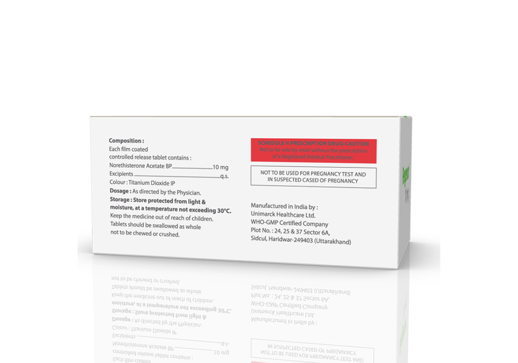 Regenor 10 mg Tablets Regenor 10 mg Tablets Pack: 1 x 10 (Blister) Pack Enquiry Categories: Gynaec Care, Pharma, Specialities Tag: Pharma Description Additional information Description Regenor 10 mg Tablets Composition : Norethisterone 10 mg Therapeutic Segment : Hormones Packing : 1 x 10 Tablets (Blister Pack) Indications : Primary & Secondary Dysmenorrhoea Dysfunctional Uterine Bleeding Premenstrual Syndrome Dosage : As directed by Physician Product Enquiry Product Information Product DescriptionNorethisterone is used in heavy menstrual bleeding, pain during menstruation, endometriosis and Premenstrual syndrome (PMS). Benefits Uterine Hypoplasia Endometritis Direction For Use Take this medicine in the dose and duration as advised by your doctor. Swallow it as a whole. Do not chew, crush or break it. Mechanism of ActionNorethisterone is a synthetic progestin. It works by mimicking the effects of natural progesterone (female hormone). It helps in regulating the growth and shedding of the womb lining, thereby treating menstrual irregularities. Also Available Additional information Dosage Form Tablets Therapeutic Segment Hormones ENQUIRY! Related Products Regenor 5 mg Tablets Norethisterone 5 mg Pack: 1 x 10 Alu-Alu Pack ENQUIRY! Enquiry Geoprate 10 mg Tablets Medroxyprogesterone 10 mg Pack : 1 x 10 Tablets Alu-Alu Pack ENQUIRY! Enquiry Dydrogen 10 mg Tablets Dydrogesterone 10 mg Pack : 1 x 10 Tablets Blister Pack in Mono Carton ENQUIRY! Enquiry Isogest-SR 400 mg Tablets Natural Micronized Progesterone SR 400 mg Pack : 1 x 10 Tablets (Blister Pack) ENQUIRY! Enquiry Related products Alfumac-D Tablets Alfuzosin 10 mg & Dutasteride 0.5 mg Pack : 1 x 10 Alu-Alu Pack ENQUIRY! Enquiry Altum Plus Suspension Albendazole 200 mg & Ivermectin 1.5 mg / 5 ml Pack : 10 ml Bottle in Mono Carton ENQUIRY! Enquiry Aclopride 100 mg DT Aceclofenac 100 mg DT Pack : 1 x 10 Tablets Alu-Alu Pack ENQUIRY! Enquiry Calcipime 500 mg Tablets Calcium Supplement with Vitamin D3 & Multiminerals Pack : 1 X 15 Tablets Blister Pack ENQUIRY! Enquiry