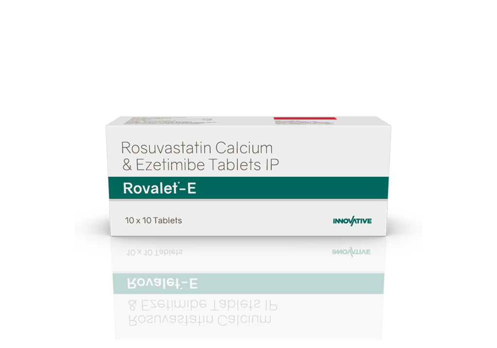 Rovalet-E Tablets Rosuvastatin 10 mg & Ezetimibe 10 mg Pack : 1 x 10 Tablets Alu-Alu Pack Enquiry Categories: Pharma, Physician, Specialities Tag: Pharma Description Additional information Description Rovalet-E Tablets Composition : Rosuvastatin 10 mg & Ezetimibe 10 mg Therapeutic Segment : Dyslipidaemic Agents Packing : 1 x 10 Tablets (Alu-Alu Pack) Indications : Hypercholesterolemia Dosage : As directed by Physician Product Enquiry Product Information Product DescriptionRovalet-E Capsules is a combination of two medicines used to prevent heart attack, angina, and stroke. This medicine reduces the “bad” cholesterol (LDL) and triglycerides (fats) levels. Moreover, it also decreases the formation of harmful blood clots. Benefits Prevention of Heart attack Prevention of Angina (heart-related chest pain) Prevention of Stroke Direction For Use Take this medicine in the dose and duration as advised by your doctor. Swallow it as a whole. Mechanism of ActionRosuvastatin is a lipid-lowering medication that blocks an enzyme required in the body to make cholesterol. It lowers the “bad” cholesterol (LDL), triglycerides and raises the “good” cholesterol (HDL Ezetimibe complements this by blocking the absorption of cholesterol in the intestines. Also AvailableRovalet 10 mg Tabletss | Rovalet 40 mg Tablets | Rovalet 5 mg Tablets | Rovalet-A 10 | 150 Capsules | Rovalet-A 10 | 75 Capsules | Rovalet-A 20 | 150 Capsules | Rovalet-A 20 | 75 Capsules | Rovalet-AC 10 | 150 Capsules | Rovalet-AC 10 | 75 Capsules | Rovalet-AC 20 | 150 Capsules | Rovalet-AC 20 | 75 Capsules | Rovalet-C Capsules | Rovalet-F Tablets Additional information Dosage Form Tablets Therapeutic Segment Dyslipidaemic Agents ENQUIRY! Related Products Prolet 20 mg Tablets Propranolol Hydrochloride 20 mg Pack : 1 x 10 Tablet Blister Pack ENQUIRY! Enquiry Benlite 2.5% Gel Benzoyl Peroxide 2.5% w/w Benzoyl Peroxide 5% w/w Pack : 20 g Lami Tube in Mono Carton ENQUIRY! Enquiry Cyclobrex Plus Tablets Dicyclomine Hydrochloride 10 mg, Chlordiazepoxide 5 mg & Clidinium Bromide 2.5 mg Pack : 1 x 10 Tablets Blister Pack ENQUIRY! Enquiry Maxisoft Body Pimple Bathing Bar ENQUIRY! Enquiry Related products Ambroloc 30 mg Tablets Ambroxol 30 mg Pack : 1 x 10 Blister Pack ENQUIRY! Enquiry Calcipime 500 mg Tablets Calcium Supplement with Vitamin D3 & Multiminerals Pack : 1 X 15 Tablets Blister Pack ENQUIRY! Enquiry Algra Plus Tablets Sildenafil Citrate 50 mg & Dapoxetine 30 mg Pack : 1 x 4 Blister Pack in Mono Carton ENQUIRY! Enquiry Aclopride-TH Tablets Aceclofenac 100 mg & Thiocolchicoside 4 mg Pack : 1 x 10 Alu-Alu Pack ENQUIRY! Enquiry