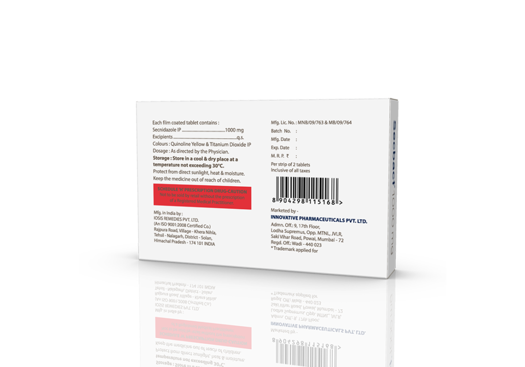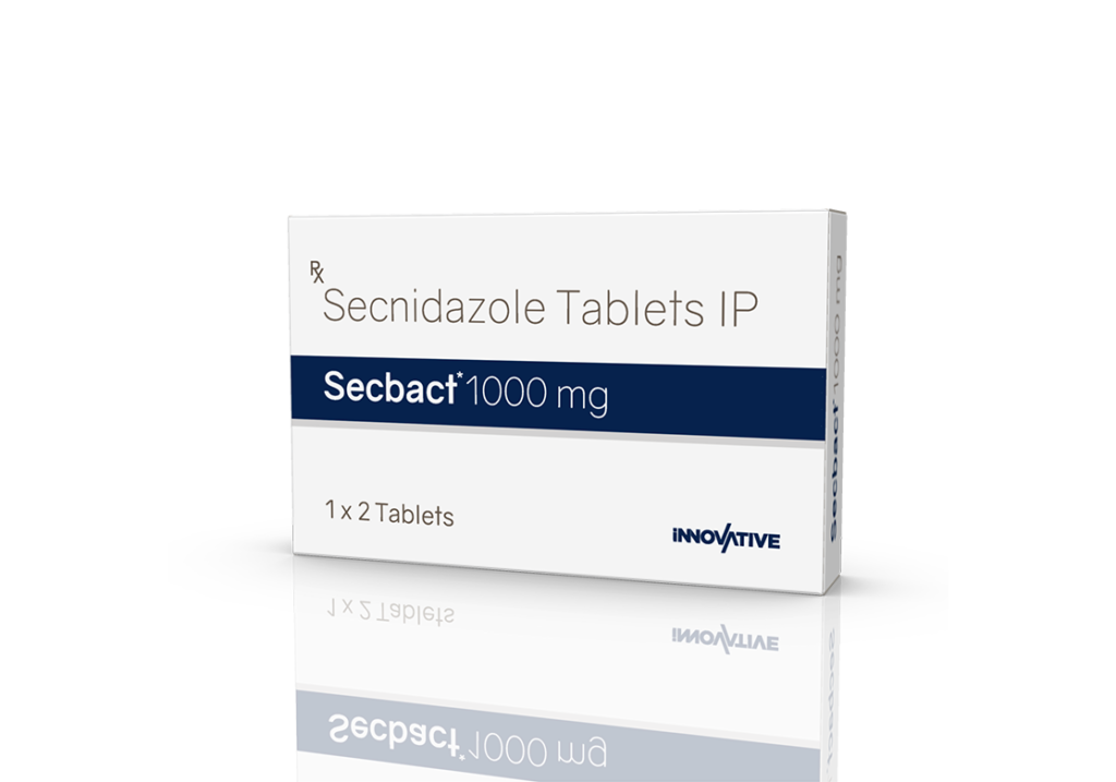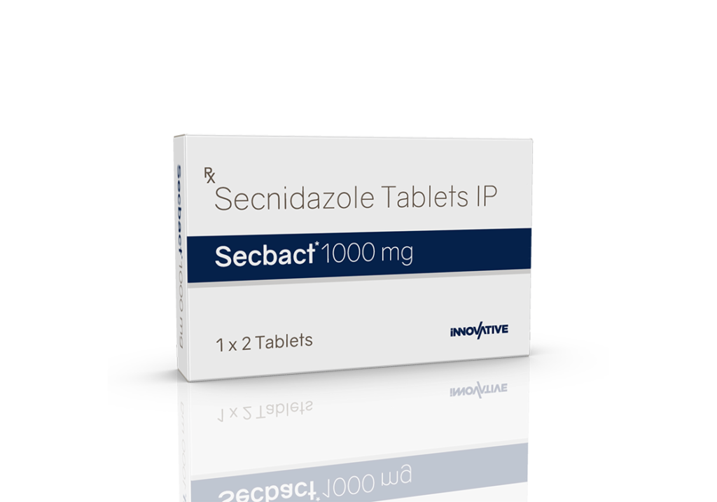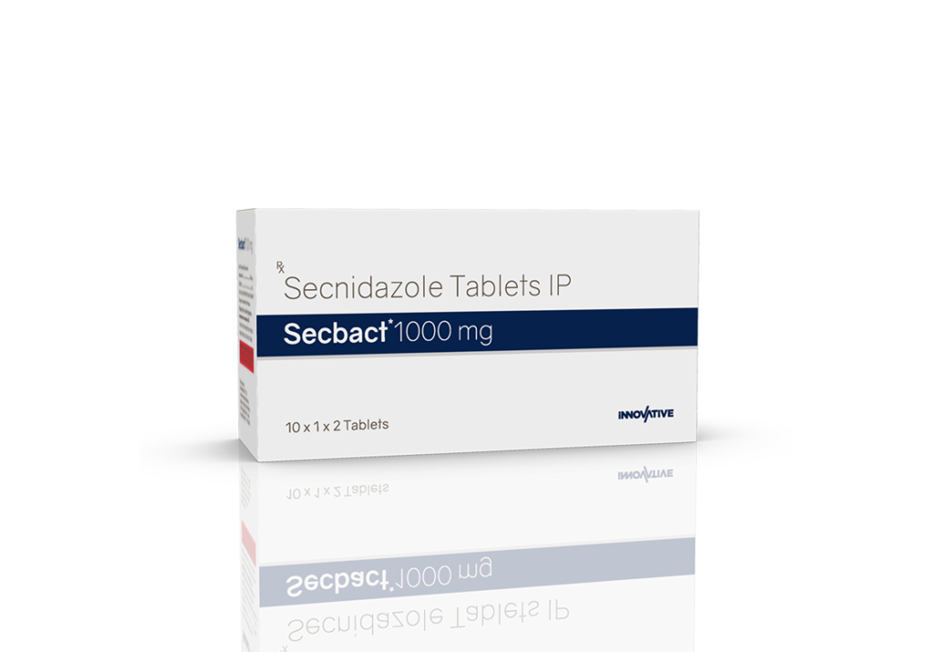 Secbact 1 gm Tablets Secnidazole 1 gm Pack : 1 x 2 Tablets Blister Pack Enquiry Categories: Gastro Care, General Practitioner, Gynaec Care, Pharma, Physician, Specialities, Surgical Care Tag: Pharma Description Additional information Description Secbact 1 gm Tablets Composition : Secnidazole 1 gm Therapeutic Segment : Antibiotic | Anti-Infective Packing : 1 x 2 Tablets (Blister Pack) Indications : Severe Invasive Amoebiasis Trichomoniasis Amoebiasis Dosage : 1 tablet as a single dose or as directed by Physician Product Enquiry Product Information Product DescriptionSecbact 1 gm Tablets is an antibiotic medicine that helps your body fight infections caused by bacteria and parasites. It is used to treat infections of the liver, stomach, intestines, vagina, brain, heart, lungs, and skin. Benefits Giardiasis Bacterial & parasitic infections Direction For Use Take this medicine in the dose and duration as advised by your doctor. . Swallow it as a whole. Do not chew, crush or break it. Mechanism of ActionSecbact 1 gm Tablets is an antibiotic. It kills the bacteria and other microorganisms that cause infections by damaging their DNA. Additional information Dosage Form Tablets Therapeutic Segment Anti-Infective, Antibiotic ENQUIRY! Related Products Megathral 200 mg Suspension 30 ml Azithromycin 200 mg / 5 ml Pack : 30 ml Bottle with Measuring Cap in Mono Carton ENQUIRY! Enquiry Omnazide-TZ 1.125 gm Injection Ceftazidime 1 gm & Tazobactam 125 mg Pack : 20 ml Vial with 10 ml WFI & Insert in Mono Carton ENQUIRY! Enquiry Clinbid 300 mg Capsules Clindamycin 300 mg Pack : 1 x 10 Capsules Blister Pack in Mono Carton ENQUIRY! Enquiry Fiximax-CV 100 mg Dry Syrup Cefixime 100 mg & Clavulanate Potassium 62.50 mg / 5 ml Pack : 30 ml HDPE Bottle (13 g) with 30 ml WFI in Mono Carton ENQUIRY! Enquiry Related products Aclopride-D Tablets Aceclofenac 100 mg & Drotaverine 80 mg Pack : 1 x 10 Tablets Blister Pack ENQUIRY! Enquiry Aclopride-TH Tablets Aceclofenac 100 mg & Thiocolchicoside 4 mg Pack : 1 x 10 Alu-Alu Pack ENQUIRY! Enquiry Altum Plus Tablet Albendazole 400 mg & Ivermectin 6 mg Tablet Pack : 1 x 10 Blister Pack in Mono Carton ENQUIRY! Enquiry Aclopride-SP Tablets Aceclofenac 100 mg, Paracetamol 325 mg & Serratiopeptidase 15 mg Pack : 1 x 10 Blister Pack ENQUIRY! Enquiry