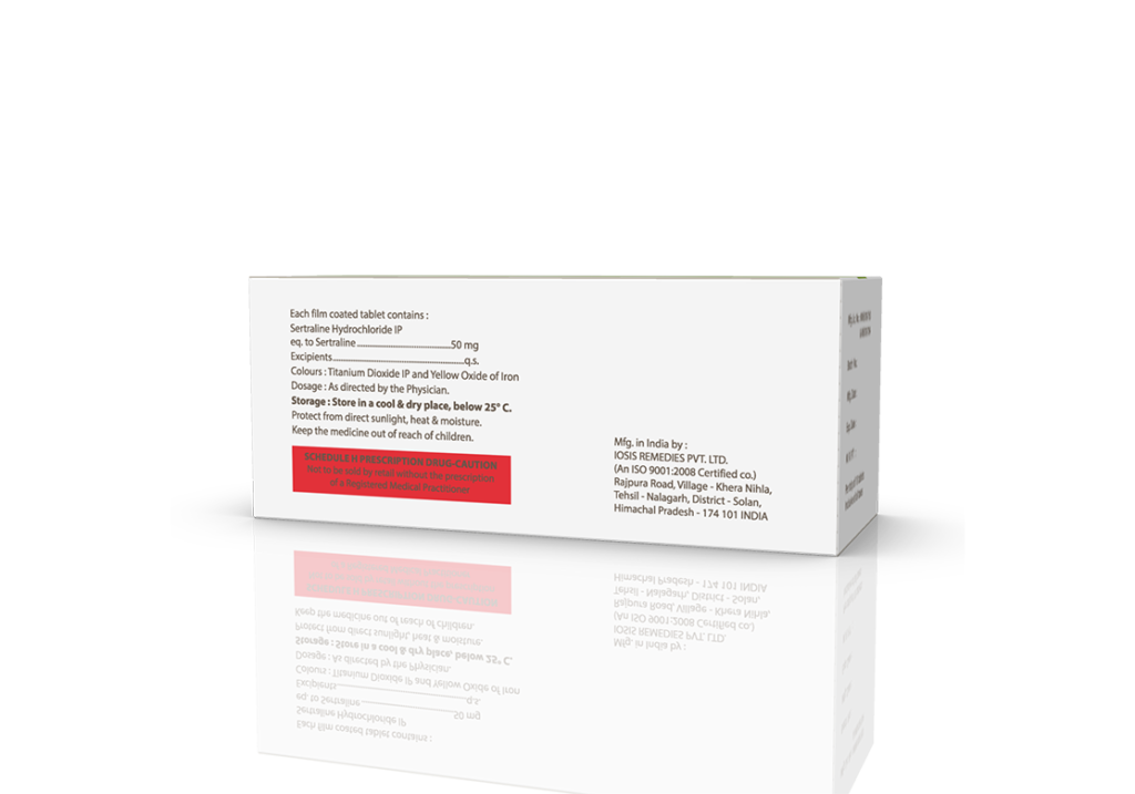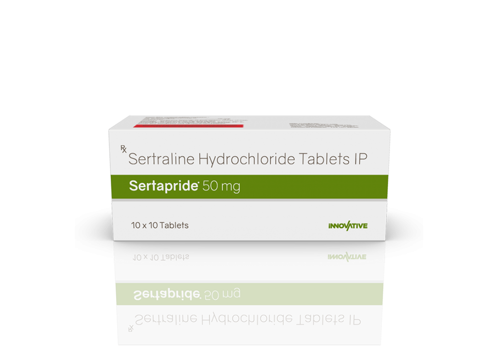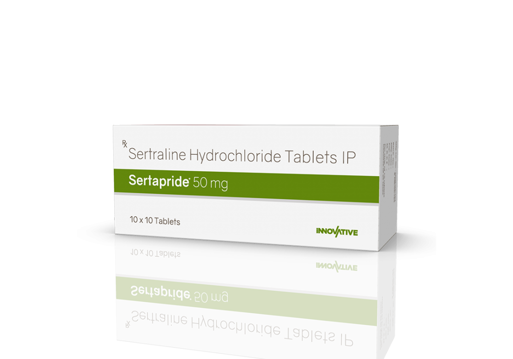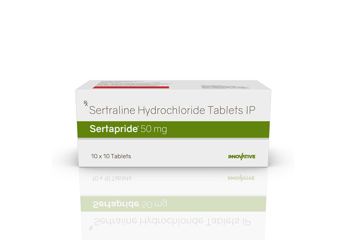Sertapride 50 mg Tablets Sertraline 50 mg Pack : 1 x 10 Tablets Blister Pack Enquiry Categories: Neuro Care, Pharma, Physician, Psychiatric Care, Specialities Tag: Pharma Description Additional information Description Sertapride 50 mg Tablets Composition : Sertraline 50 mg Therapeutic Segment : Antidepressants Packing : 1 x 10 Tablets (Blister Pack) Indications : Panic Disorder Anxiety and Disorder Obsesssive Compulsive Disorder (OCD) Dosage : As directed by Physician Product Enquiry Product Information Product DescriptionBelongs to the selective serotonin reuptake inhibitor (SSRI) group of medicines. It is prescribed for depression, and anxiety-related conditions like obsessive-compulsive disorder, and panic disorder. Benefits In Treatment of Panic disorder In Treatment of Anxiety disorder In Treatment of Obsessive-compulsive disorder In Treatment of Phobia In Treatment of Post-traumatic stress disorder In Treatment of Premenstrual dysphoric disorder Treatment of Premenstrual syndrome (PMS) Direction For Use Take this medicine in the dose and duration as advised by your doctor. Swallow it as a whole. Do not chew, crush or break it. Mechanism of ActionA selective serotonin reuptake inhibitor (SSRI) antidepressant. It works by increasing the levels of serotonin, a chemical messenger in the brain. This improves mood and physical symptoms of depression and also relieves symptoms of obsessive-compulsive disorder, panic disorder, premenstrual dysphoric disorder, and anxiety. Additional information Dosage Form Tablets Therapeutic Segment Antidepressant ENQUIRY! Related Products Amicalm Tablets Amitriptyline 12.5 mg & Chlordiazepoxide 5 mg Pack : 1 x 10 Blister Pack ENQUIRY! Enquiry Dothewin 25 mg Tablets Dothiepin 25 mg Tablets Pack : 1 x 10 Tablets Alu-Alu Pack ENQUIRY! Enquiry Fluxib 20 mg Capsules Fluoxetine 20 mg Pack : 1 x 10 Capsules Blister Pack ENQUIRY! Enquiry Clovac 50 mg Tablets Clozapine 50 mg Pack : 1 x 10 Tablets Blister Pack ENQUIRY! Enquiry Related products Altum Tablet Albendazole 400 mg Pack : 1 Tab Blister Pack ENQUIRY! Enquiry Aclopride-SP Tablets Aceclofenac 100 mg, Paracetamol 325 mg & Serratiopeptidase 15 mg Pack : 1 x 10 Blister Pack ENQUIRY! Enquiry Aclopride Gel Aceclofenac, Linseed Oil, Methyl Salicylate, Menthol & Capsaicin Pack : 30 g Lami Tube In Mono Carton ENQUIRY! Enquiry Aclopride-D Tablets Aceclofenac 100 mg & Drotaverine 80 mg Pack : 1 x 10 Tablets Blister Pack ENQUIRY! Enquiry