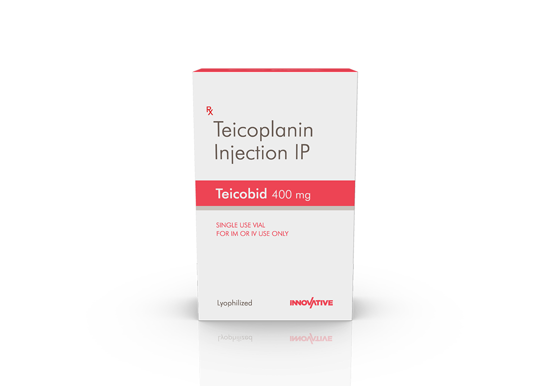 Teicobid 400 mg Injection Teicoplanin 400 mg Pack : 10 ml Tubular Vial & Insert in Tray with Cover in Mono Carton Enquiry Categories: Gastro Care, Gynaec Care, Injectable Care, Nephrologist, Orthopaedic Care, Pharma, Physician, Specialities, Surgical Care, Urology Care Tag: Pharma Description Additional information Description Teicobid 400 mg Injection Composition: Teicoplanin 400 mg Therapeutic Segment: Antibiotic | Anti-Infective Packing: 10 ml tubular vial & insert in tray with cover in mono carton Indications: Severe G+ve Infections | Endocarditis | Septicaemia Peritonitis | Respiratory Tract Infections Skin & Soft Tissue Infections | Urinary Tract Infections Dosage: Adult: Initially, 6 mg/kg on first day, followed by 3 mg/kg/day Severe infection: 6 mg/kg every 12 hr for the 1st 3 doses followed by 6 mg/kg/day Doses may be given via IM inj, IV bolus or IV infusion over 30 minutes Child: Loading dose : 10 mg/kg every 12 hr for 3 doses followed by 6-10 mg/kg/day depending on severity of the infection Neonates: Loading dose: 16 mg/kg on the 1st day, followed by maintenance doses of 8 mg/kg/day by IV infusion or as directed by Physician Product Enquiry Product Information Product DescriptionTeicobid 400 mg Injectionis an antibiotic used in the treatment of severe bacterial infections in hospitalized patients. It is effective against infections of the respiratory tract (eg. pneumonia), urinary tract, skin and soft tissues, bones and joints, heart, blood, and others. BenefitsBacterial infections Direction For Use Doctor or nurse will give you this medicine. Kindly do not self-administer. Mechanism of ActionTeicobid 400 mg Injectionis an antibiotic. It kills bacteria by preventing them from forming the bacterial protective covering (cell wall) which is needed for them to survive. Additional information Dosage Form Injectable Therapeutic Segment Anti-Infective, Antibiotic ENQUIRY! Related Products Flulet 500 mg Injection Flucloxacillin 500 mg Pack : 20 ml Tubular Vial with 10 ml WFI & Insert in Tray with Mono Carton ENQUIRY! Enquiry Uniclave 1000 mg Tablets Amoxycillin 875 mg & Potassium Clavulanate 125 mg Pack : 1 x 6 Tablets Alu-Alu Pack in Mono Carton ENQUIRY! Enquiry Cephazone 500 mg Capsules Cephalexin 500 mg Pack : 1 x 10 Capsules Blister Pack ENQUIRY! Enquiry Bencef 250 mg Injection Cefuroxime Sodium 250 mg Pack : 7.5 ml Vial with 5 ml WFI & Insert in Mono Carton ENQUIRY! Enquiry Related products Ambroloc 30 mg Tablets Ambroxol 30 mg Pack : 1 x 10 Blister Pack ENQUIRY! Enquiry Algra Plus Tablets Sildenafil Citrate 50 mg & Dapoxetine 30 mg Pack : 1 x 4 Blister Pack in Mono Carton ENQUIRY! Enquiry Altum Plus Suspension Albendazole 200 mg & Ivermectin 1.5 mg / 5 ml Pack : 10 ml Bottle in Mono Carton ENQUIRY! Enquiry Calcipime 500 mg Tablets Calcium Supplement with Vitamin D3 & Multiminerals Pack : 1 X 15 Tablets Blister Pack ENQUIRY! Enquiry