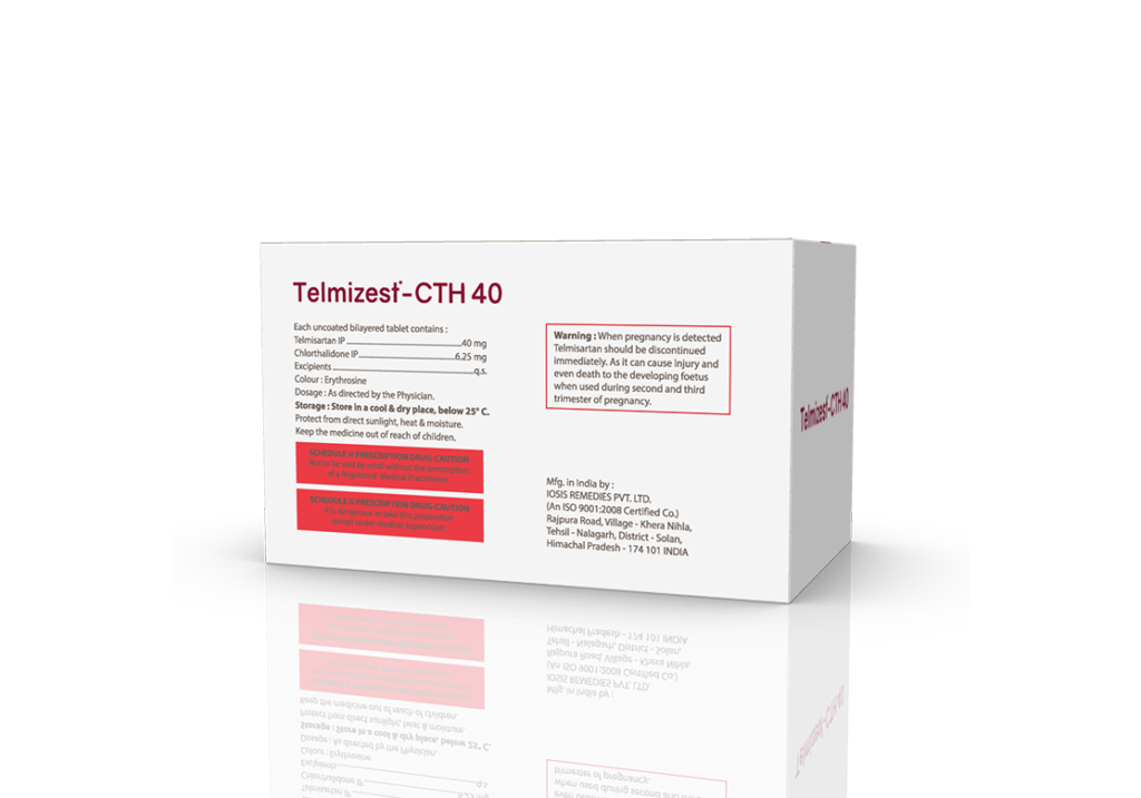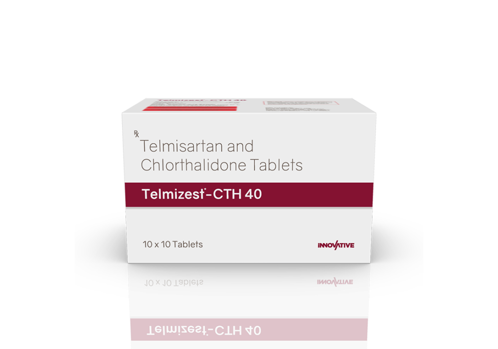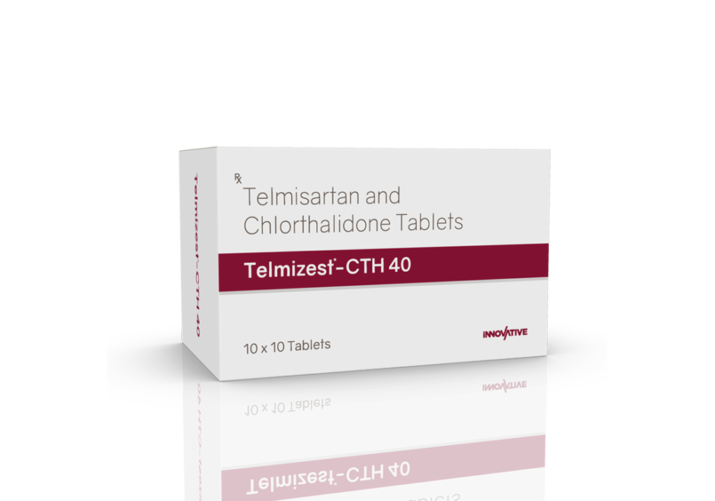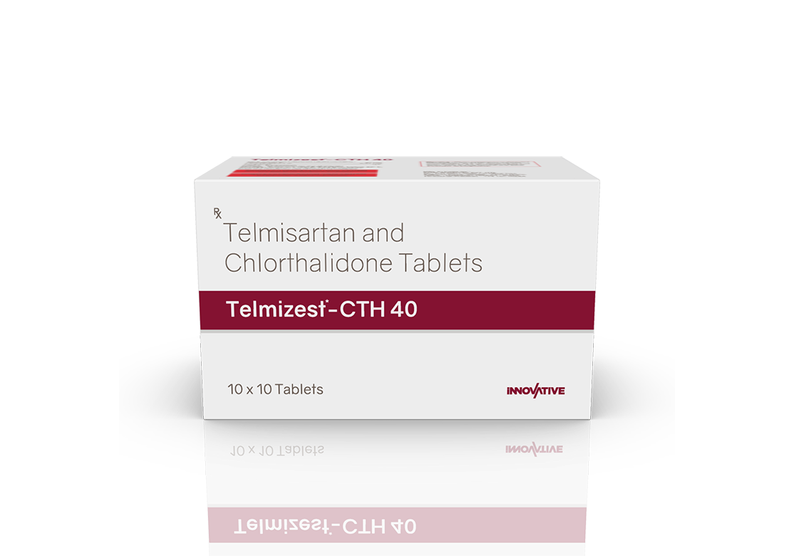 Telmizest-CTH 40 Tablets Telmisartan 40 mg & Chlorthalidone 6.25 mg Pack : 1 x 10 Tablets Alu-Alu Pack Enquiry Categories: Cardio Diabetic Care, Pharma, Physician, Specialities Tag: Pharma Description Additional information Description Telmizest-CTH 40 Tablets Composition : Telmisartan 40 mg & Chlorthalidone 6.25 mg Therapeutic Segment : Antihypertensive Packing : 1 x 10 Tablets (Alu-Alu Pack) Indications : Hypertension | Congestive Heart Failure Heart Attack | Diabetic Kidney Disease Dosage : 1 Tablet once daily or as directed by Physician Product Enquiry Product Information Product DescriptionTelmisartan+Chlorthalidone is a combination of two medicines that helps keep the blood pressure under control. The medicine works by reducing the risk of strokes and myocardial infarction (heart attack), thereby treating hypertension (high blood pressure) Benefits Effectively lowers blood pressure Reduces the risk of heart attack, stroke, and kidney damage Combines the effects of an ARB and a diuretic for enhanced blood pressure control Helps reduce fluid retention and swelling Direction For Use Take this medicine in the dose and duration as advised by your doctor. Swallow it as a whole. Do not chew, crush or break it. Mechanism of ActionTelmisartan blocks a hormone that causes blood vessels to tighten, helping relax the blood vessels and lowering blood pressure. Chlorthalidone is a diuretic that helps the body get rid of extra salt and water by increasing urine production, which lowers blood pressure and reduces fluid buildup. Also AvailableTelmizest 20 mg Tablets | Telmizest 40 mg Tablets | Telmizest 80 mg Tablets | Telmizest-A 40 I 5 Tablets | Telmizest-A 80 Tablets | Telmizest-AH 40 Tablets | Telmizest-CC Tablets | Telmizest-CL 40 Tablets | Telmizest-CT 40 Tablets | Telmizest-H 40 Tablets | Telmizest-H 80 Tablets | Telmizest-M 25 mg Tablets | Telmizest-M 50 mg Tablets | Telmizest-NB 40 Tablets Additional information Dosage Form Tablets Therapeutic Segment Antihypertensive ENQUIRY! Related Products Irbezest Tablets Irbesartan 150 mg Tablets Pack : 1 x 10 Tablets Alu-Alu Pack ENQUIRY! Enquiry Atedac-H 50 | 12.5 Tablets Atenolol 50 mg & Hydrochlorothiazide 12.5 mg Pack : 1 x 10 Tablets Alu-Alu Pack ENQUIRY! Enquiry Olmeprax-H 40 Tablets Olmesartan 40 mg & Hydrochlorothiazide 12.5 mg Pack : 1 x 10 Tablets Alu-Alu Pack ENQUIRY! Enquiry Cilnimet 10 mg Tablets Cilnidipine 10 mg Pack : 1 x 10 Tablets Alu-Alu Pack ENQUIRY! Enquiry Related products Alfumac-ER 10 mg Tablets Alfuzosin 10 mg Extended Release Tablets Pack : 1 x 10 Alu-Alu Pack ENQUIRY! Enquiry Aclopride-D Tablets Aceclofenac 100 mg & Drotaverine 80 mg Pack : 1 x 10 Tablets Blister Pack ENQUIRY! Enquiry Alfumac-D Tablets Alfuzosin 10 mg & Dutasteride 0.5 mg Pack : 1 x 10 Alu-Alu Pack ENQUIRY! Enquiry Altum Suspension Albendazole 200 mg / 5 ml Pack : 10 ml Bottle in Mono Carton ENQUIRY! Enquiry