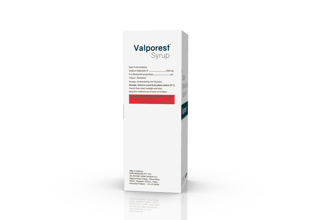 Valporest Syrup 200 ml Sodium Valproate 200 mg / 5 ml Pack : 200 ml Bottle with Measuring Cap in Mono Carton Enquiry Categories: Neuro Care, Paediatric Care, Pharma, Physician, Psychiatric Care, Specialities Tag: Pharma Description Additional information Description Valporest Syrup 200 ml Composition : Sodium Valproate 200 mg / 5 ml Therapeutic Segment : Anti-Epileptic Packing : 200 ml Bottle with Measuring Cap in Mono Carton Indications : Myoclonic seizures Partial seizures Migraine headachee Dosage : 10 to 60 mg/kg/day in divided doses or as directed by Physician Product Enquiry Product Information Product DescriptionValporest Syrup is an anticonvulsant medication which is used for the treatment of all types of epilepsies, a brain disorder characterized by uncontrolled jerking movements and loss of consciousness. Take this medicine at the same time regularly Benefits Epilepsy Bipolar disorder Tonic – clonic seizures Direction For Use Take this medicine in the dose and duration as advised by your doctor. Check the label for directions before use. Measure it with a measuring cup and take it by mouth. Shake well before use. Mechanism of ActionValporest Syrup is an antiepileptic medication. It controls seizures or fits by decreasing the abnormal and excessive activity of the nerve cells in the brain. Also AvailableValporest Injection | Valporest Syrup 100 ml | Valporest-CR 200 Tablets | Valporest-CR 300 Tablets | Valporest-CR 500 Tablets | Valporest-CR 750 Tablets Additional information Dosage Form Syrup Therapeutic Segment Anti-Epileptic ENQUIRY! Related Products Carbamet 600 mg Tablets Oxcarbazepine 600 mg Pack : 1 x 10 Blister Pack ENQUIRY! Enquiry Valporest-CR 200 Tablets Sodium Valproate 200 mg Controlled Release Tablets Pack : 1 x 10 Tablets Alu-Alu Pack ENQUIRY! Enquiry Divadac-SR 750 mg Tablets Divalproex Sodium 750 mg Sustained Release Tablets Pack : 1 x 10 Tablets Alu-Alu Pack ENQUIRY! Enquiry Valporest-CR 500 Tablets Sodium Valproate 500 mg Controlled Release Tablets Pack : 1 x 10 Tablets Alu-Alu Pack ENQUIRY! Enquiry Related products Algra Plus Tablets Sildenafil Citrate 50 mg & Dapoxetine 30 mg Pack : 1 x 4 Blister Pack in Mono Carton ENQUIRY! Enquiry Ambroloc 30 mg Tablets Ambroxol 30 mg Pack : 1 x 10 Blister Pack ENQUIRY! Enquiry Aclopride-TA Tablets Aceclofenac 100 mg, Tramadol 37.5 mg & Paracetamol 325 mg Pack : 1 x 10 Tablets Blister Pack ENQUIRY! Enquiry Alfumac-ER 10 mg Tablets Alfuzosin 10 mg Extended Release Tablets Pack : 1 x 10 Alu-Alu Pack ENQUIRY! Enquiry